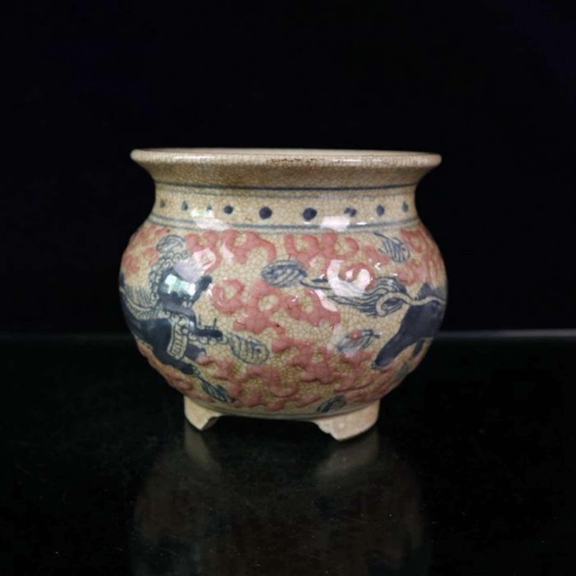 Ceramic blue and white glazed red lion pattern incense burner
