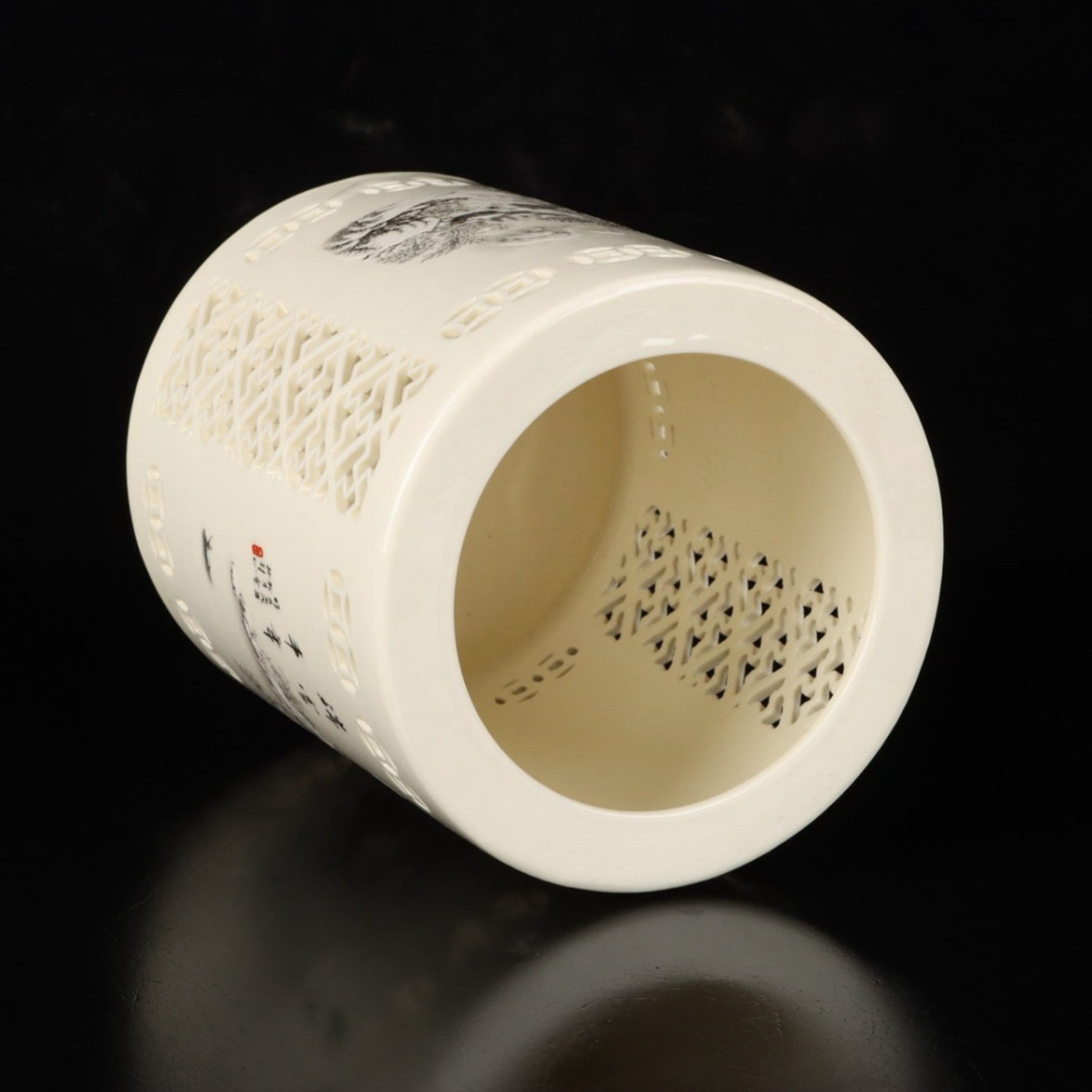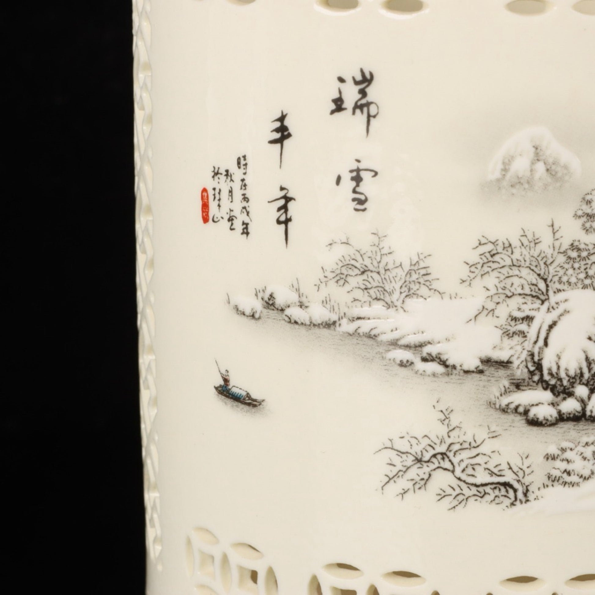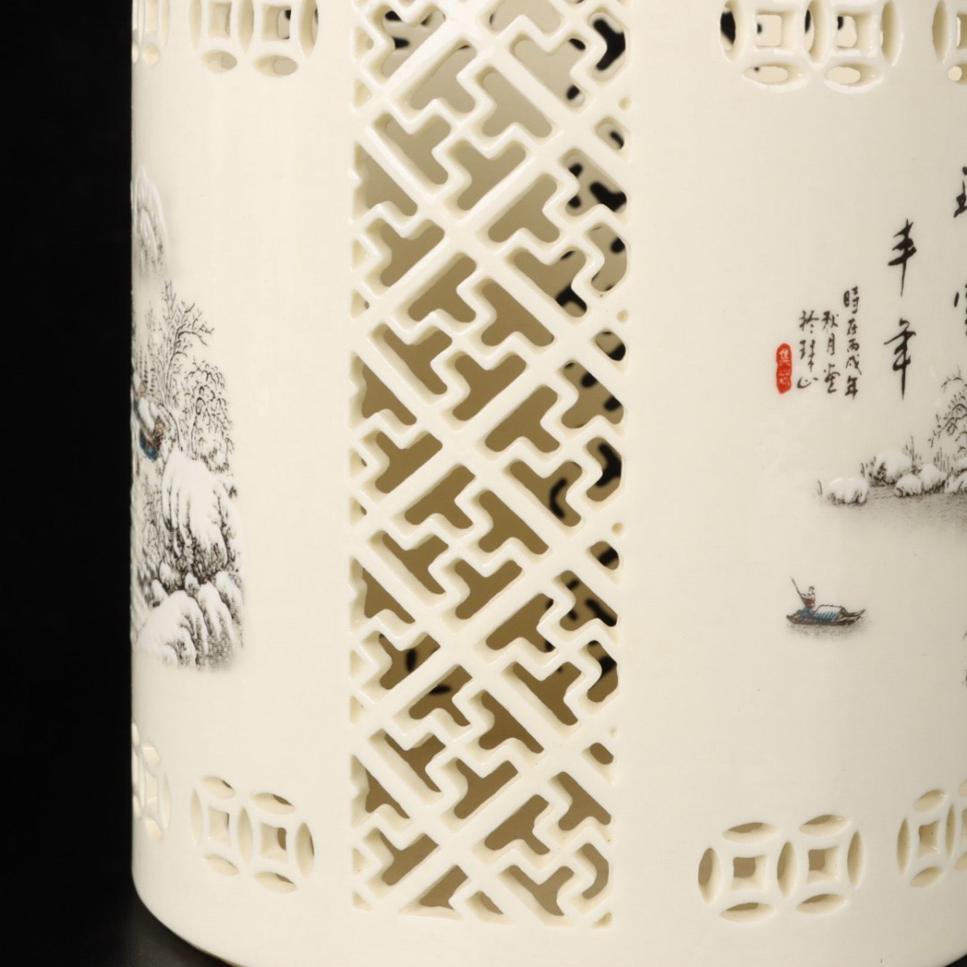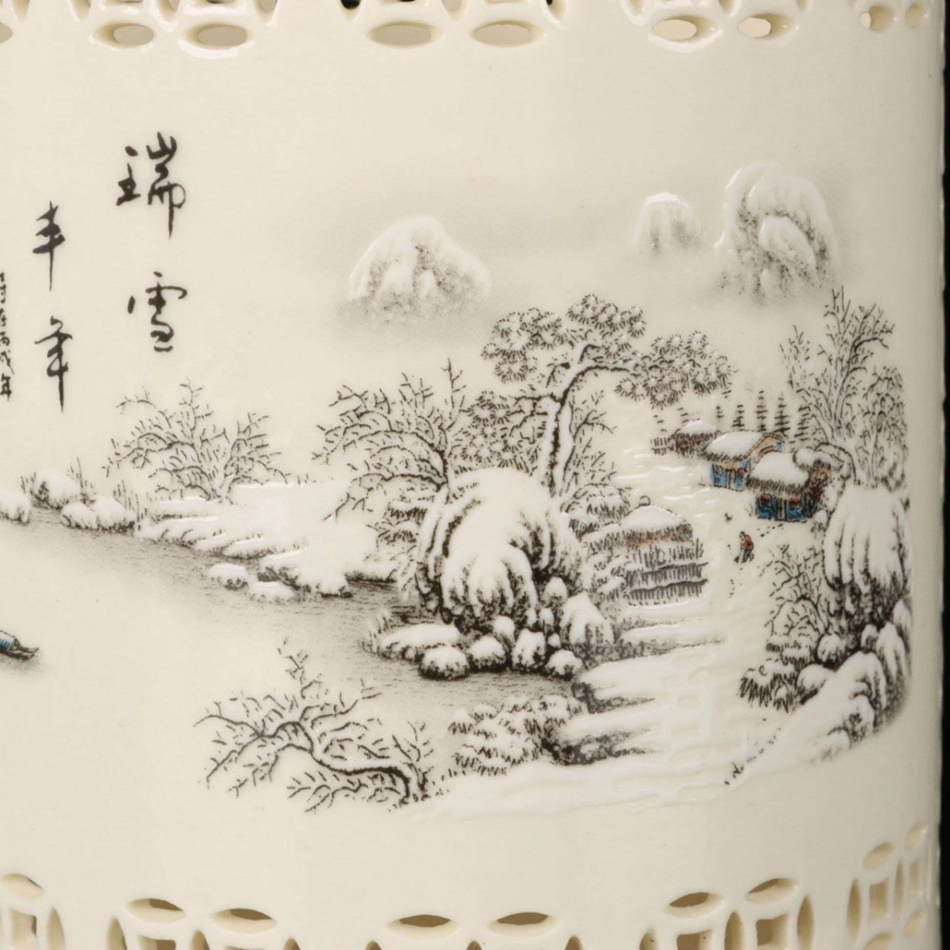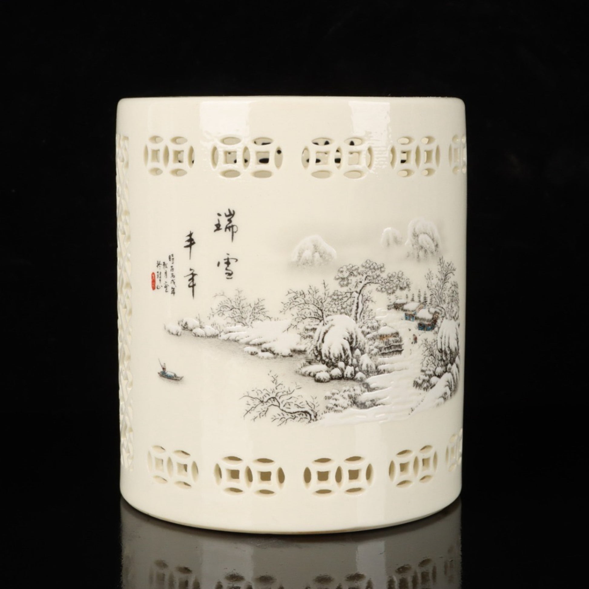 Ceramic hollow ink colored snow landscape landscape pattern pen holder