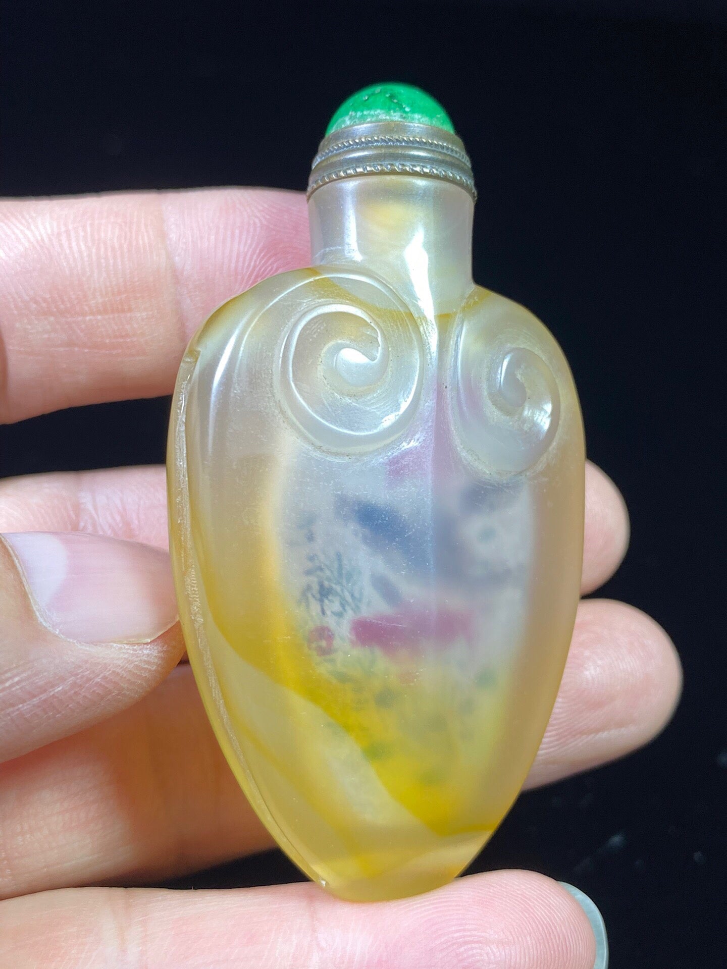 Chinese antique agate carved Ru Yi Nei painted snuff bottle