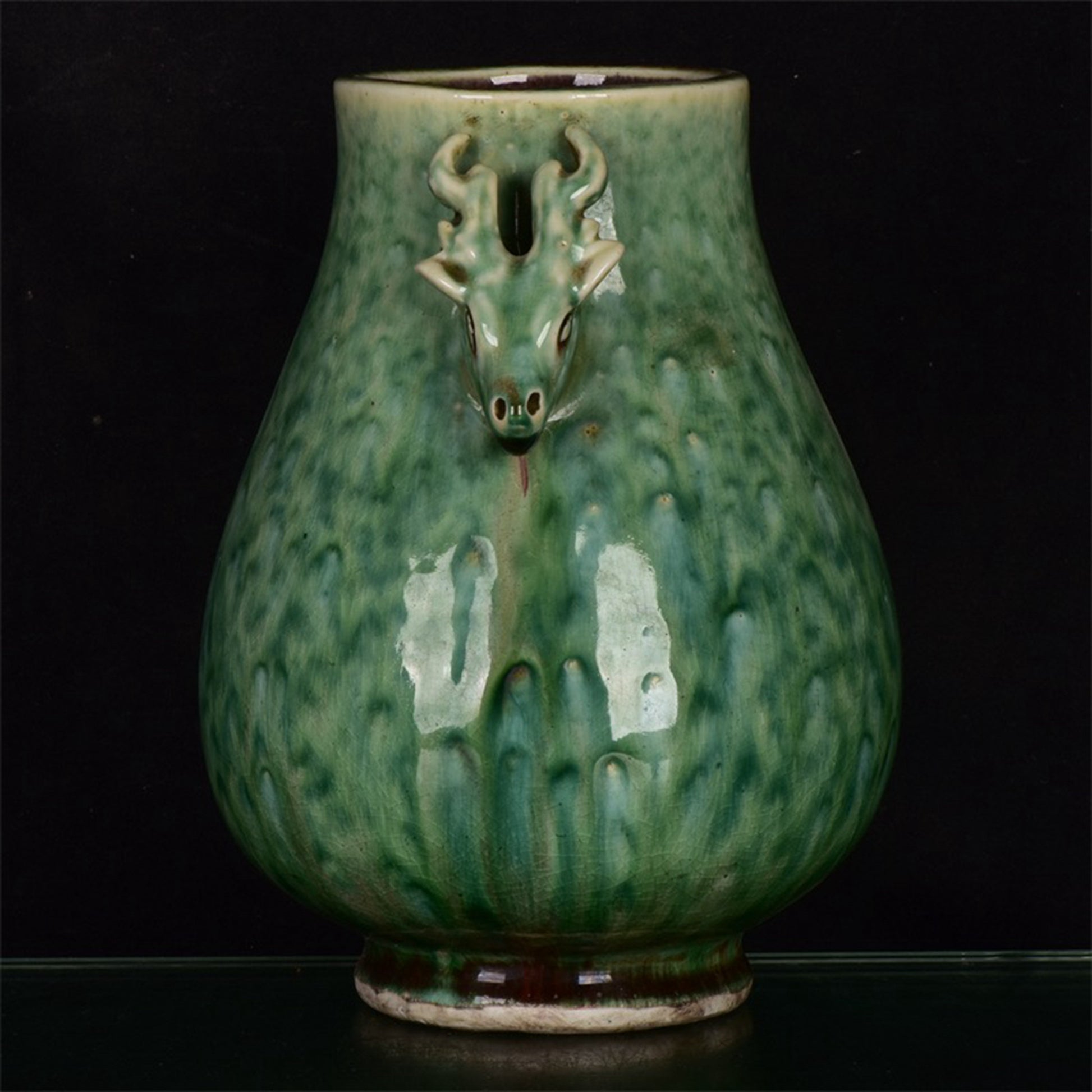 Chinese Antique Beauty Drunken Double Eared Deer Head Zun