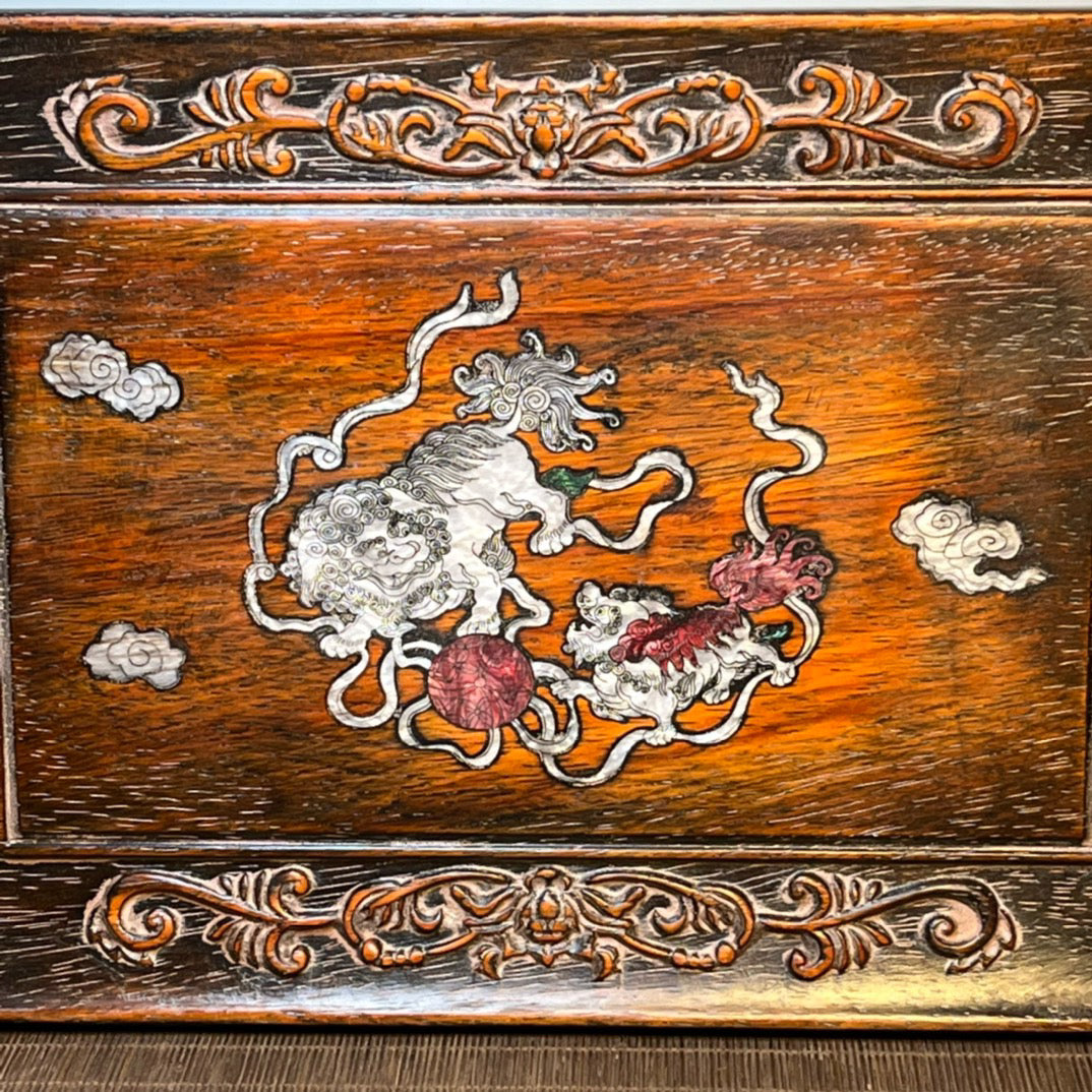 Chinese antique blood sandalwood inlaid with seashell carved tea plate ornaments