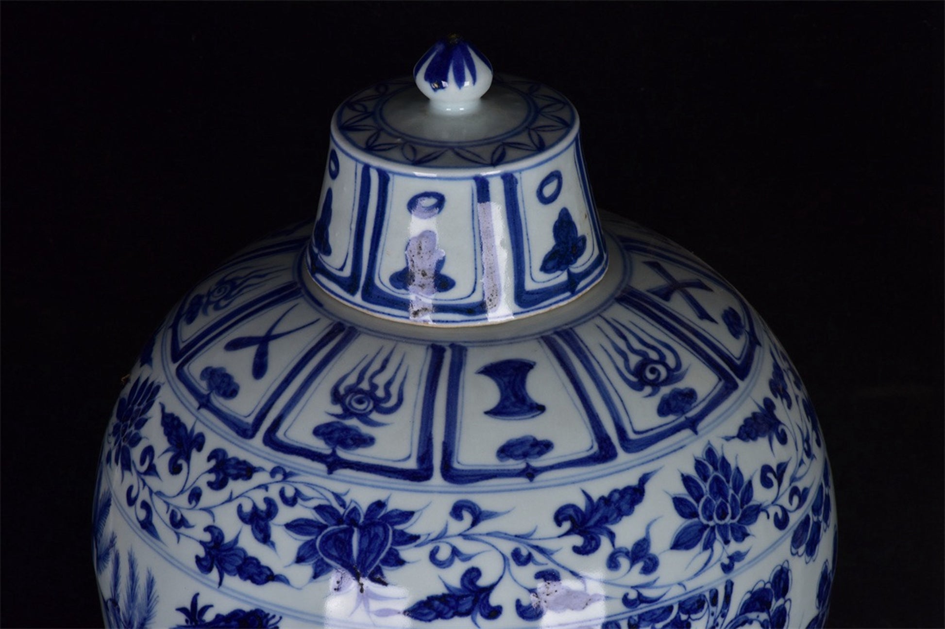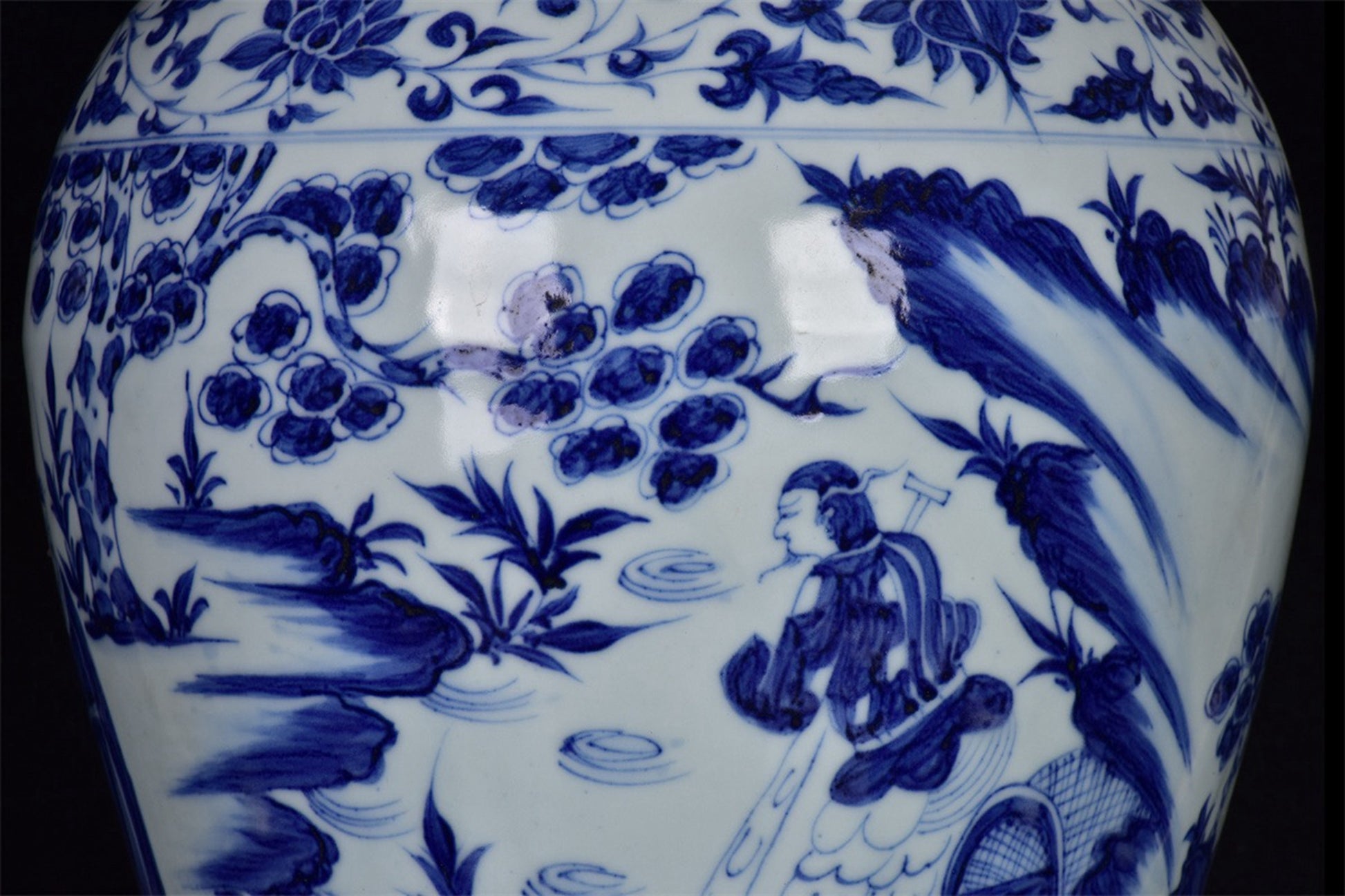 Chinese Antique Blue and White Character Story Pattern for Export Return Open Plum Vase