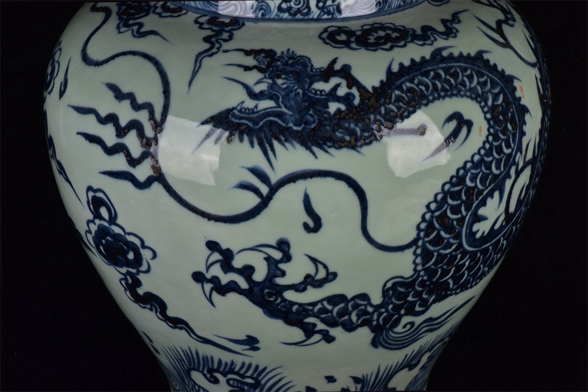 Chinese antique blue and white dragon patterned jar