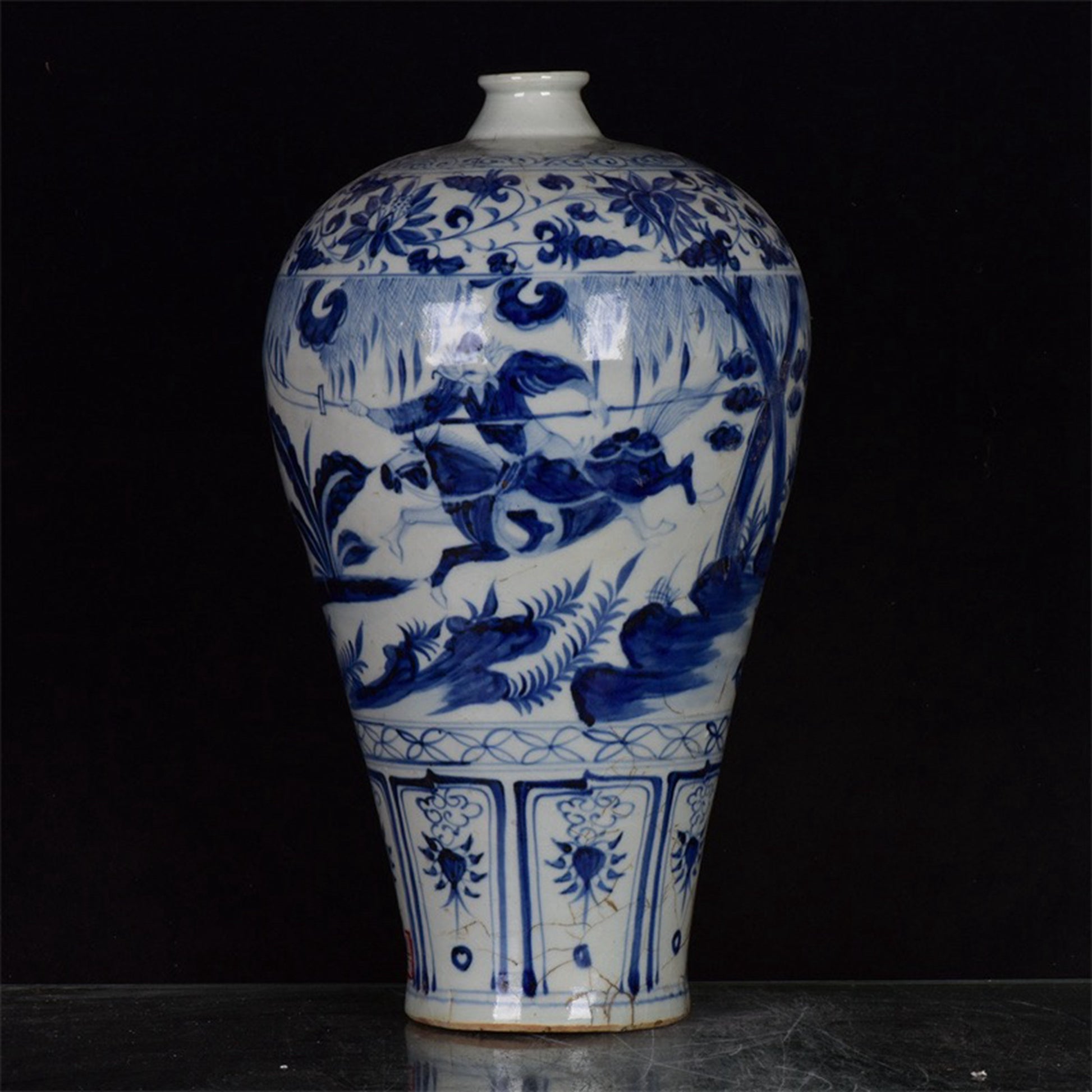 Chinese Antique Blue and White Emperor Taizong's Travel Map for Export Return Open Plum Vase