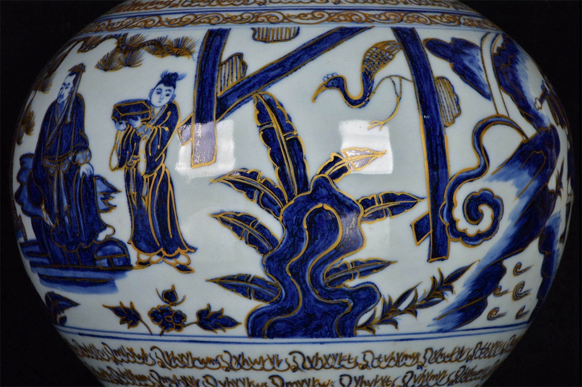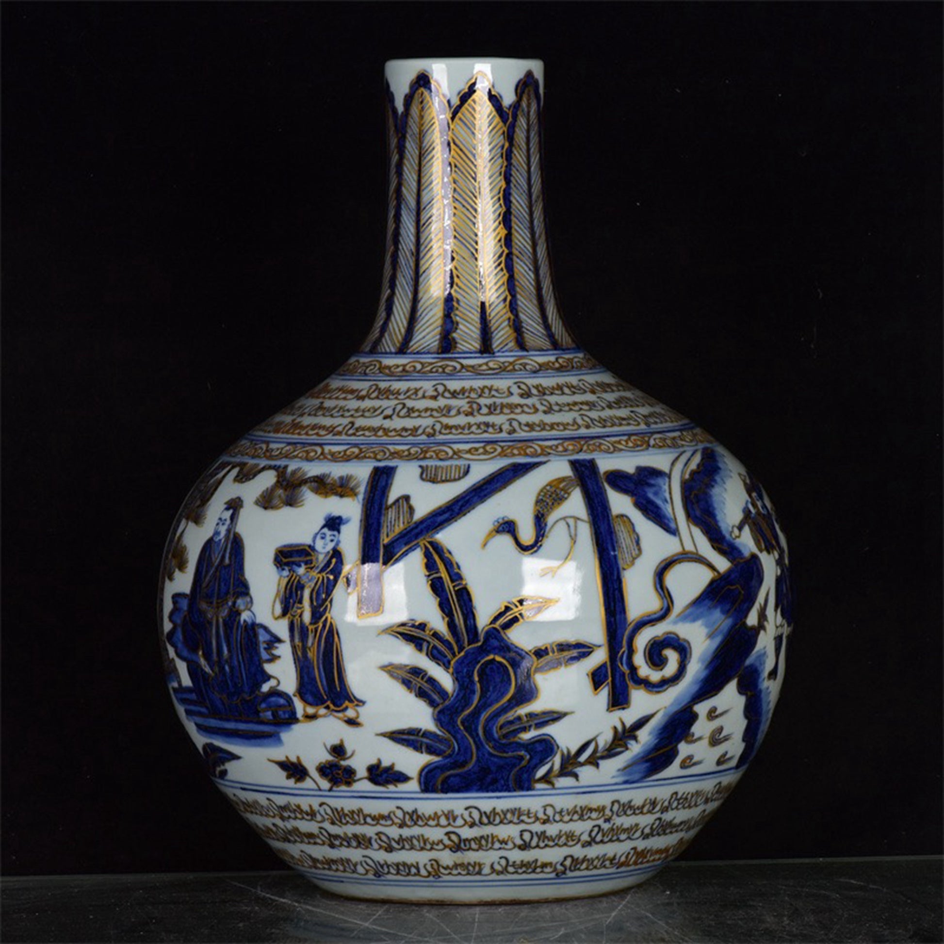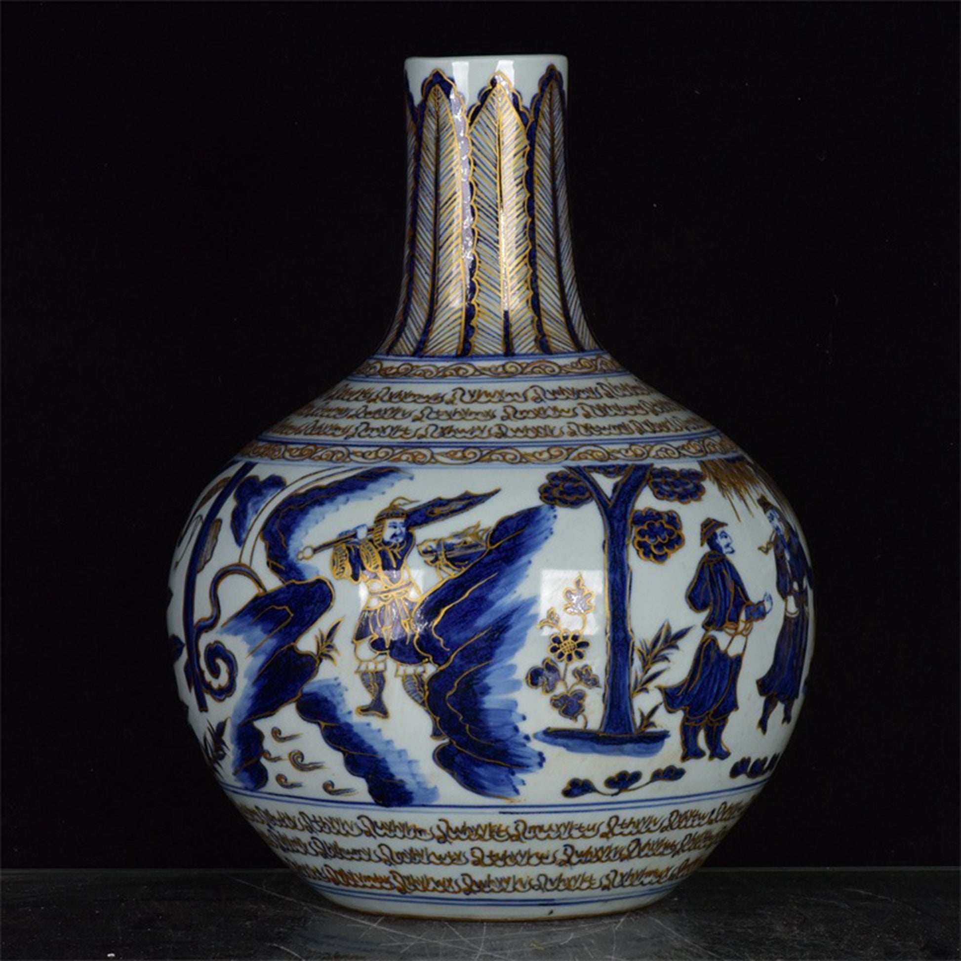 Chinese antique blue and white export return gold painted celestial sphere bottles