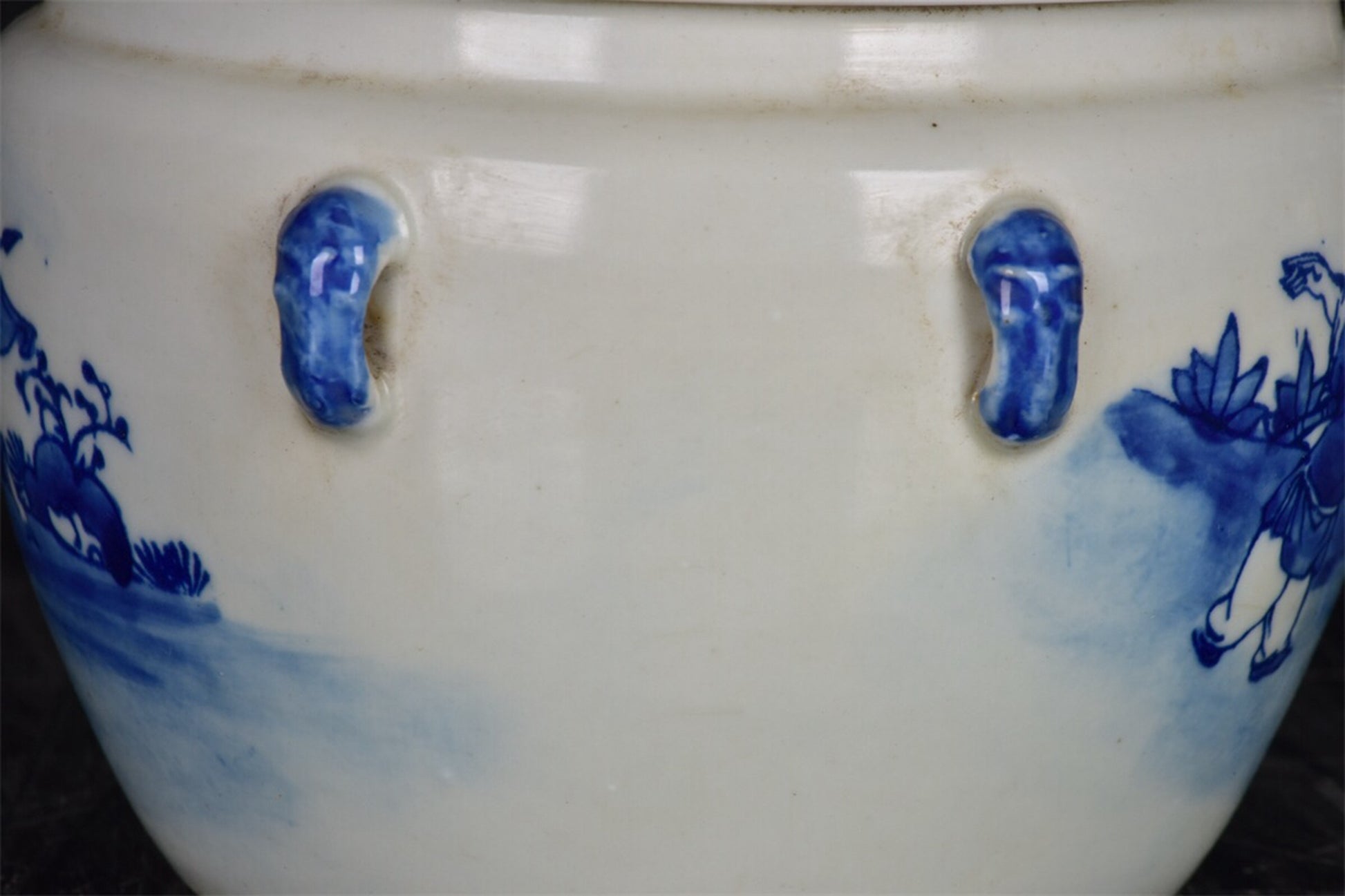 Chinese antique blue and white figure story pattern four series Congee jar lid