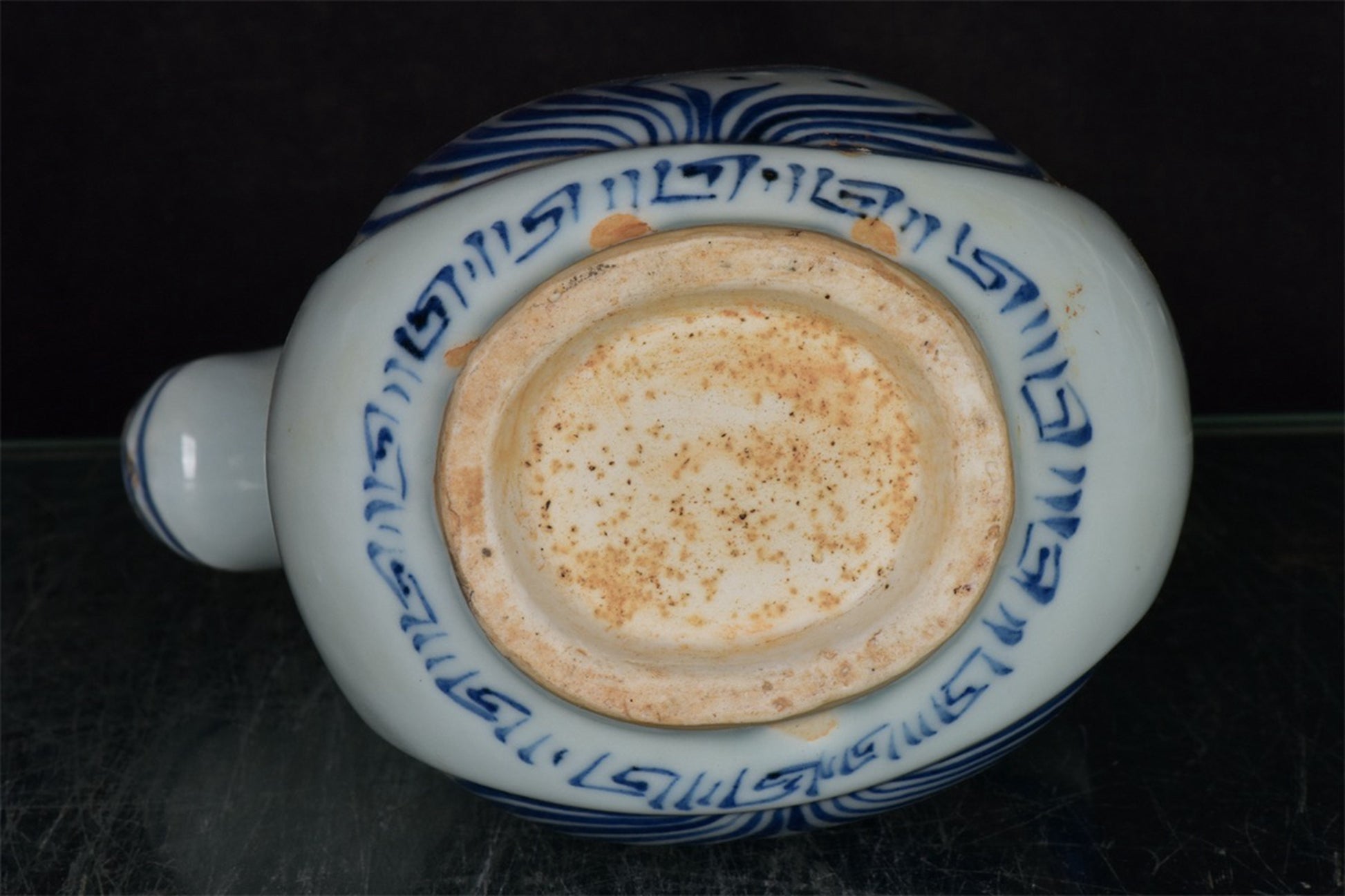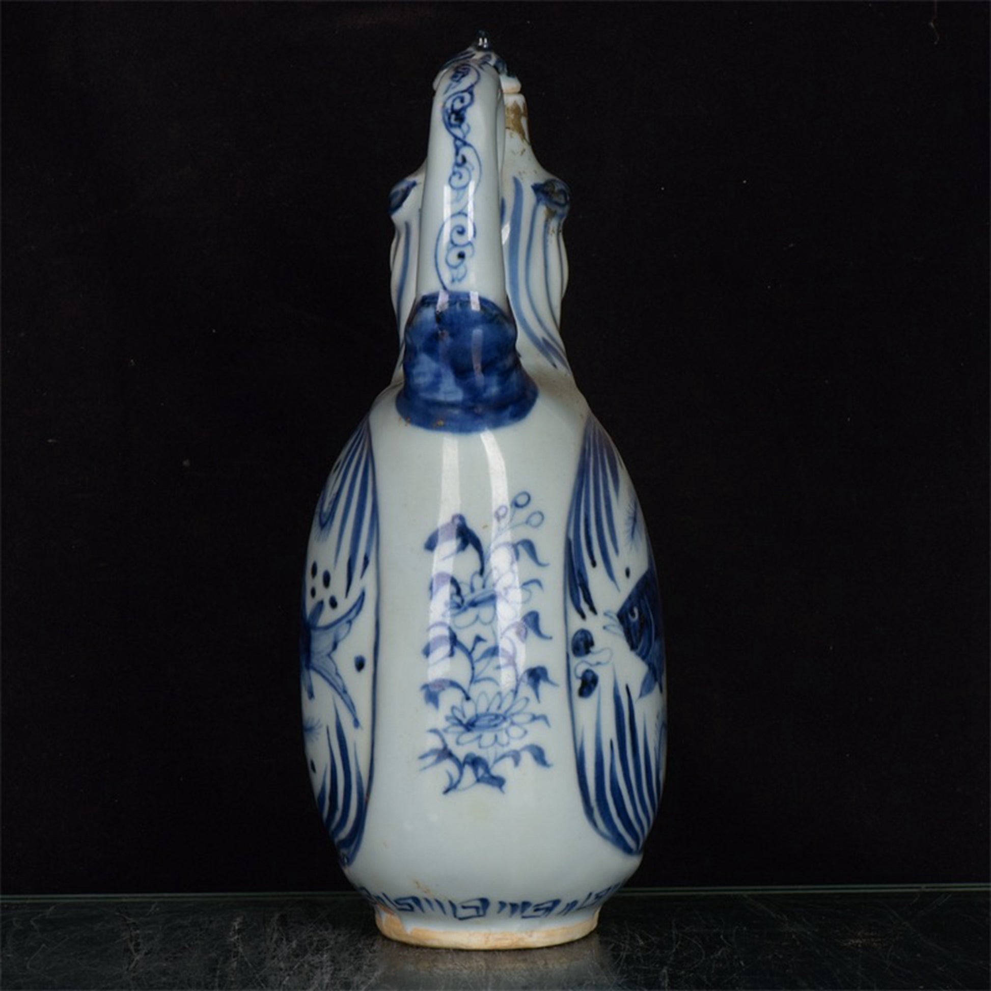 Chinese Antique Blue and White Fish and Algae Pattern Bull Head Pot