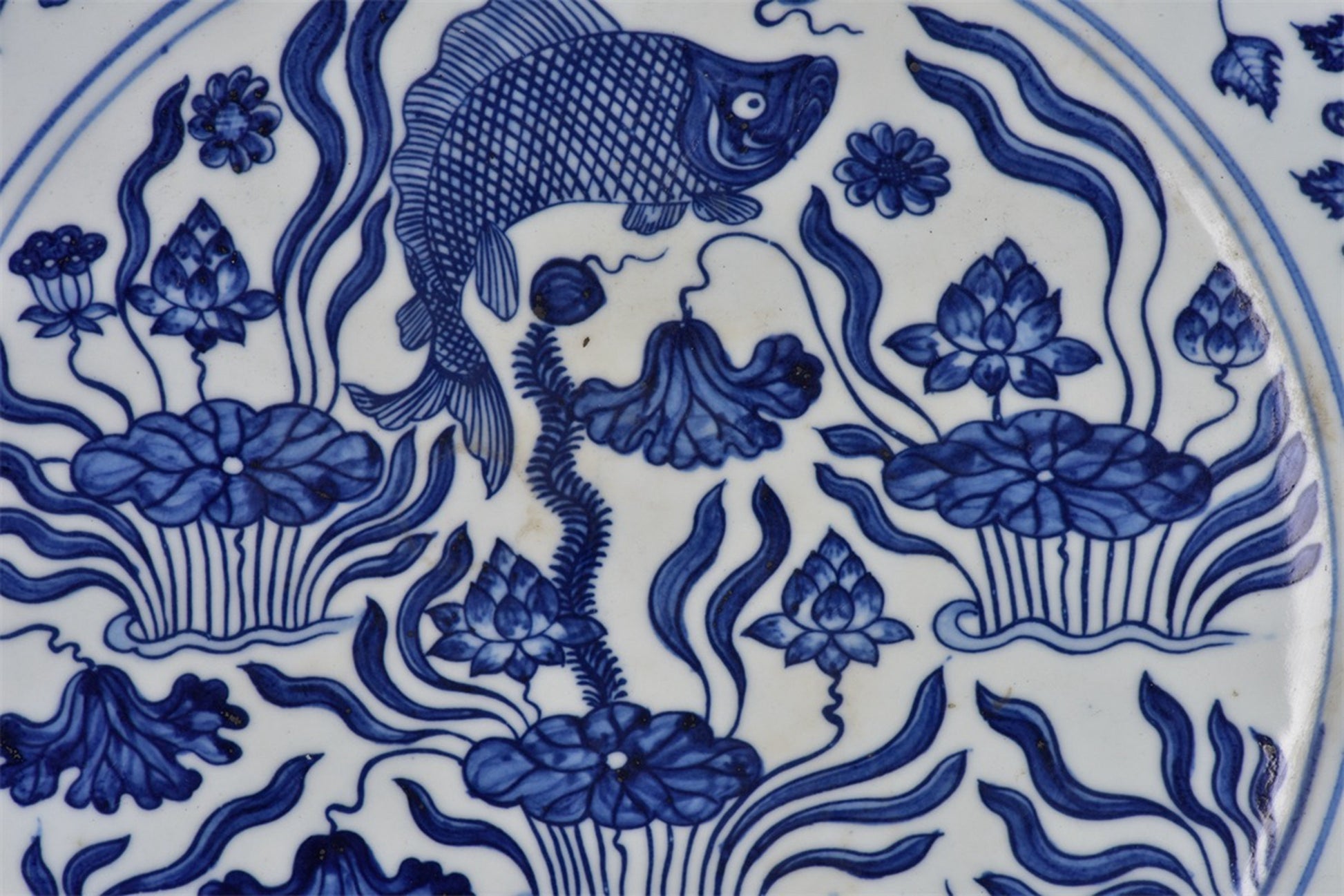 Chinese Antique Blue and White Fish and Algae Pattern Shang Pan