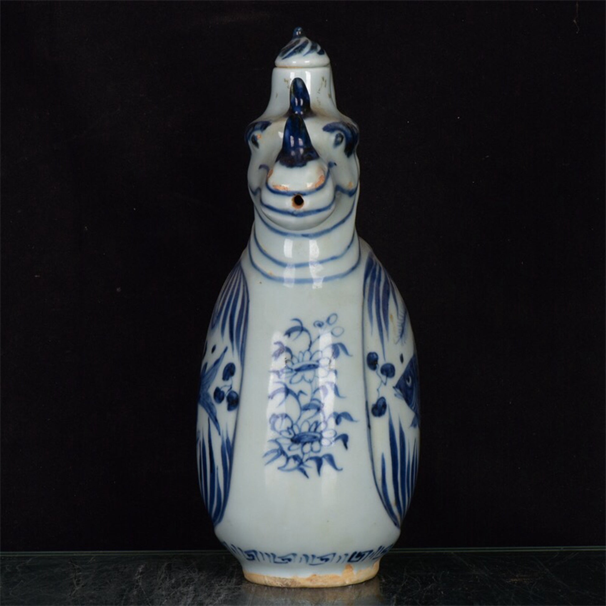 Chinese antique blue and white fish and algae patterned bullhead pot