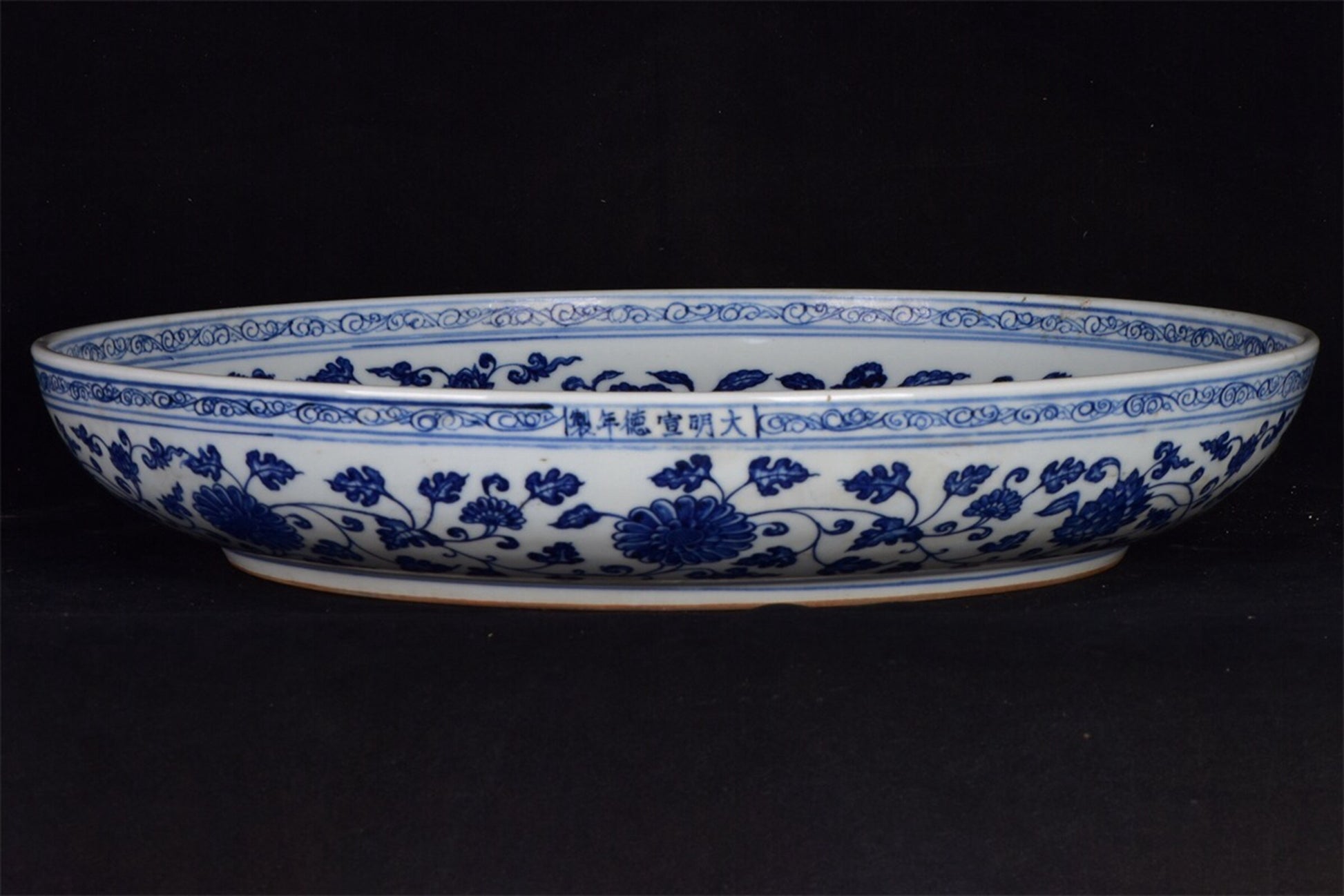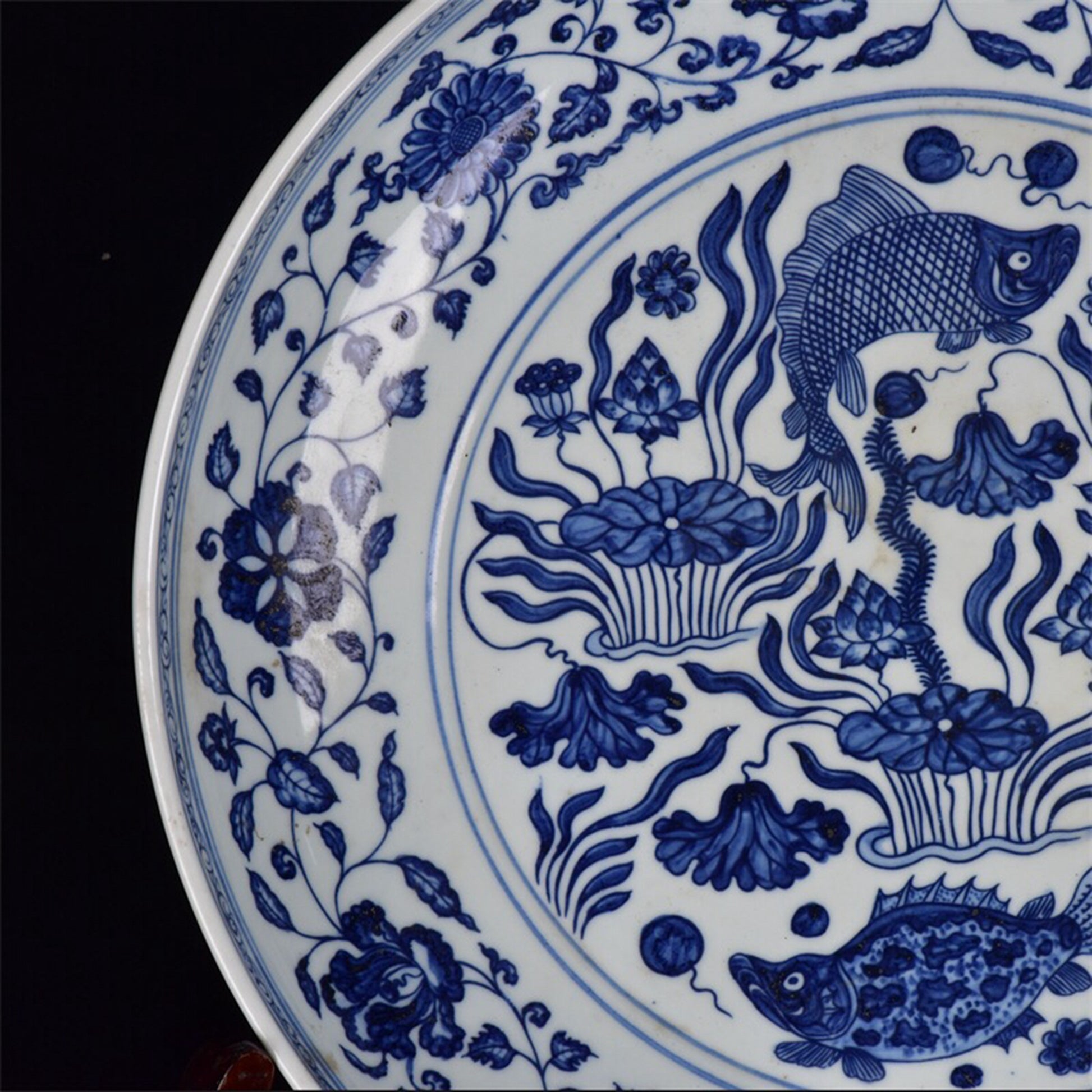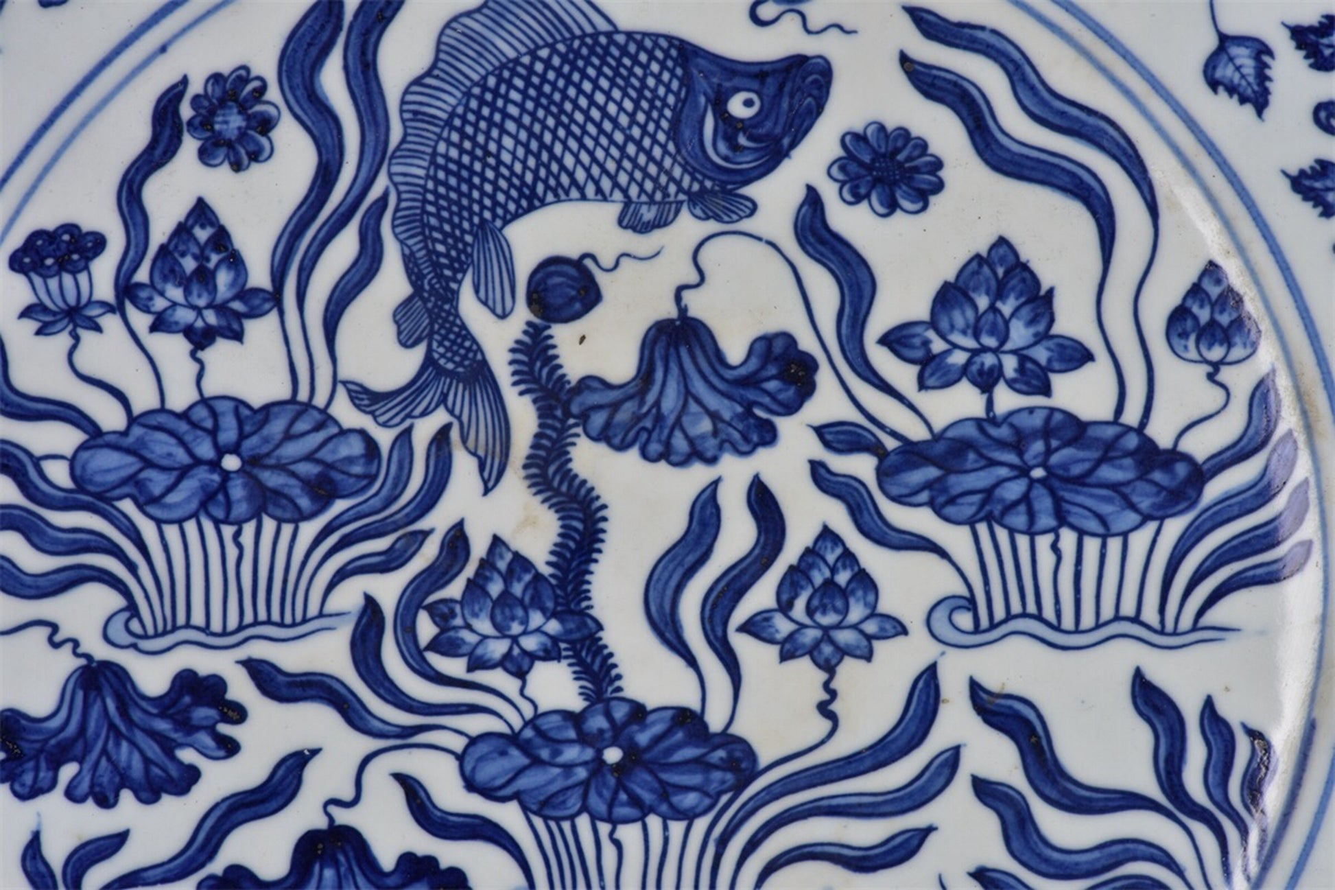 Chinese antique blue and white fish and algae patterned plate