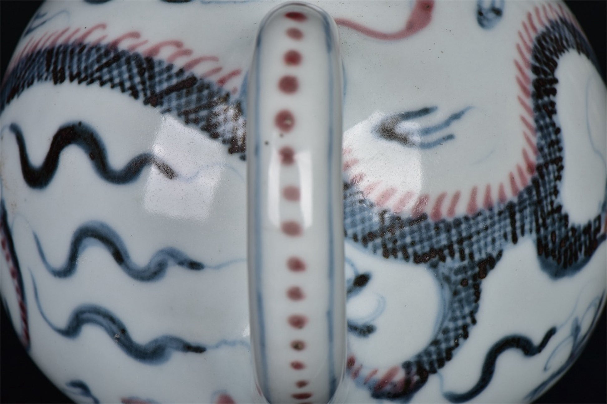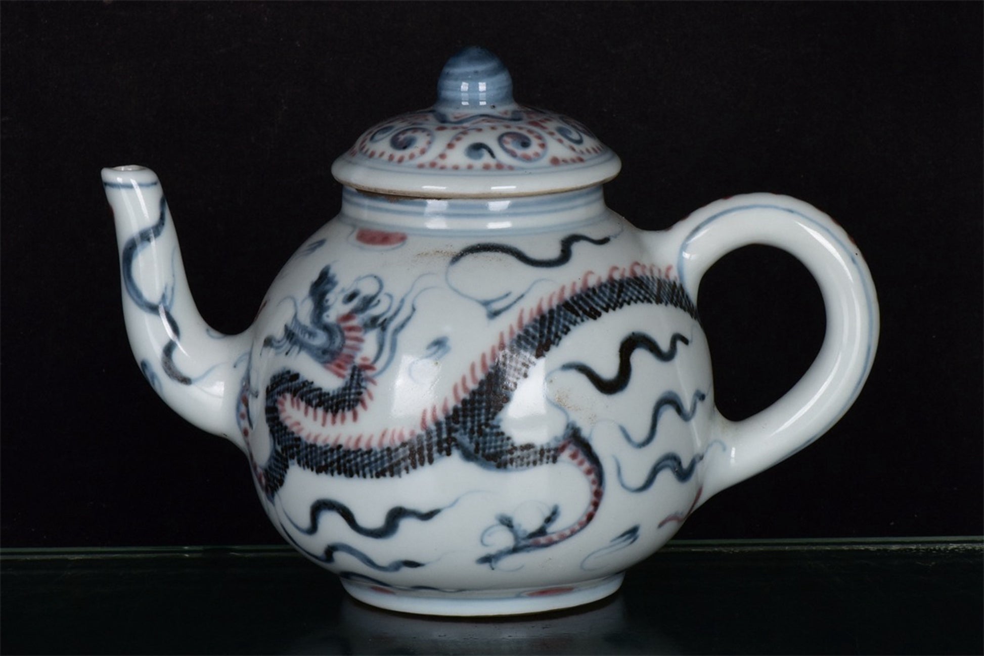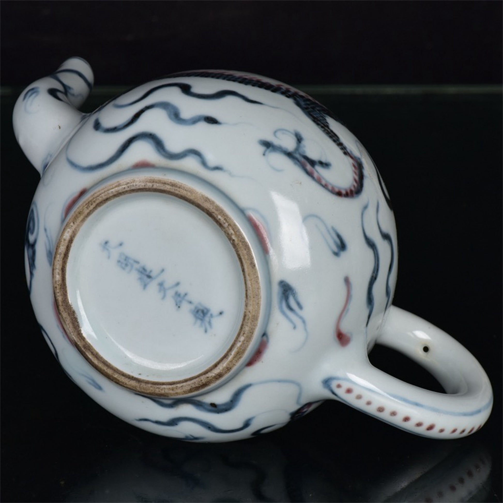 Chinese antique blue and white glazed red dragon patterned teapot