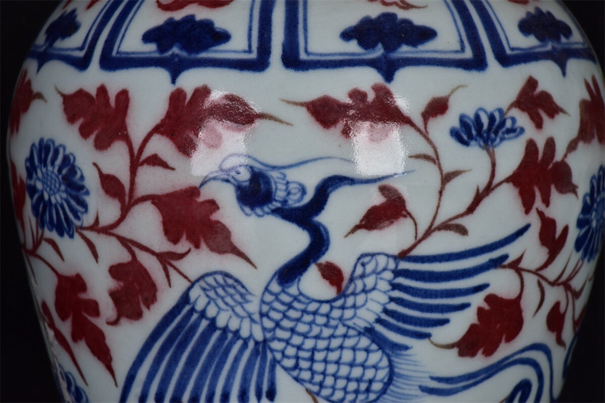 Chinese antique blue and white glazed red entwined phoenix patterned plum vase