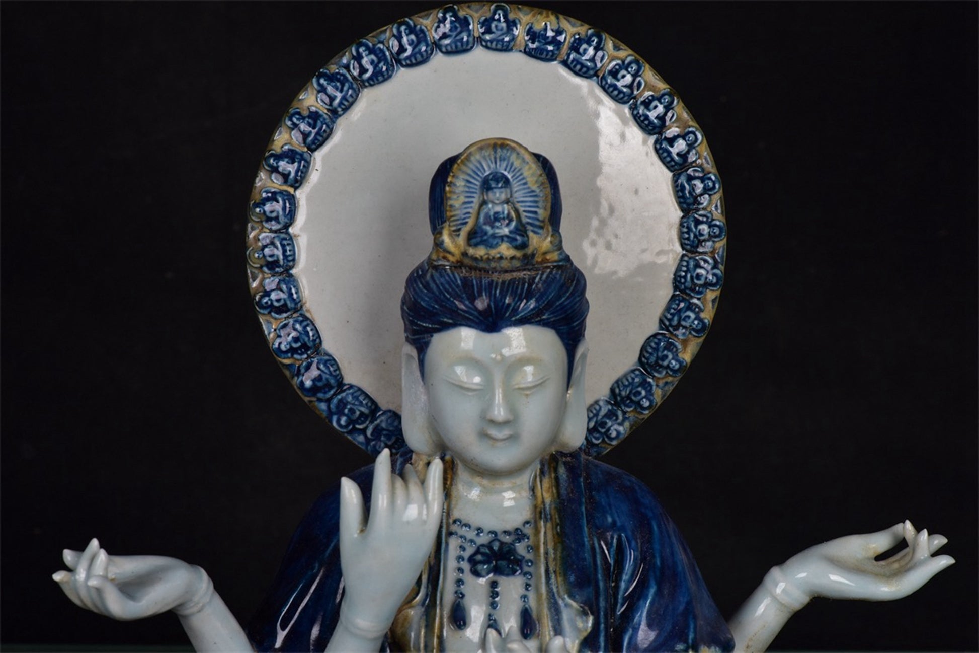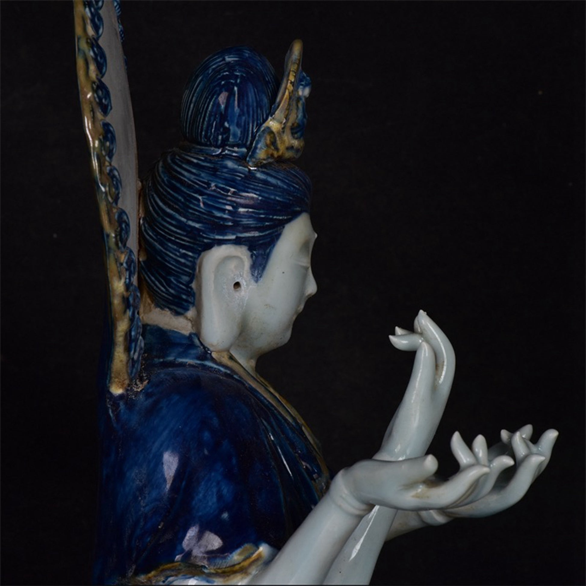 Chinese antique blue and white Guanyin sculpture