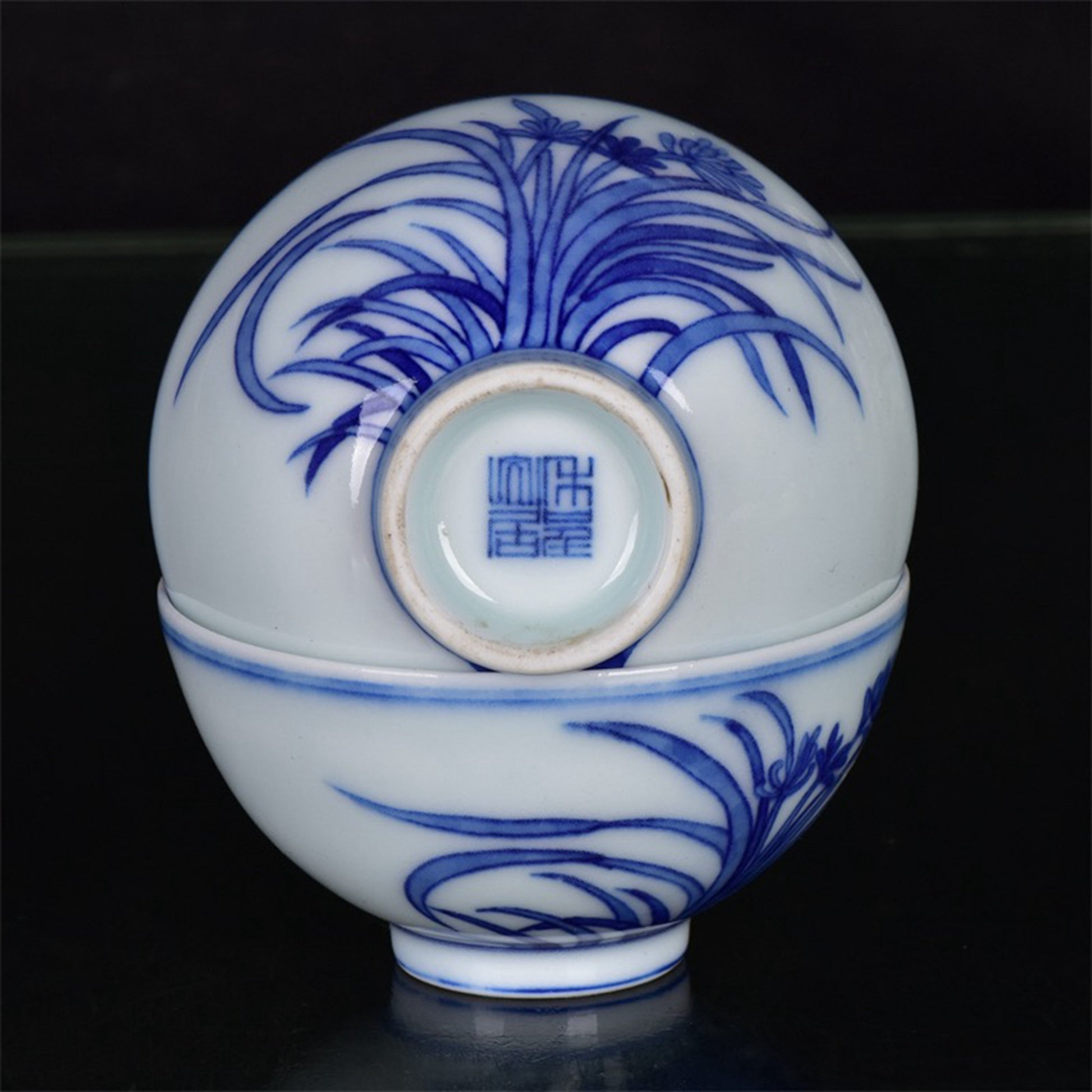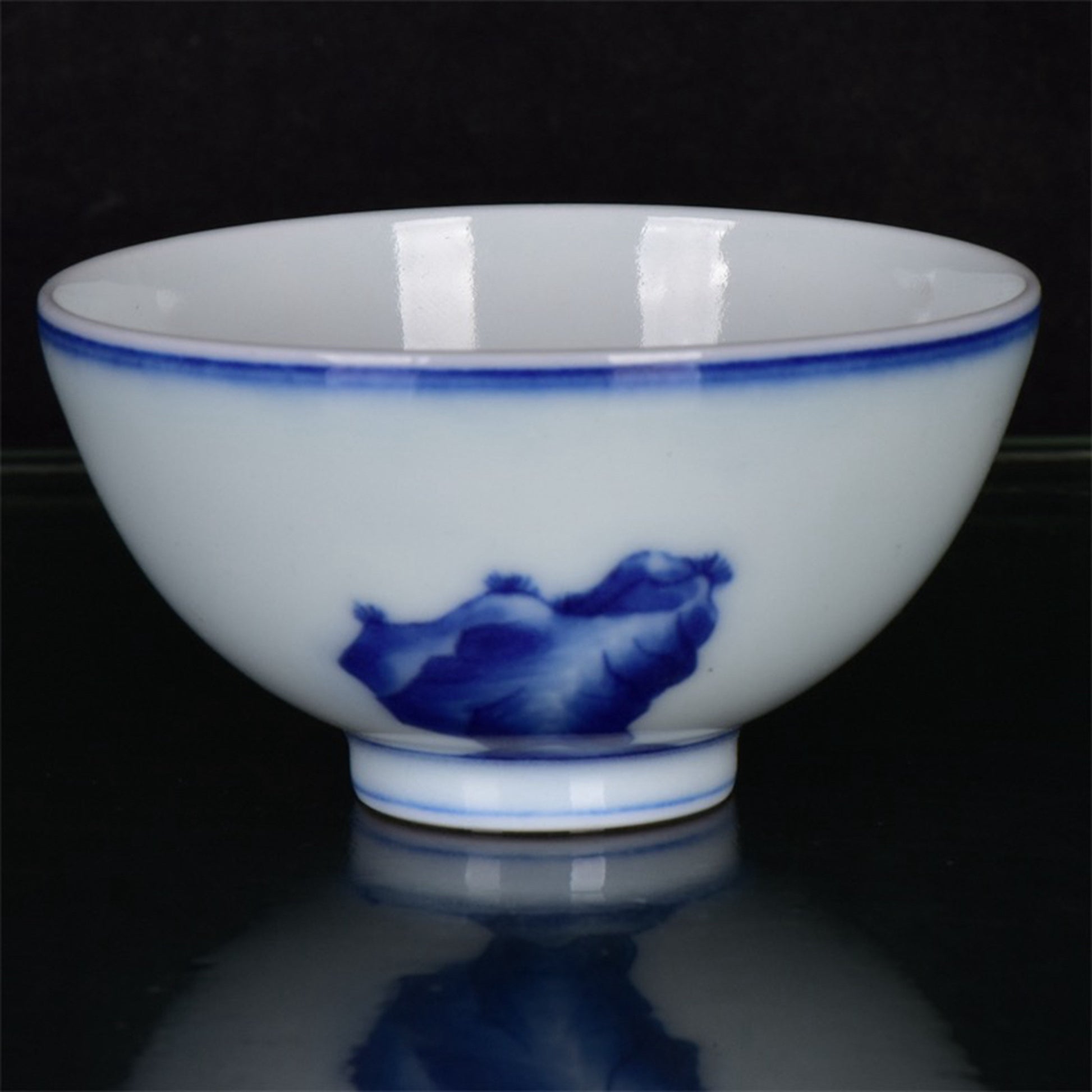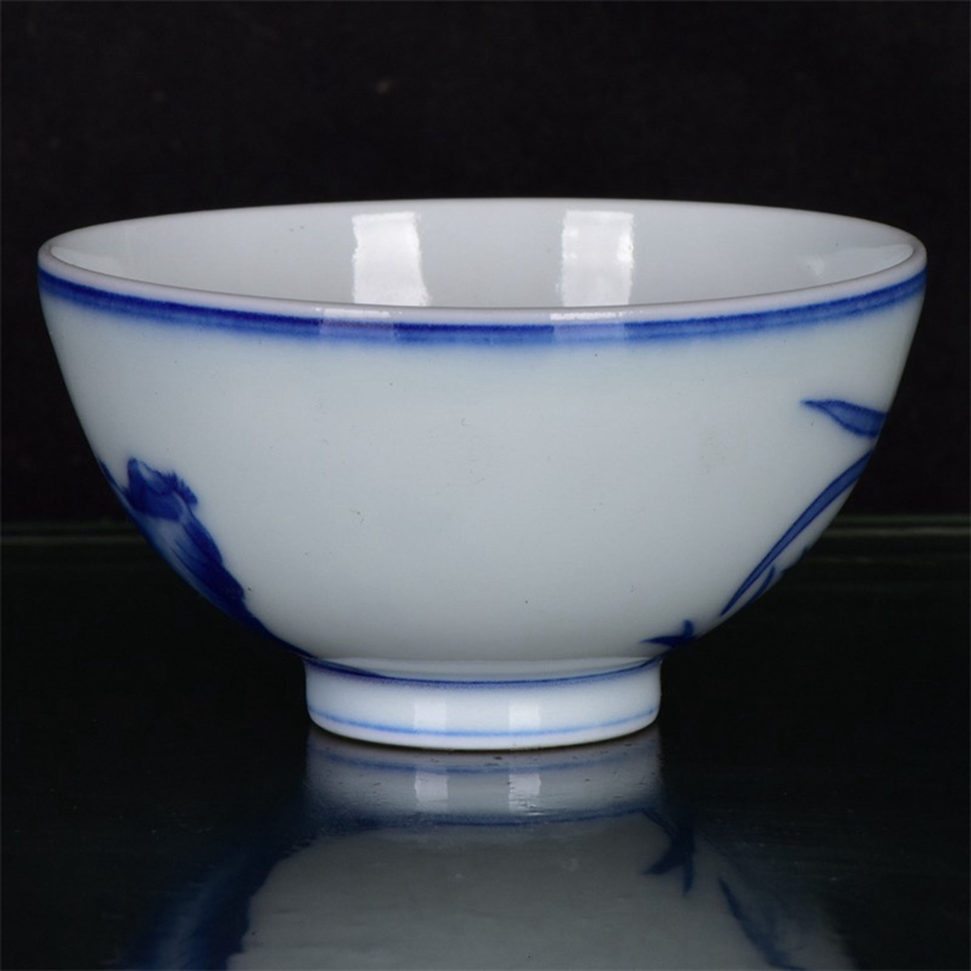 Chinese antique blue and white painted flower with gentleman pattern chicken heart cup