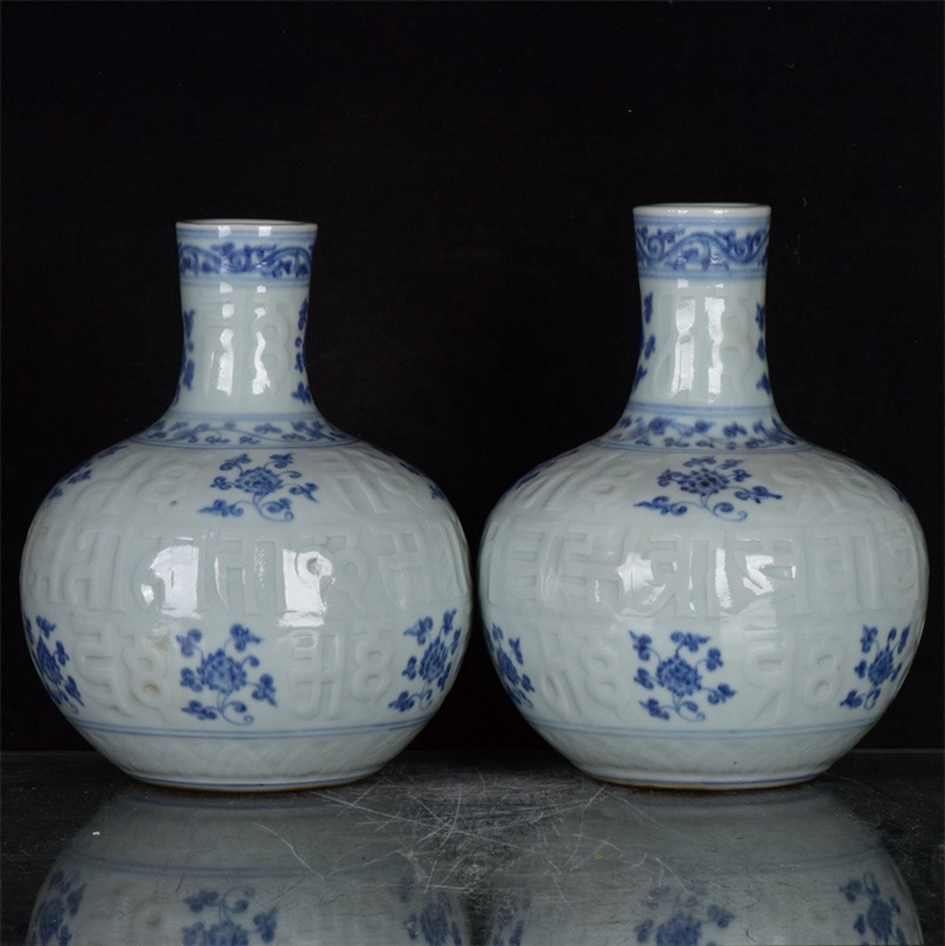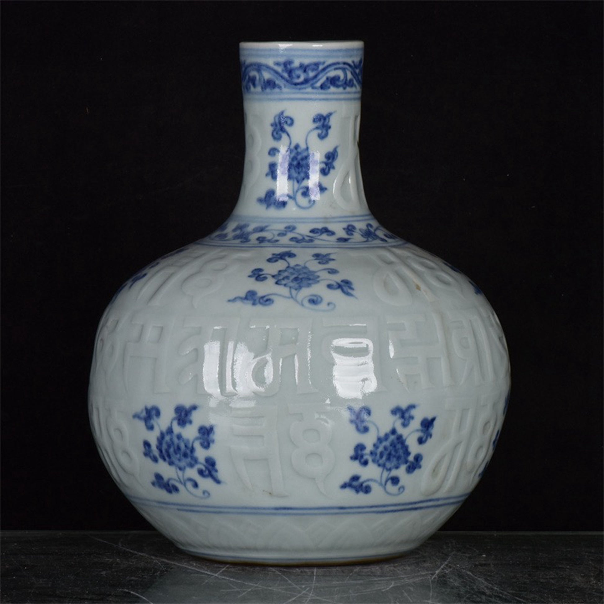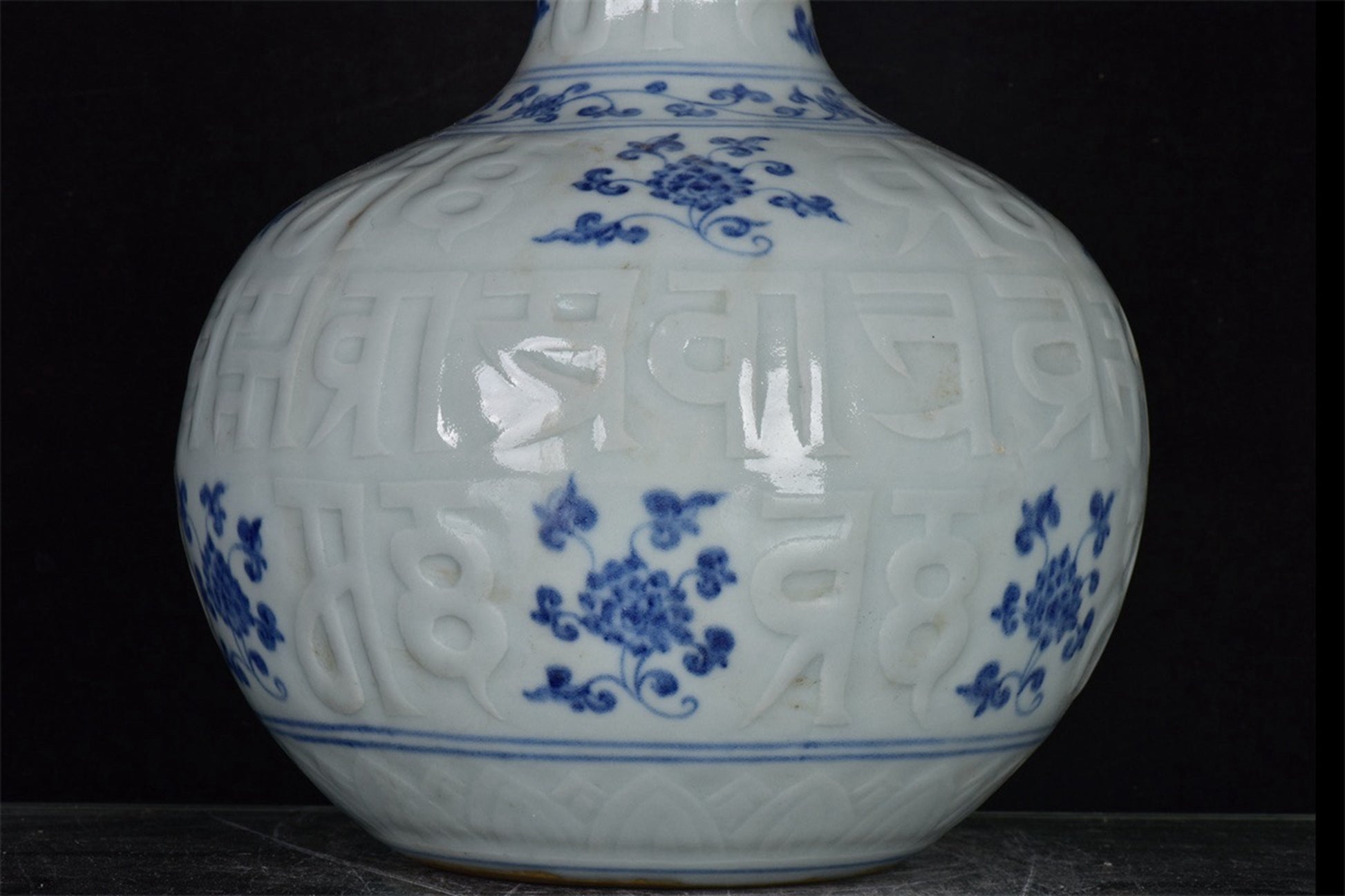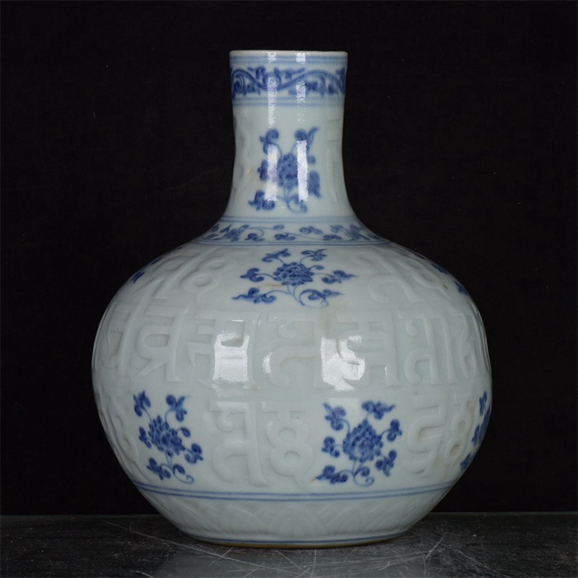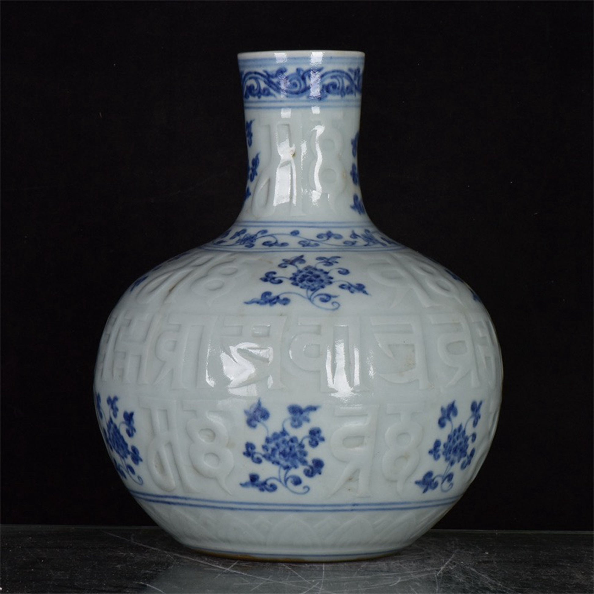 Chinese antique blue and white Sanskrit export return celestial sphere bottle