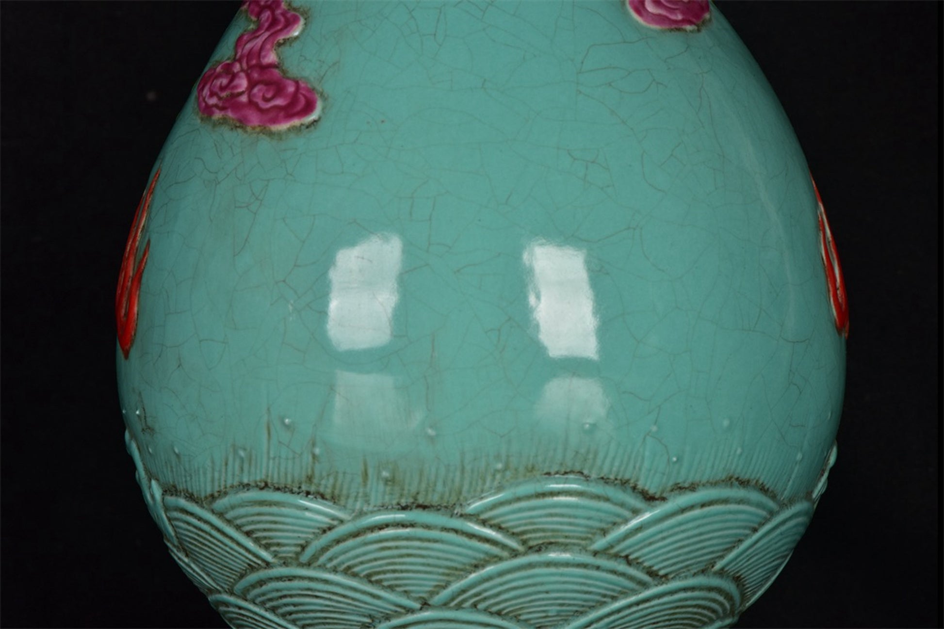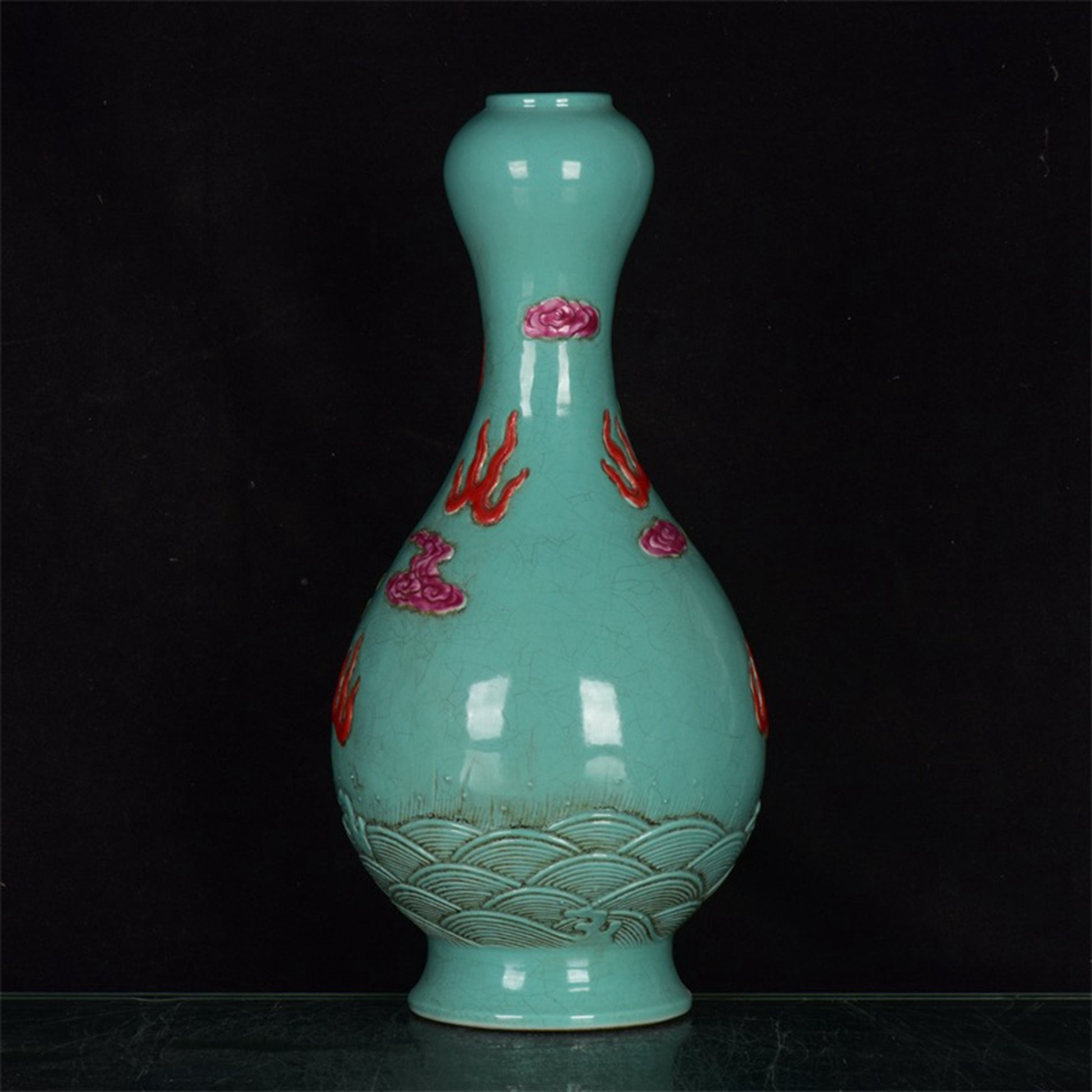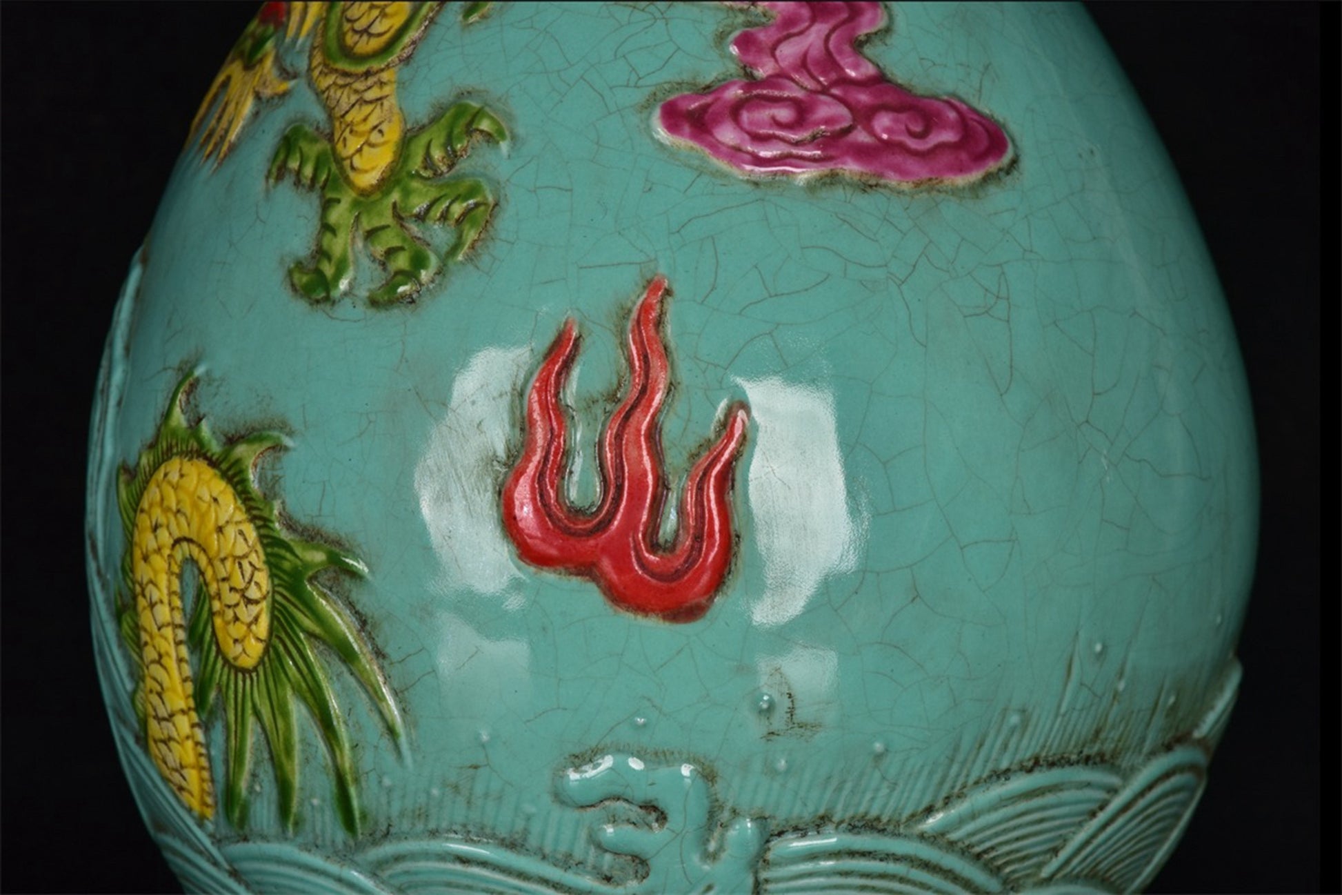 Chinese antique blue glazed relief dragon patterned garlic bottle