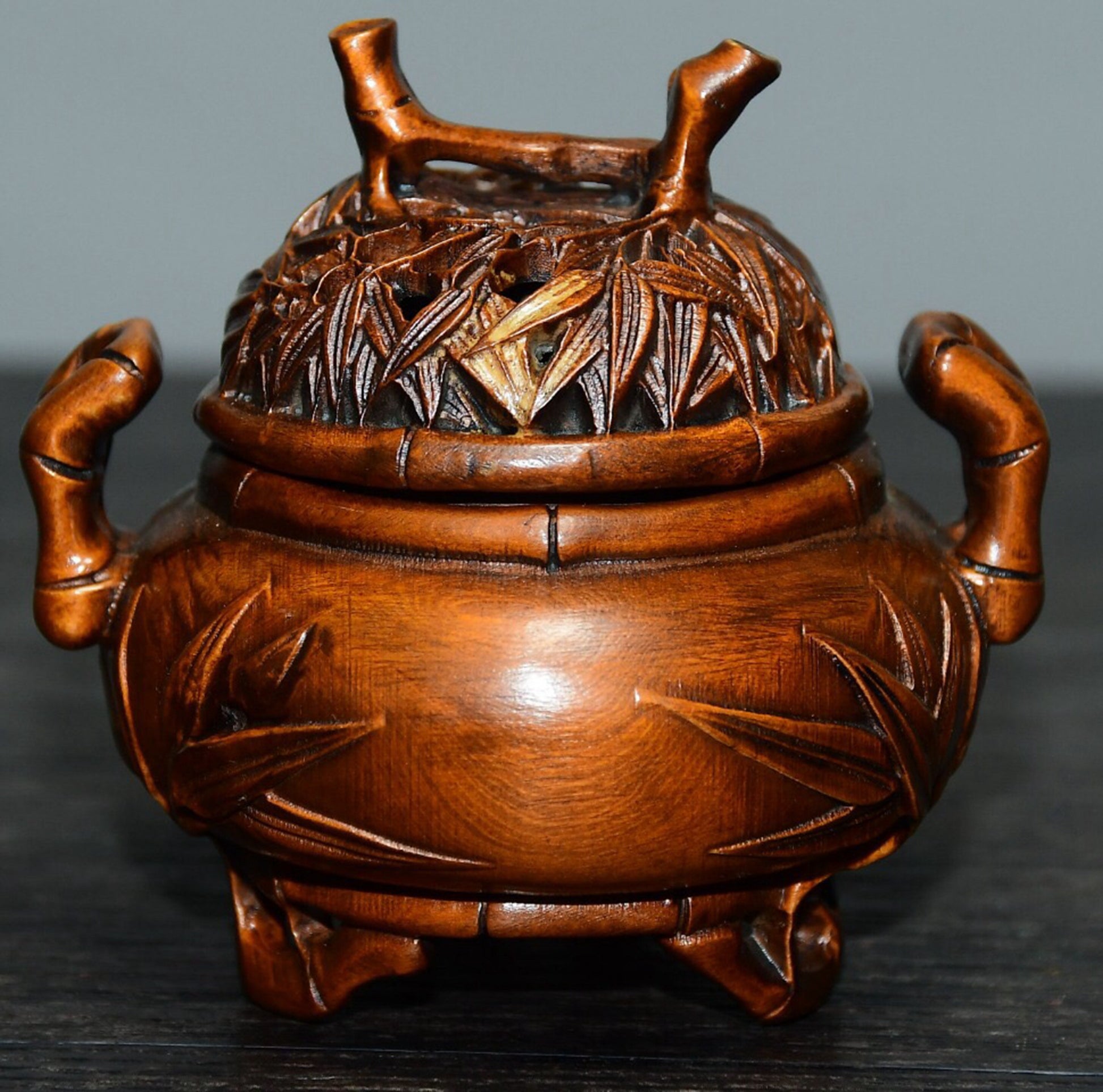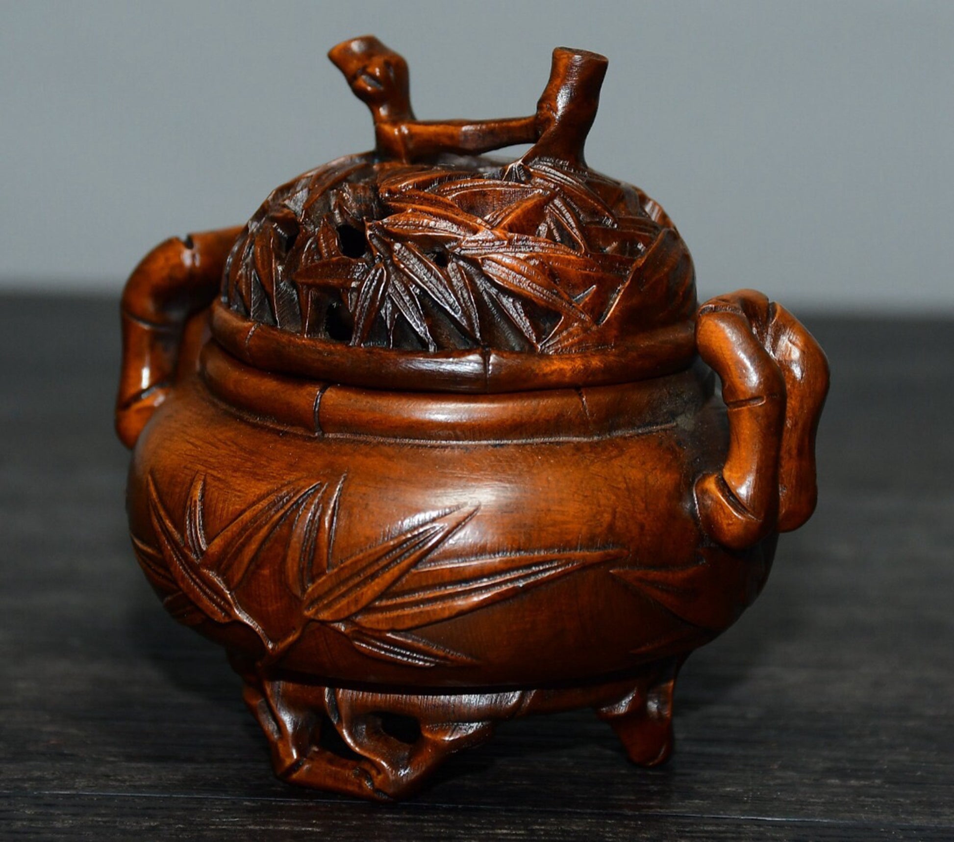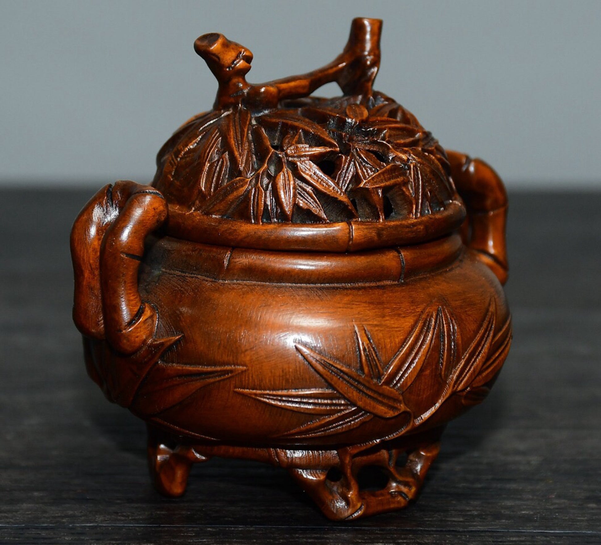 Chinese antique boxwood and bamboo leaf incense burner ornaments