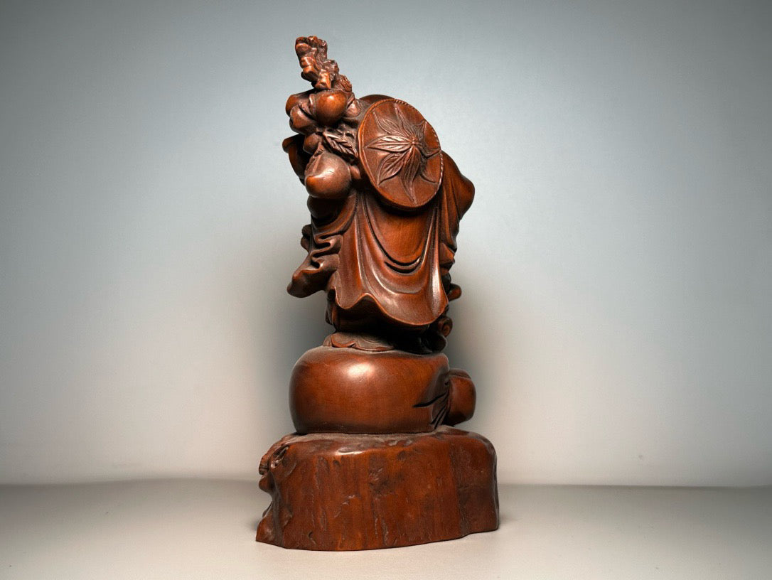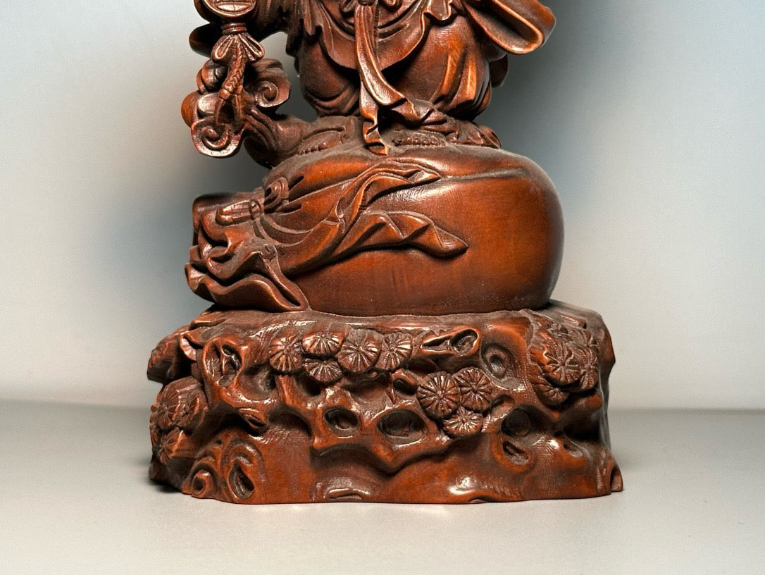 Chinese antique boxwood carving, finely crafted with copper coins, Maitreya Buddha