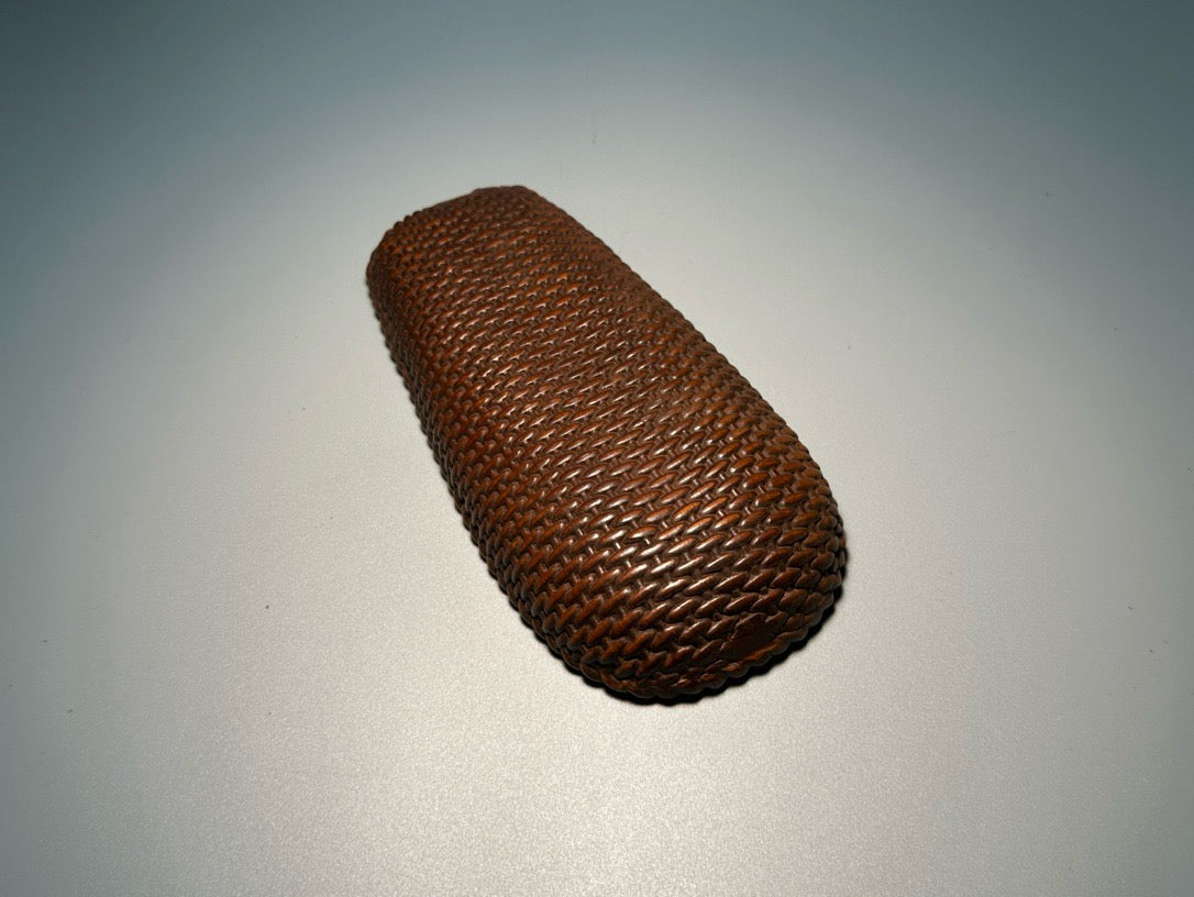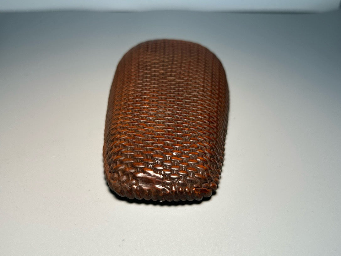Chinese antique boxwood carving is exquisitely crafted with a golden dustpan that moves forward every day