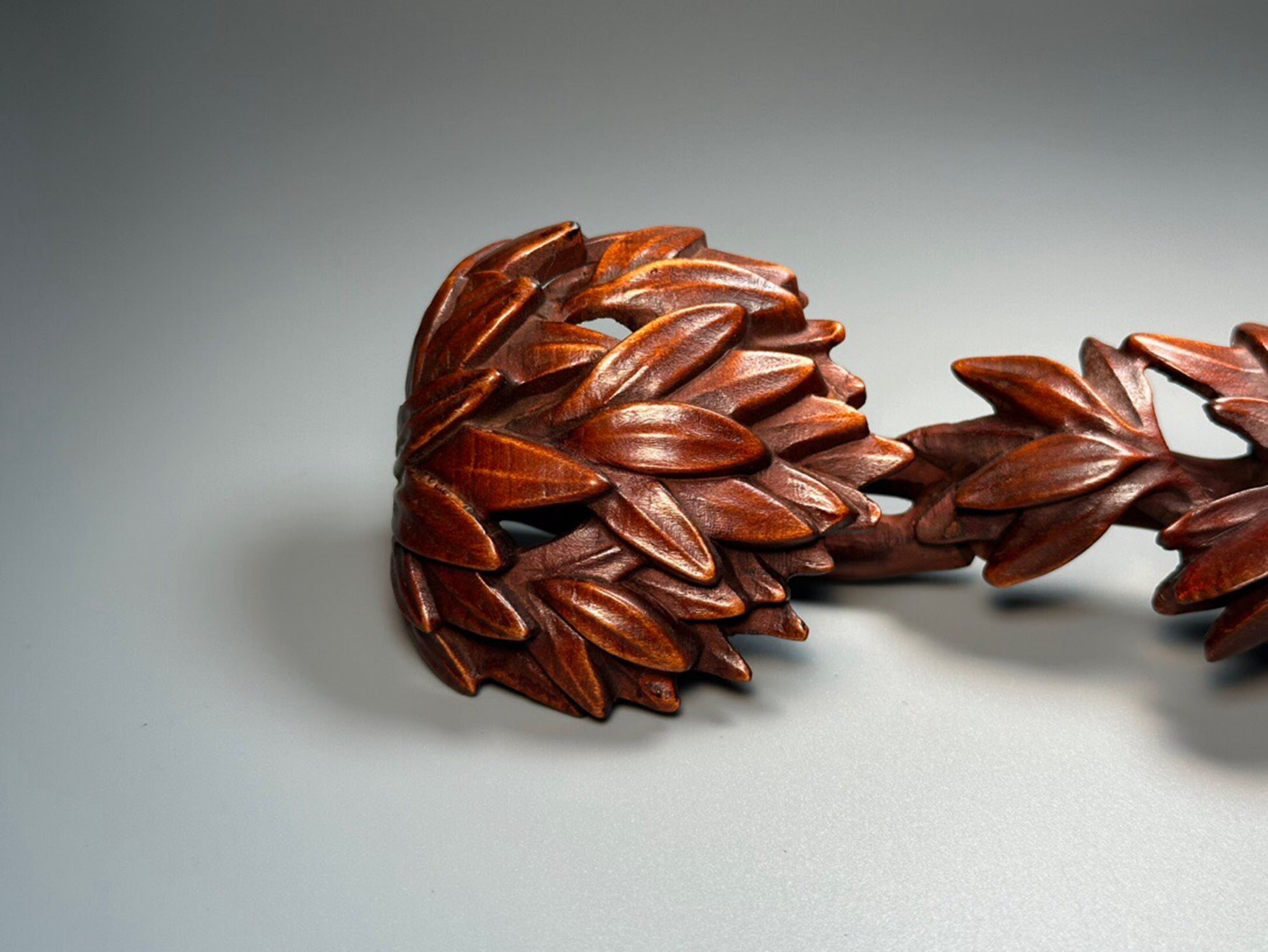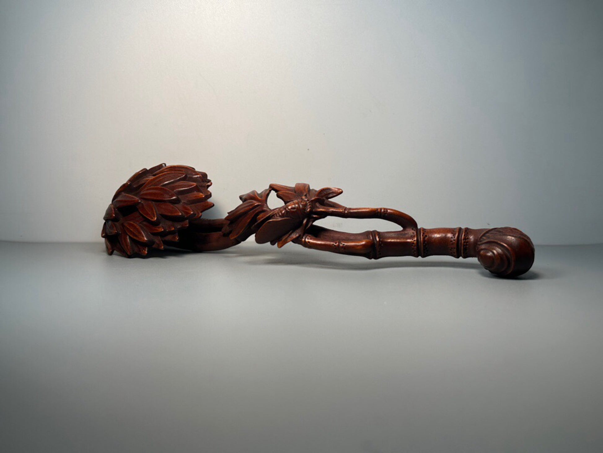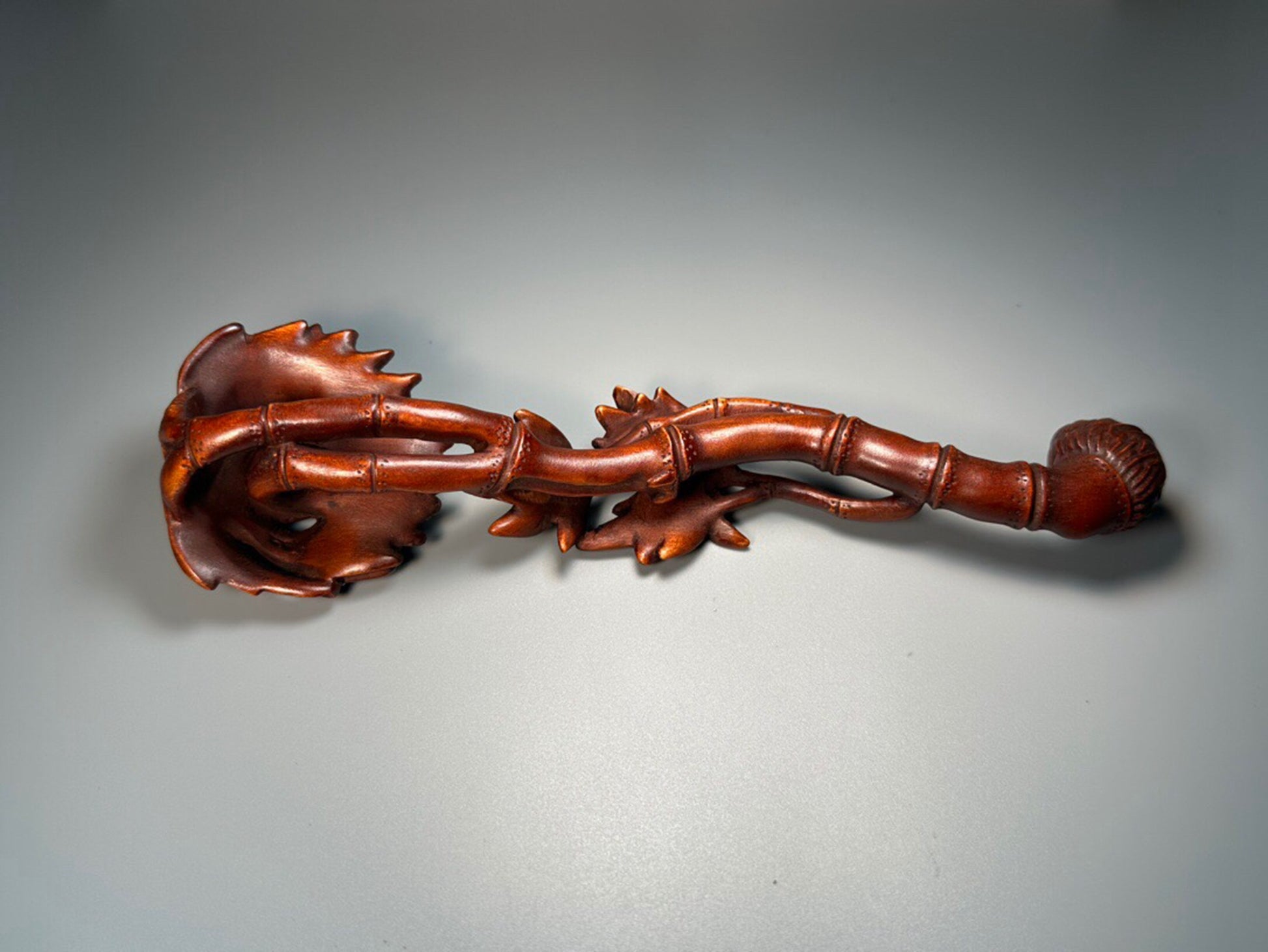 Chinese antique boxwood carving with bamboo leaves, Ruyi