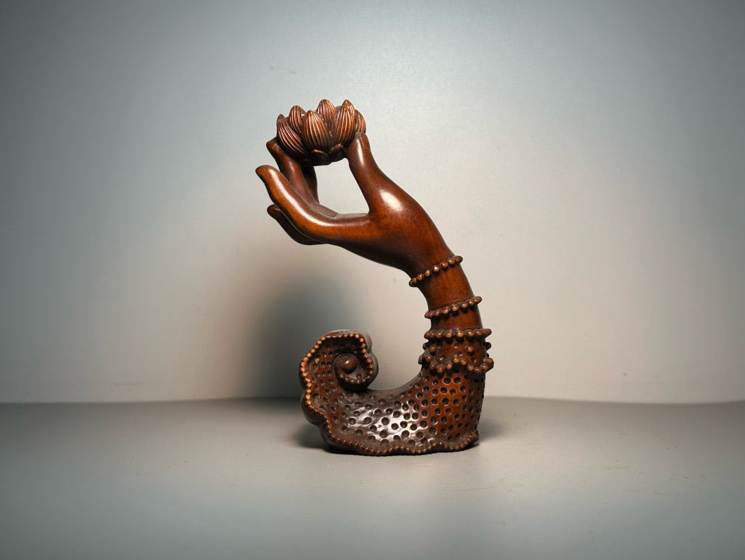 Chinese antique boxwood carving with exquisite craftsmanship, carved with Buddha's hand incense insert