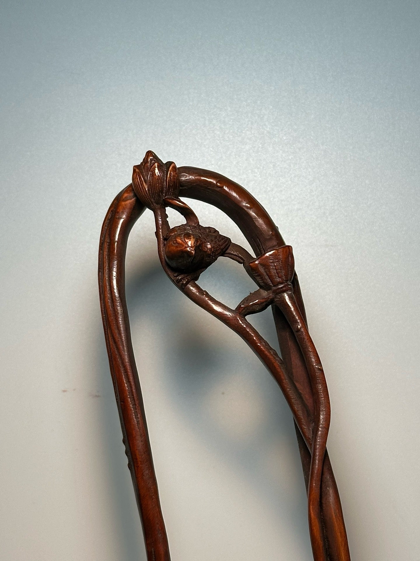 Chinese antique boxwood carving with exquisite craftsmanship, carving a continuous stream of scientific and technological Liang pots
