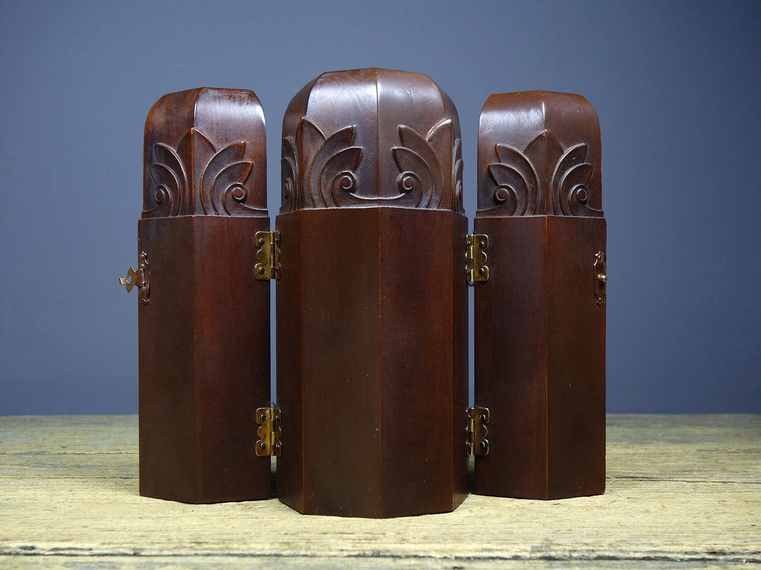 Chinese antique boxwood finely crafted three open Buddhist niches