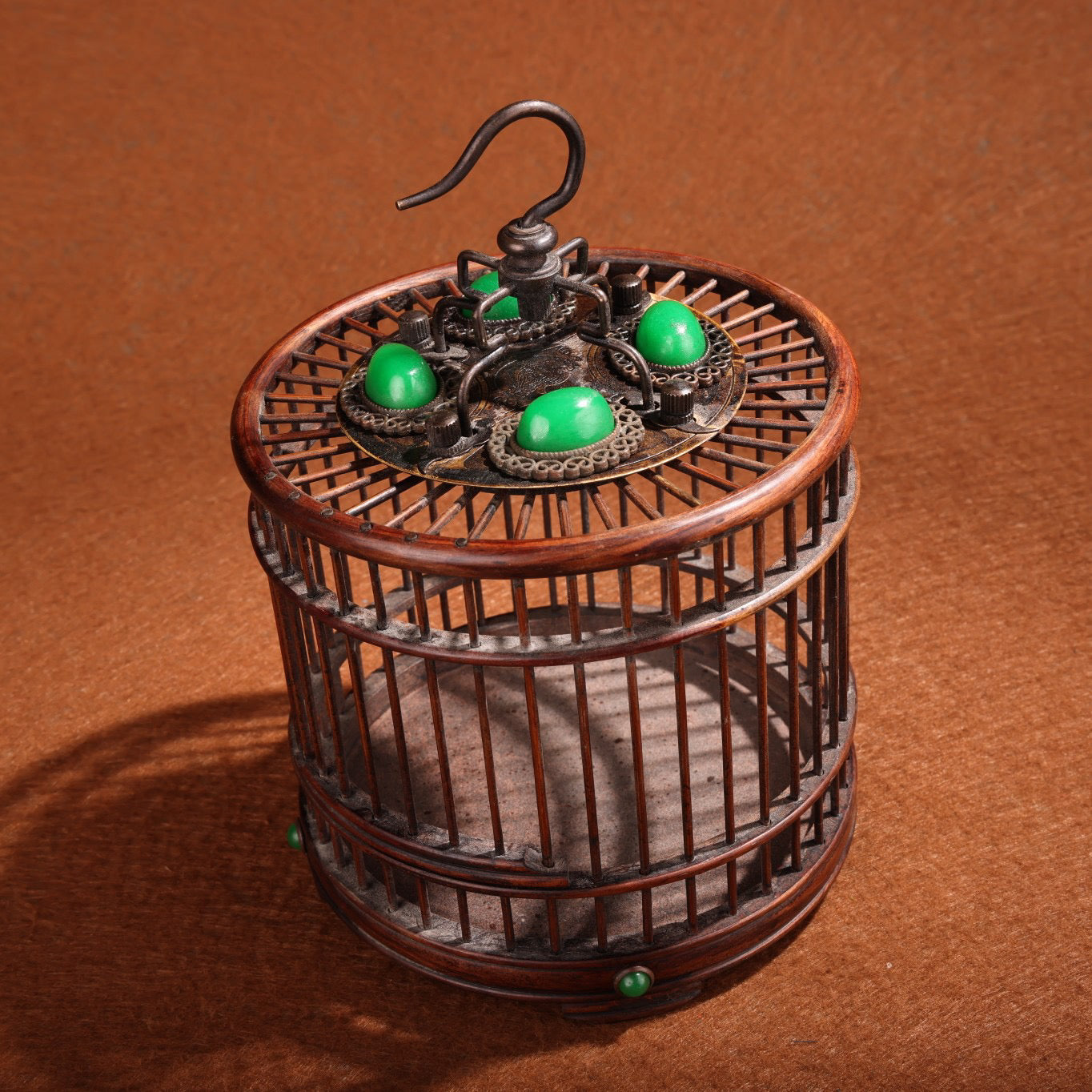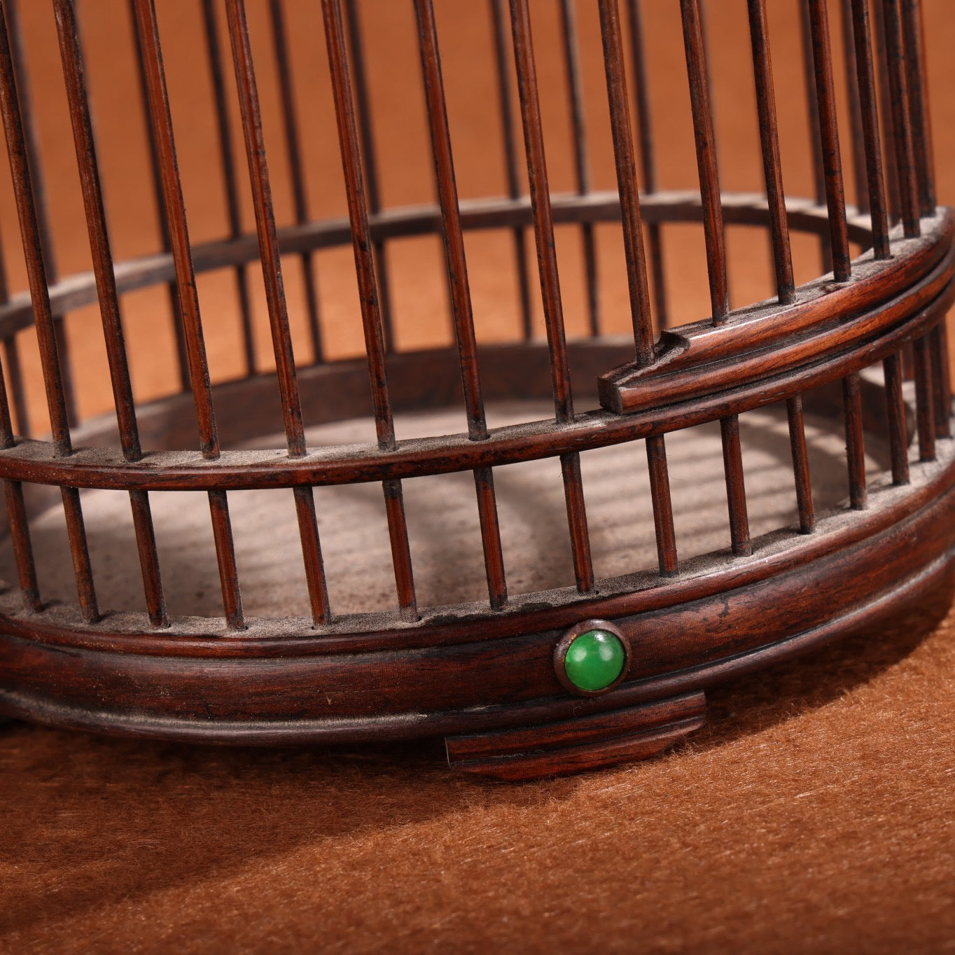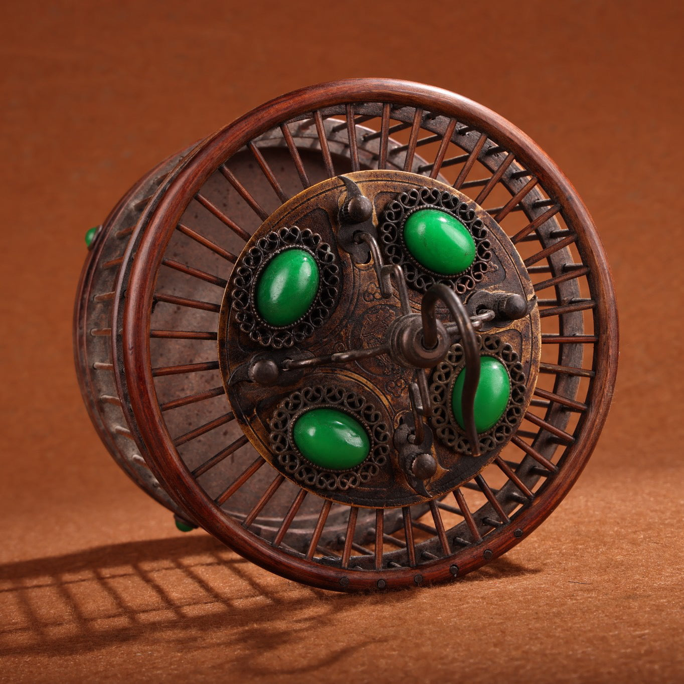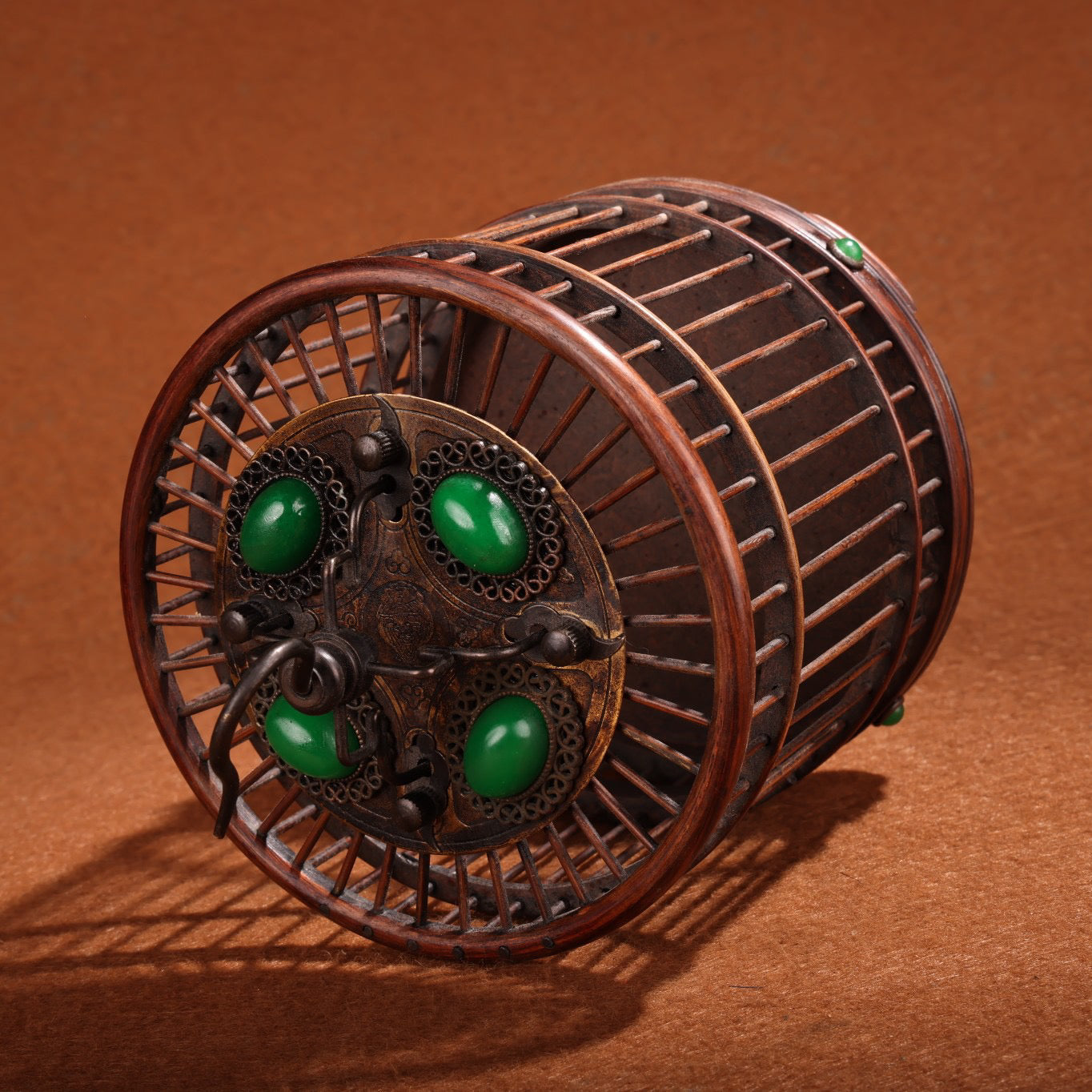 Chinese antique boxwood inlaid with gemstones and small cricket jars