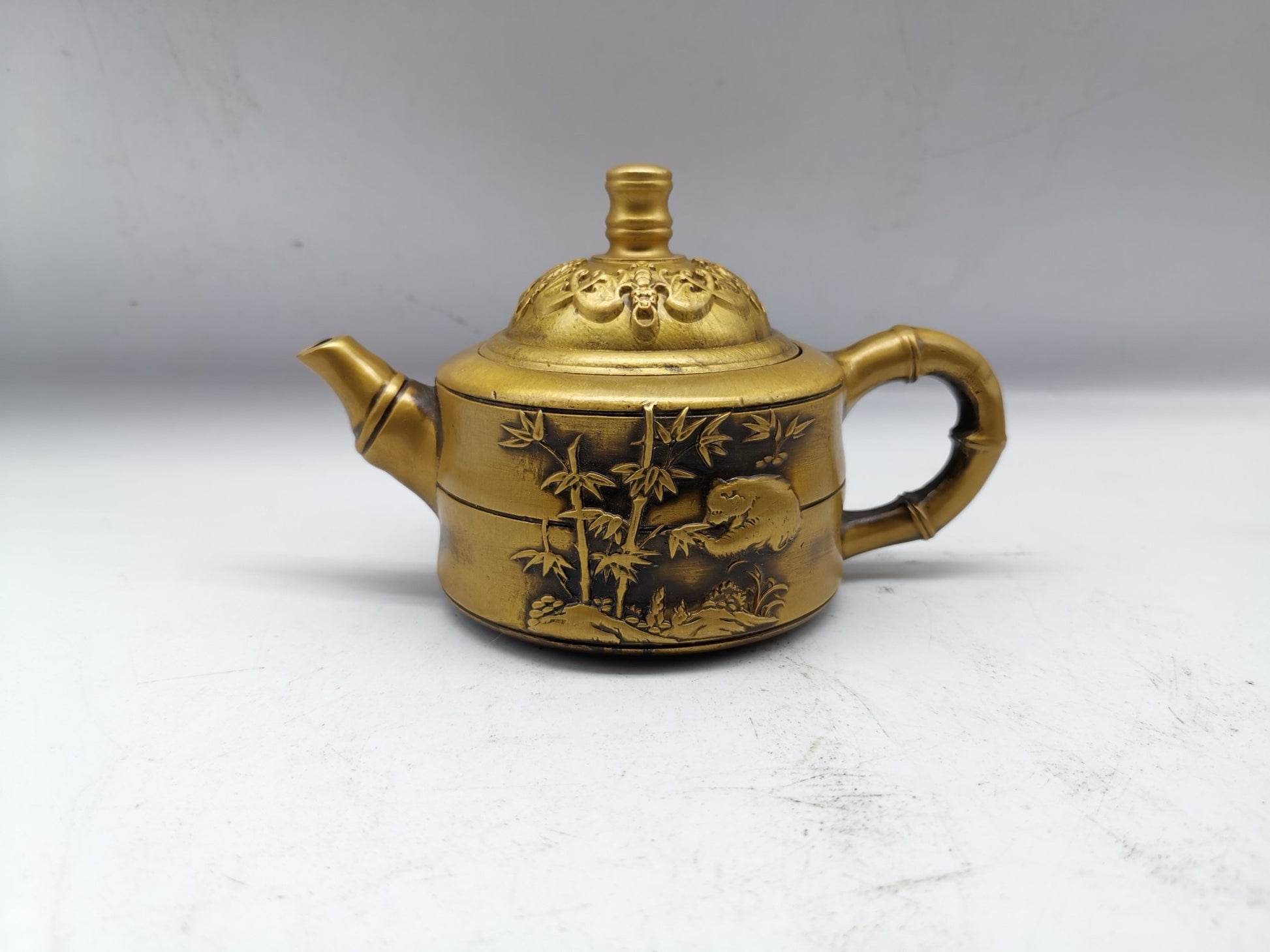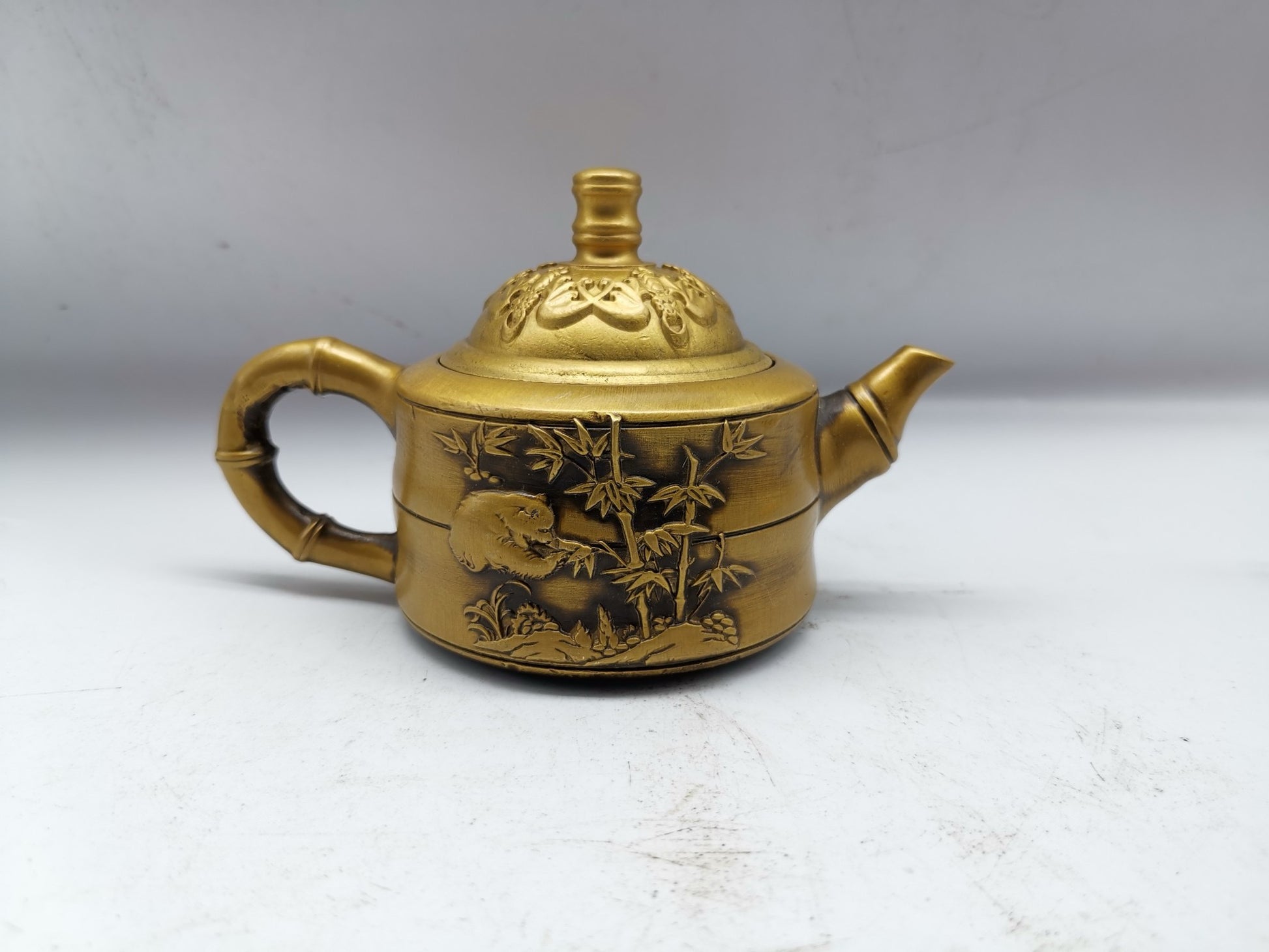 Chinese antique brass bamboo bear cat pot