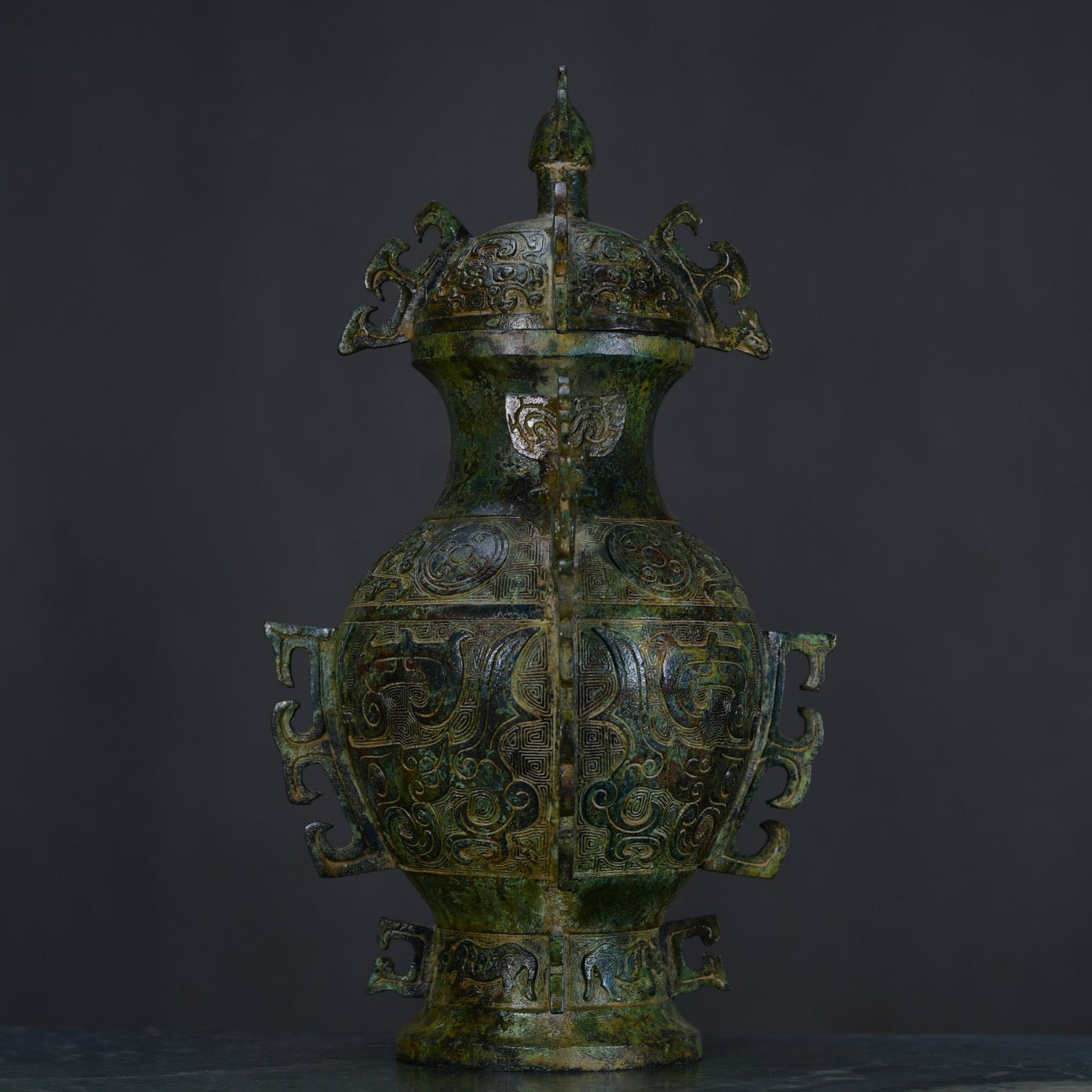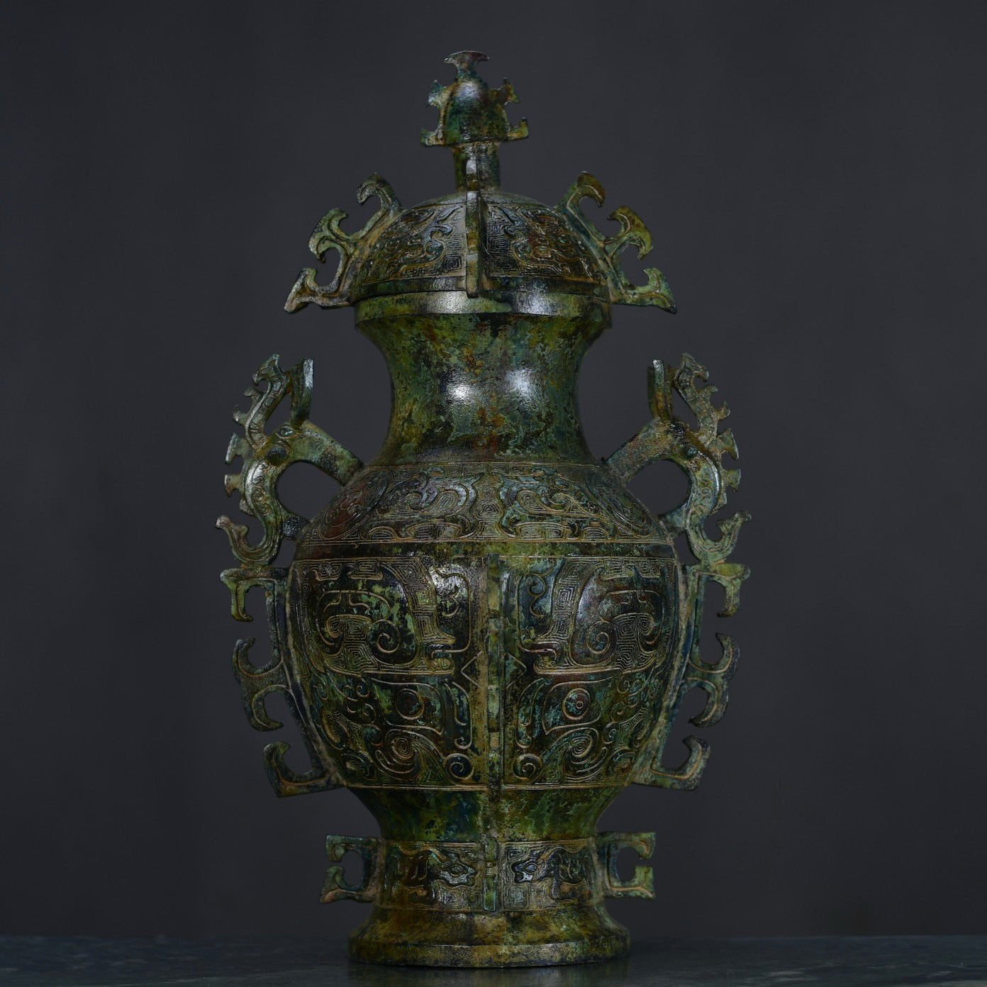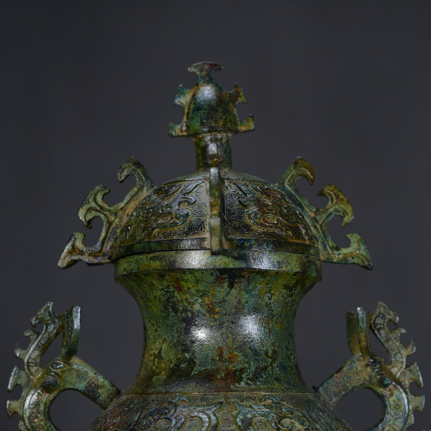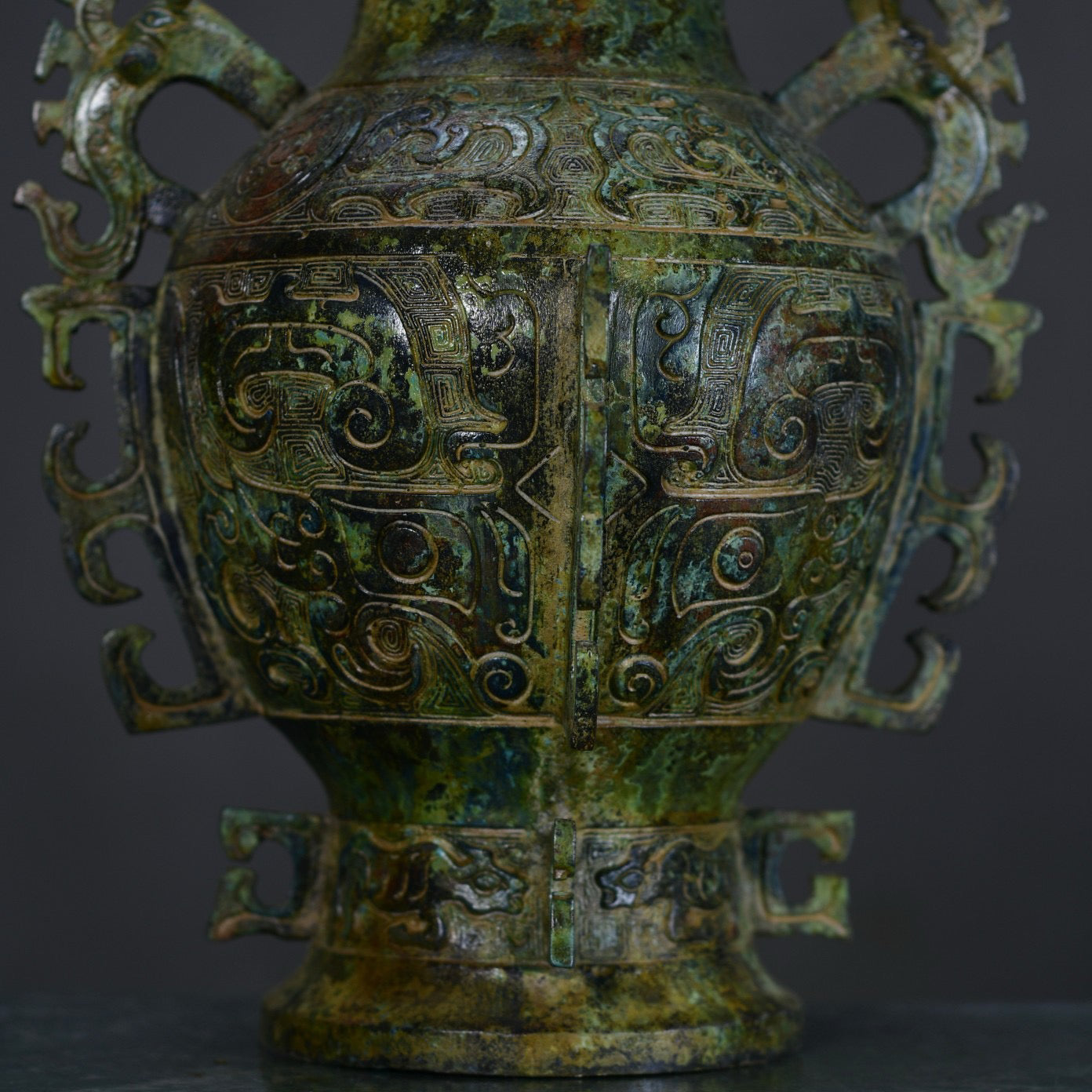 Chinese Antique Bronze Beast Face Elephant Head Lei