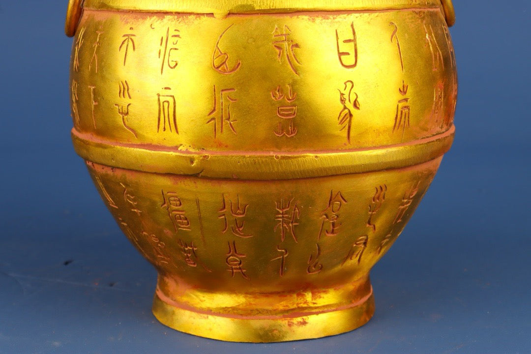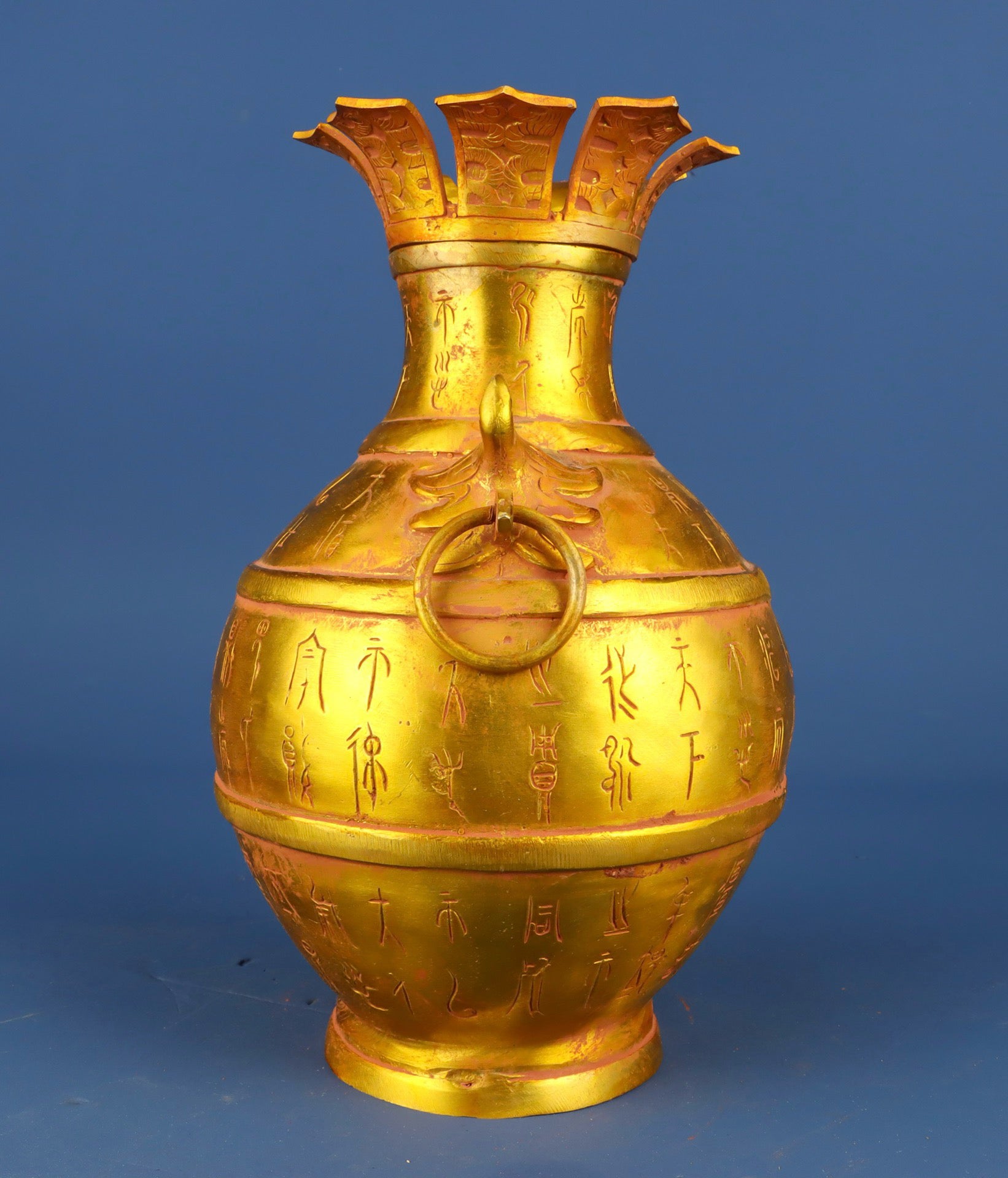 Chinese Antique Bronze Gilded Inscription Round Bottle