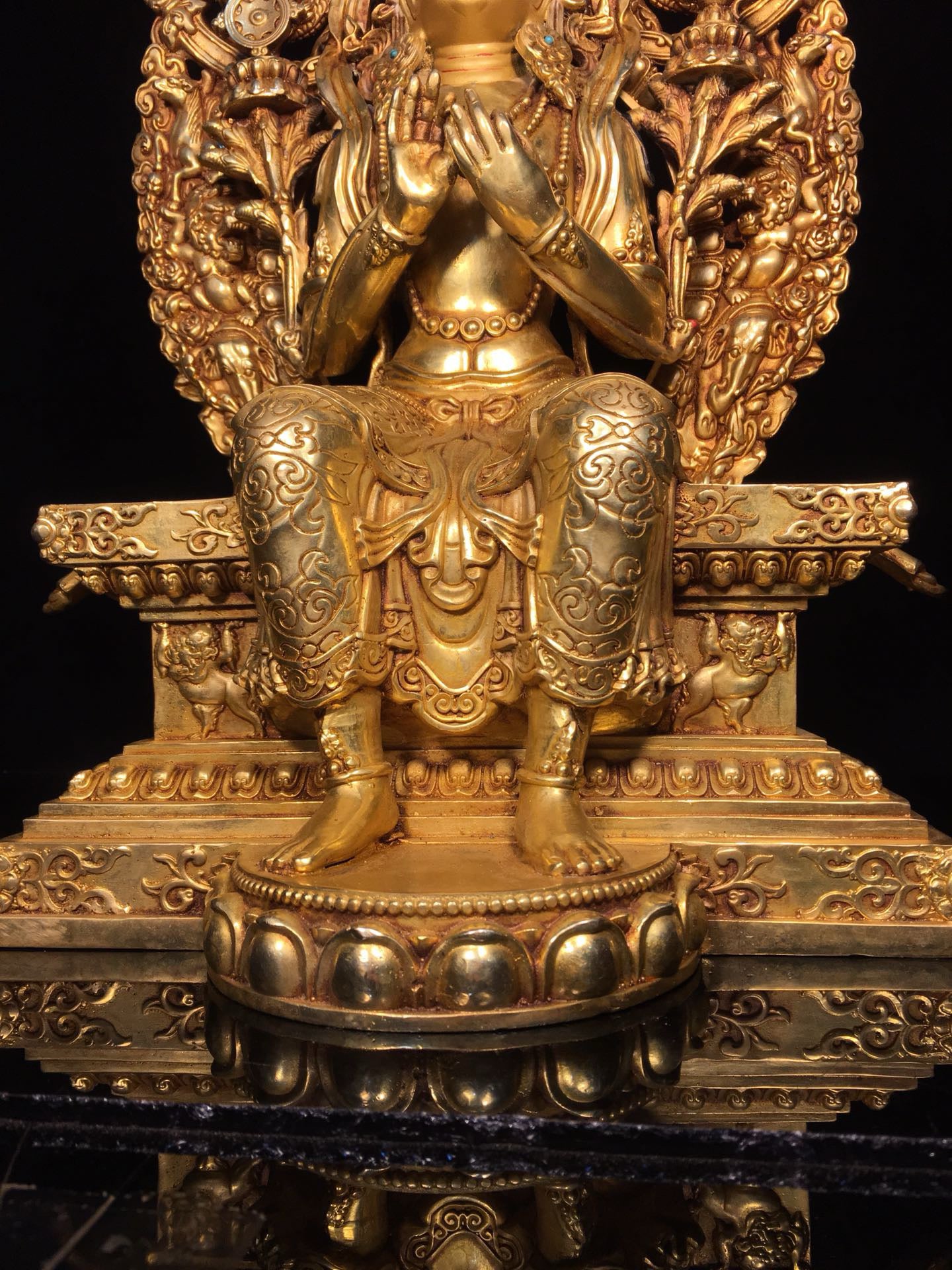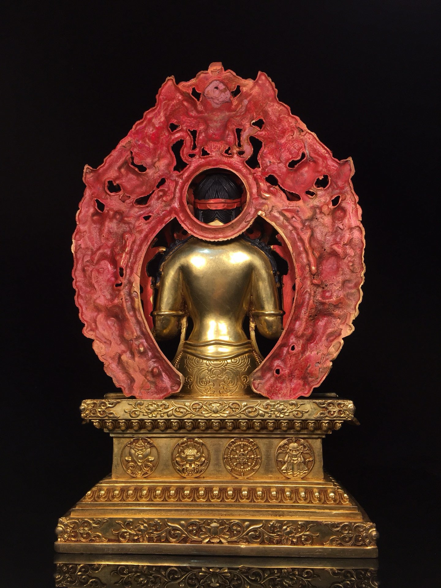 Chinese antique bronze gilded painted face with a strong Buddha statue