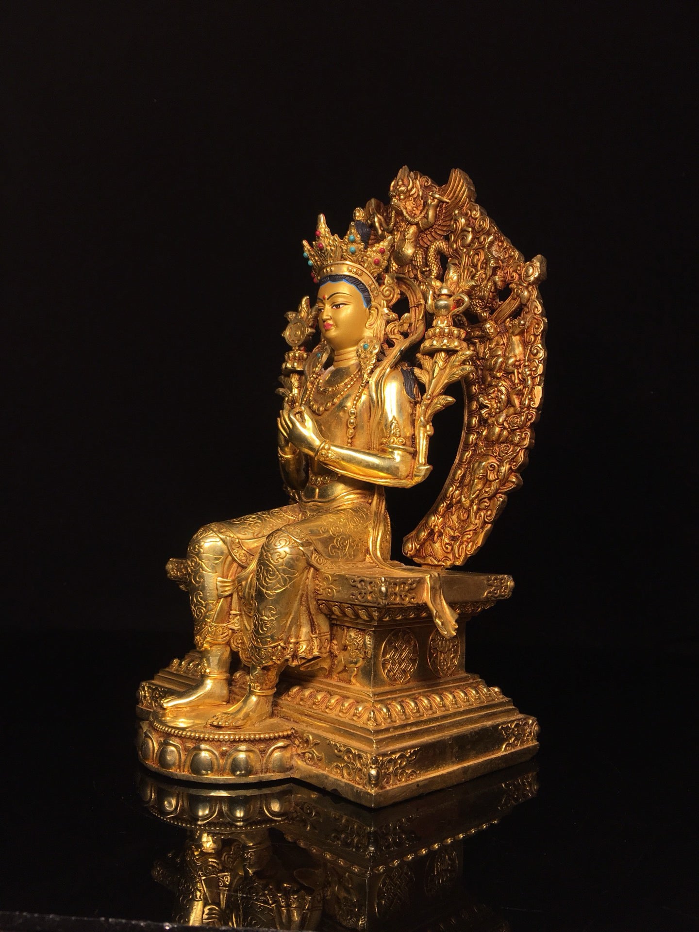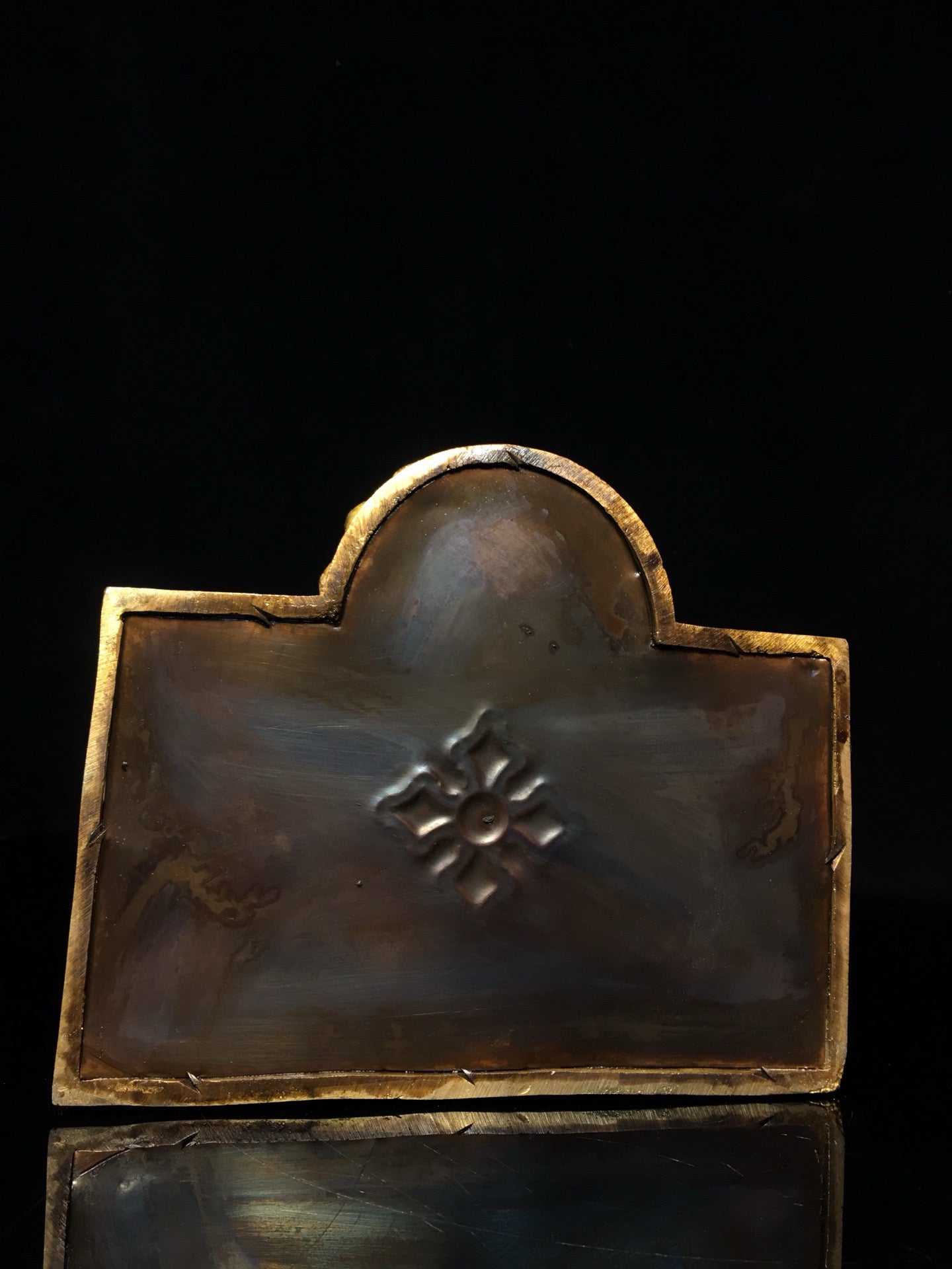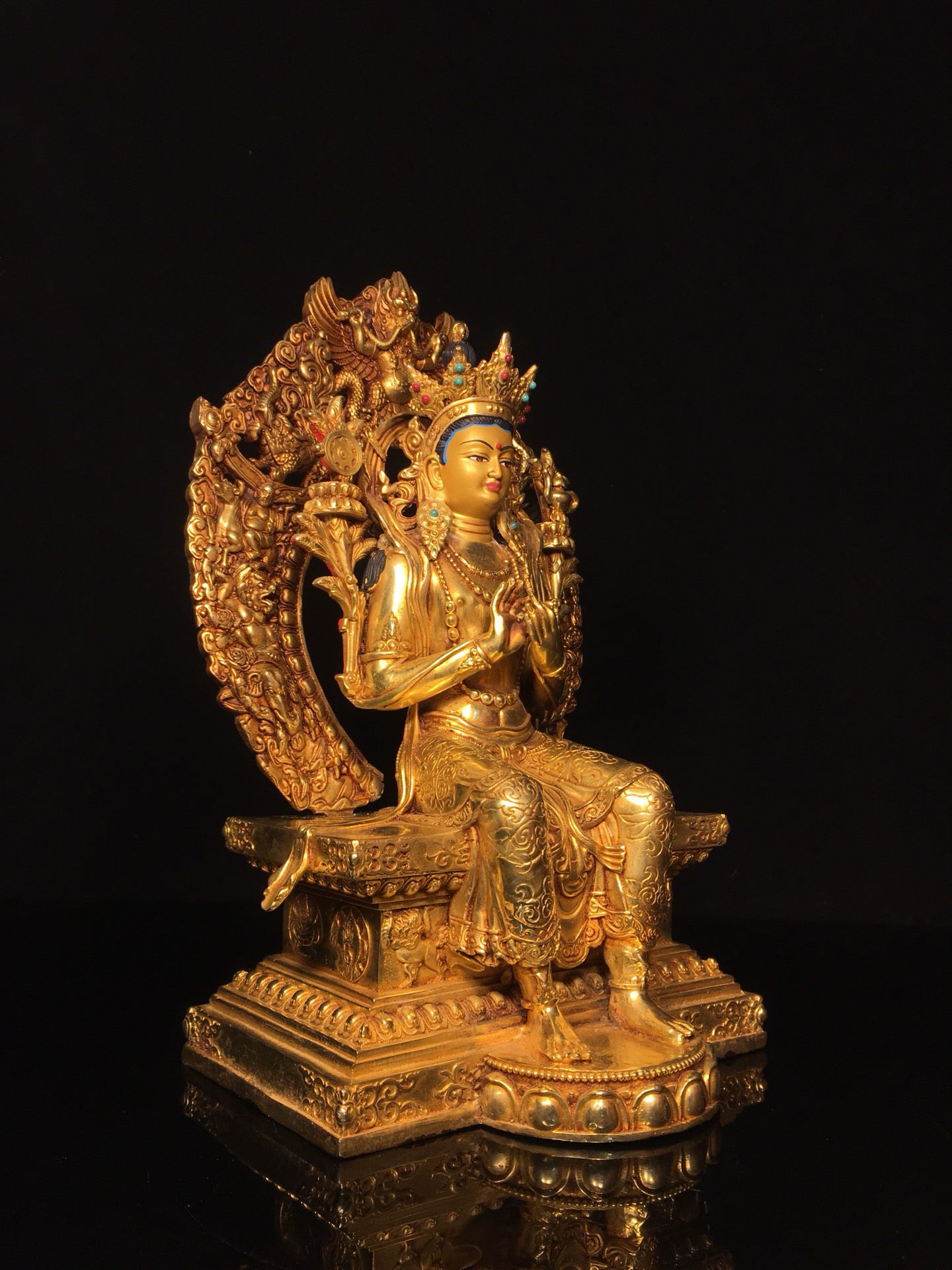 Chinese antique bronze gilded painted face with a strong Buddha statue (small size)