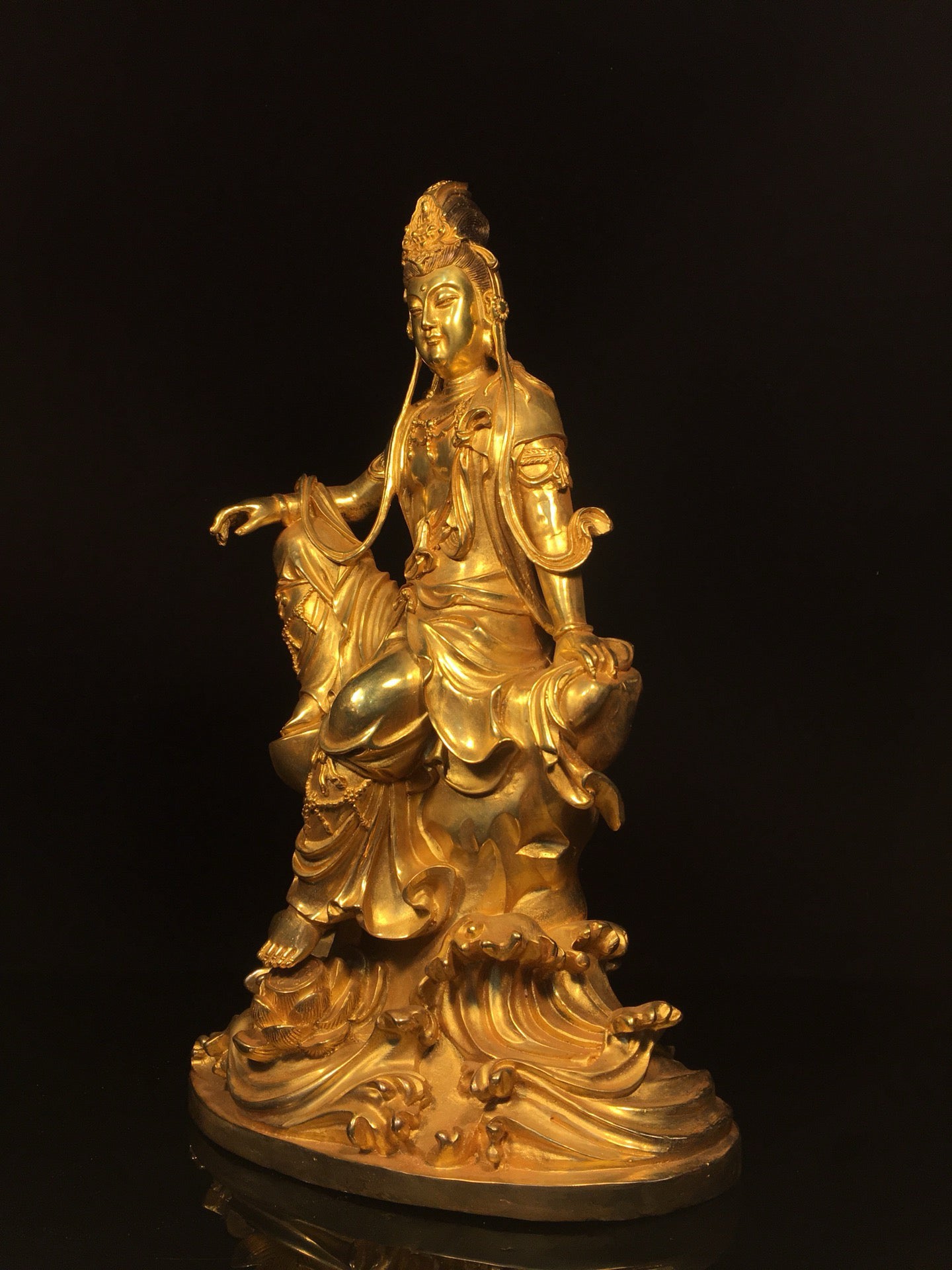 Chinese antique bronze gilded statue of Avalokitesvara Bodhisattva in freedom