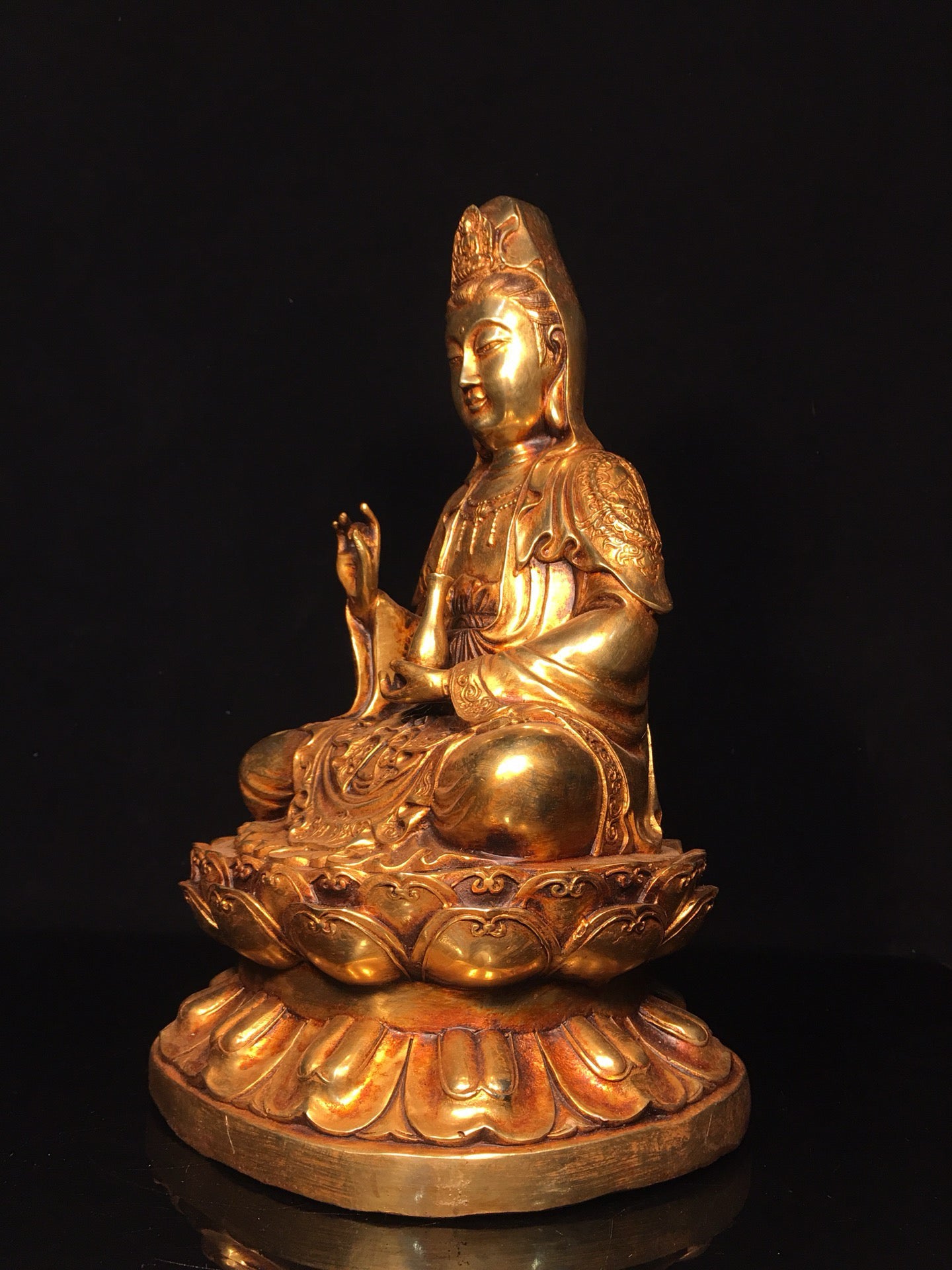 Chinese antique bronze gilded statue of Guanyin Bodhisattva