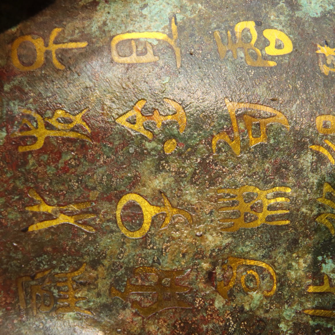Chinese Antique Bronze - Inscription with gold inlaid hollow long tailed bird statue