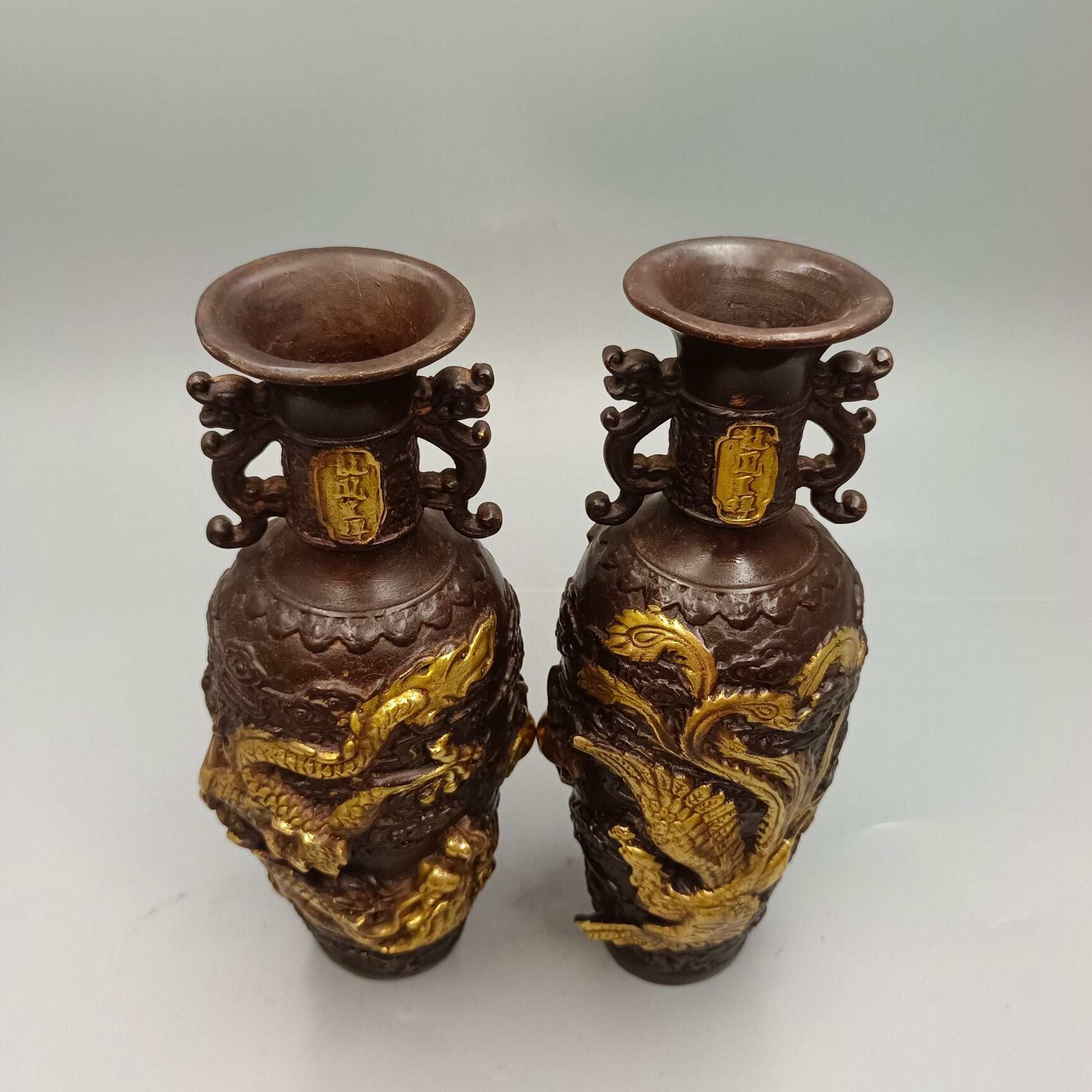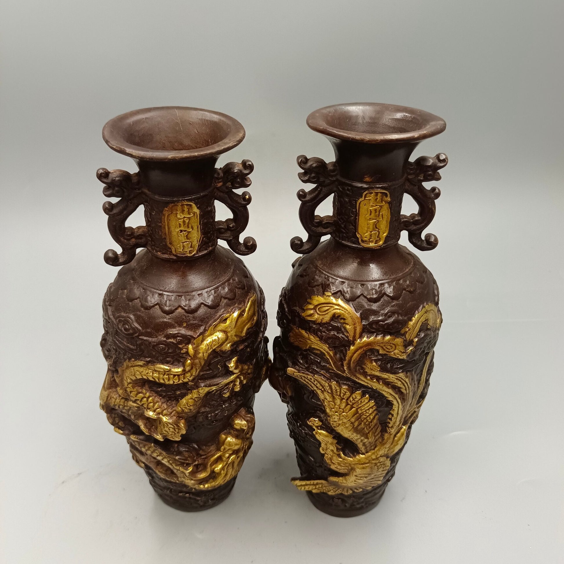 Chinese Antique Bronze Vase with Dragon and Phoenix Auspiciousness