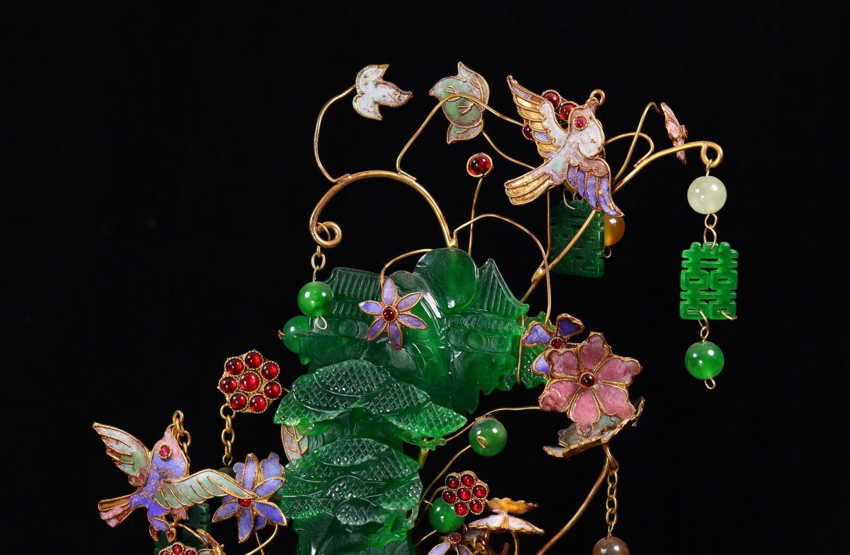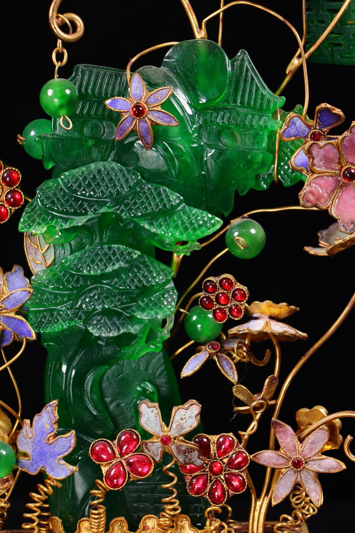 Chinese antique handmade filigree gold-plated inlaid jade landscape ornaments