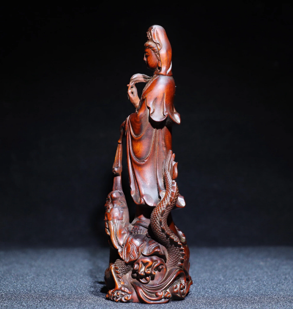 Collection of antique Chinese boxwood dragon Guanyin statues