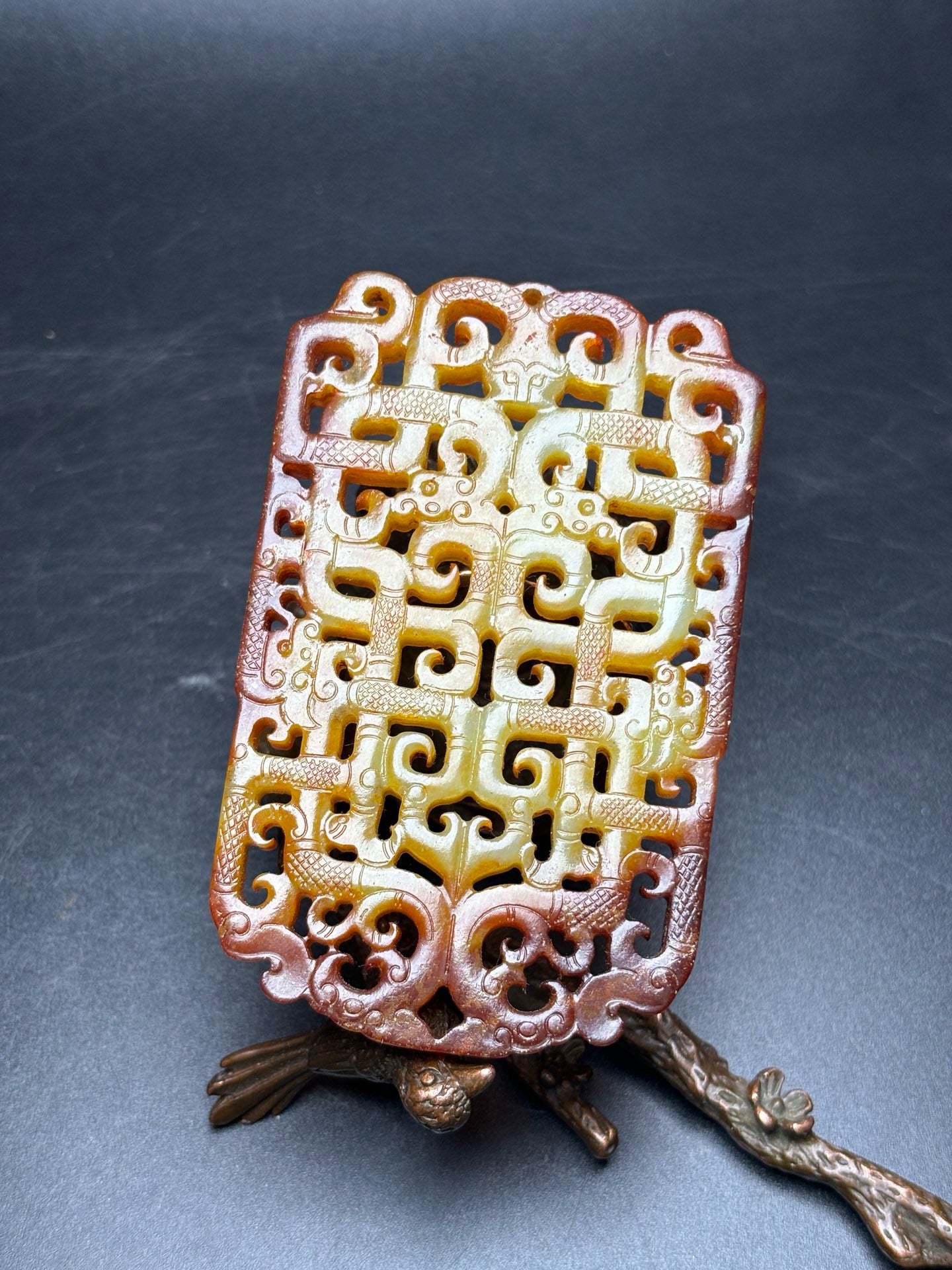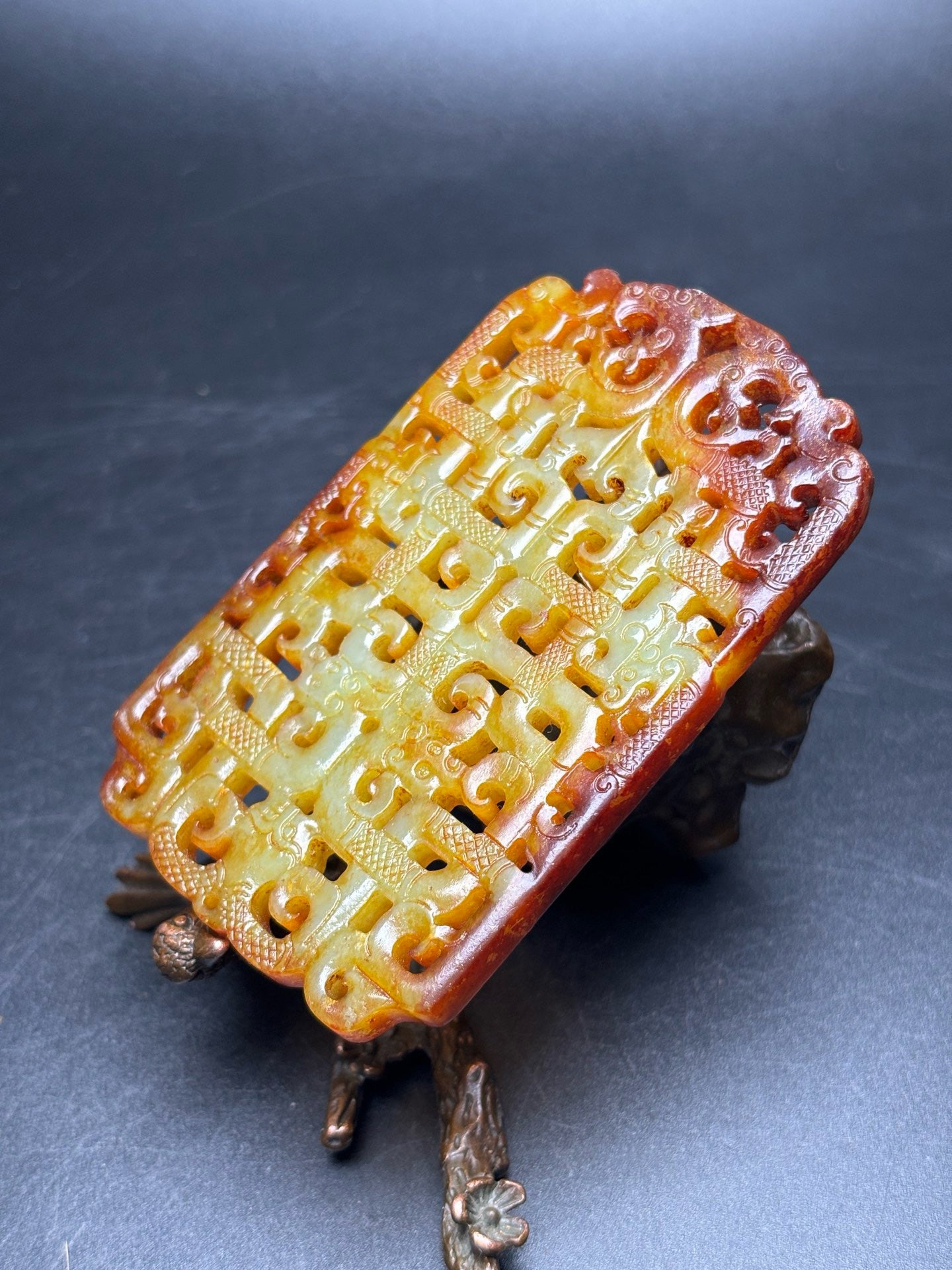 Exquisite Hetian Jade Five Dragon and Phoenix Pendant