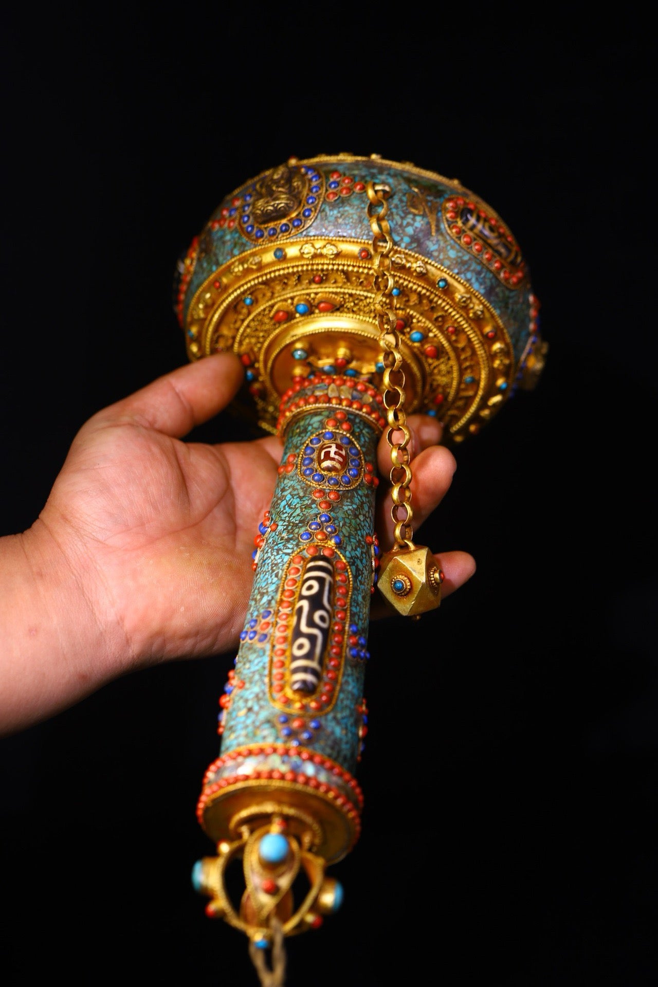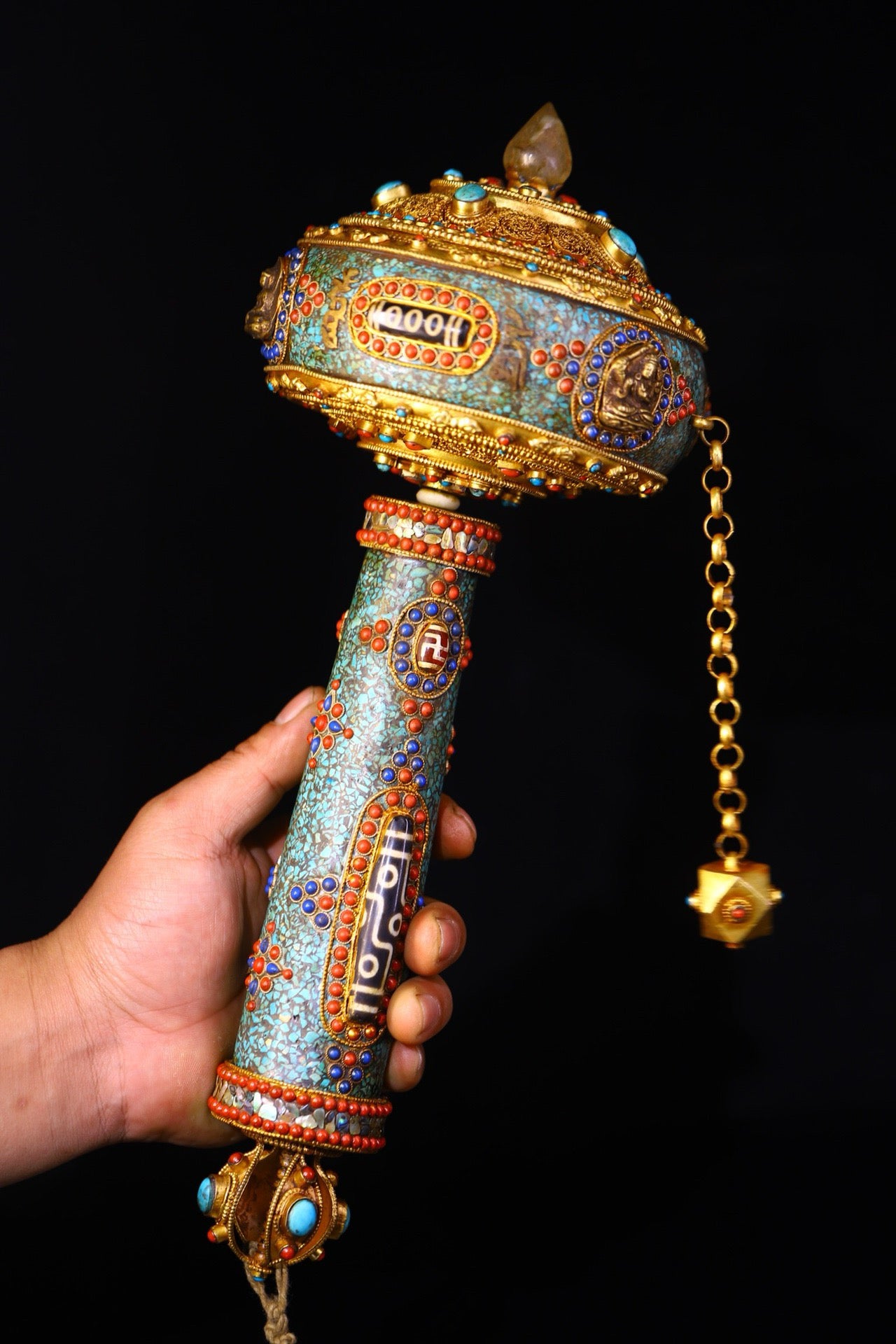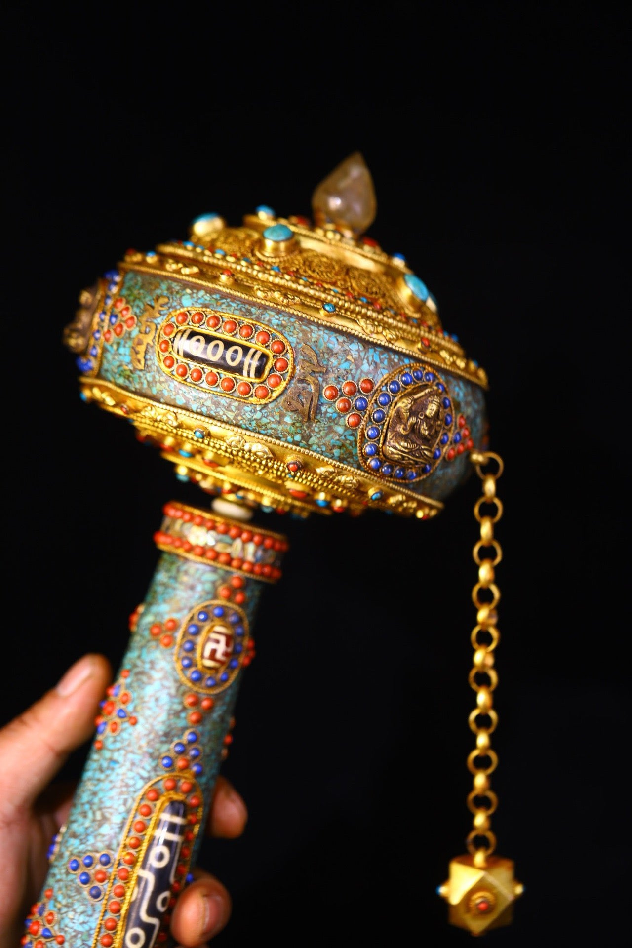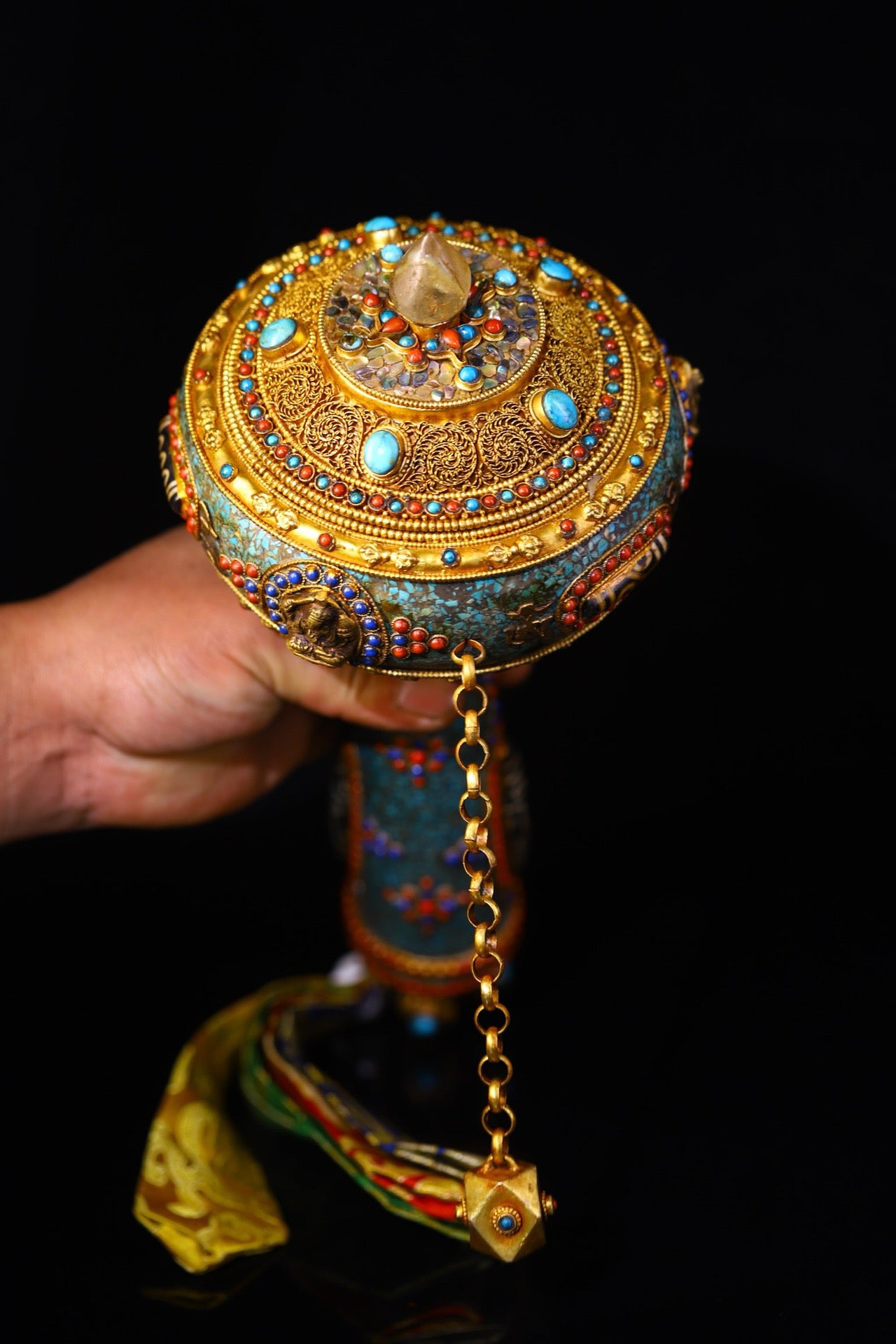Silver handmade inlay, crystal, celestial beads handmade filigree, gold-plated spinning wheel