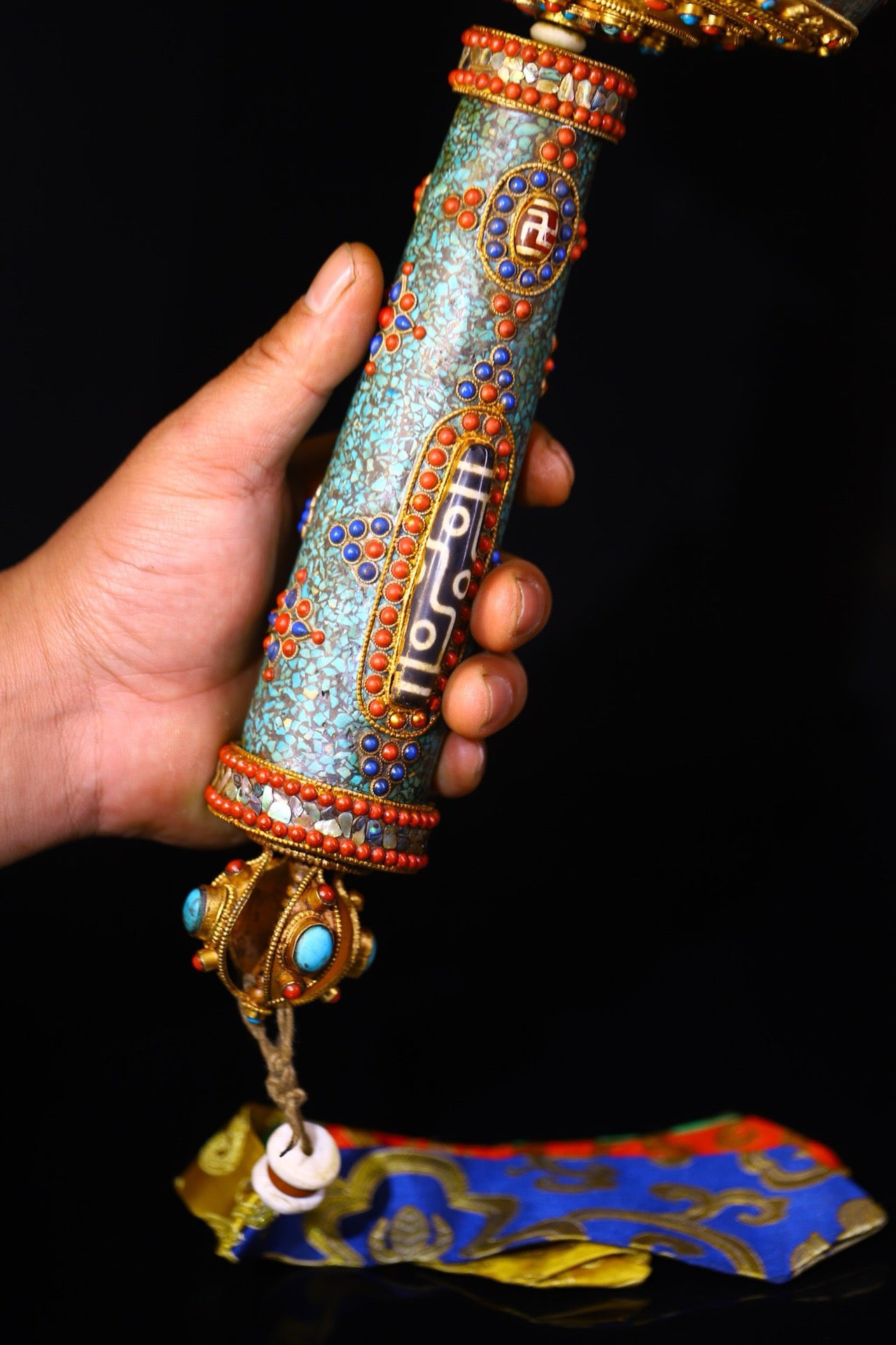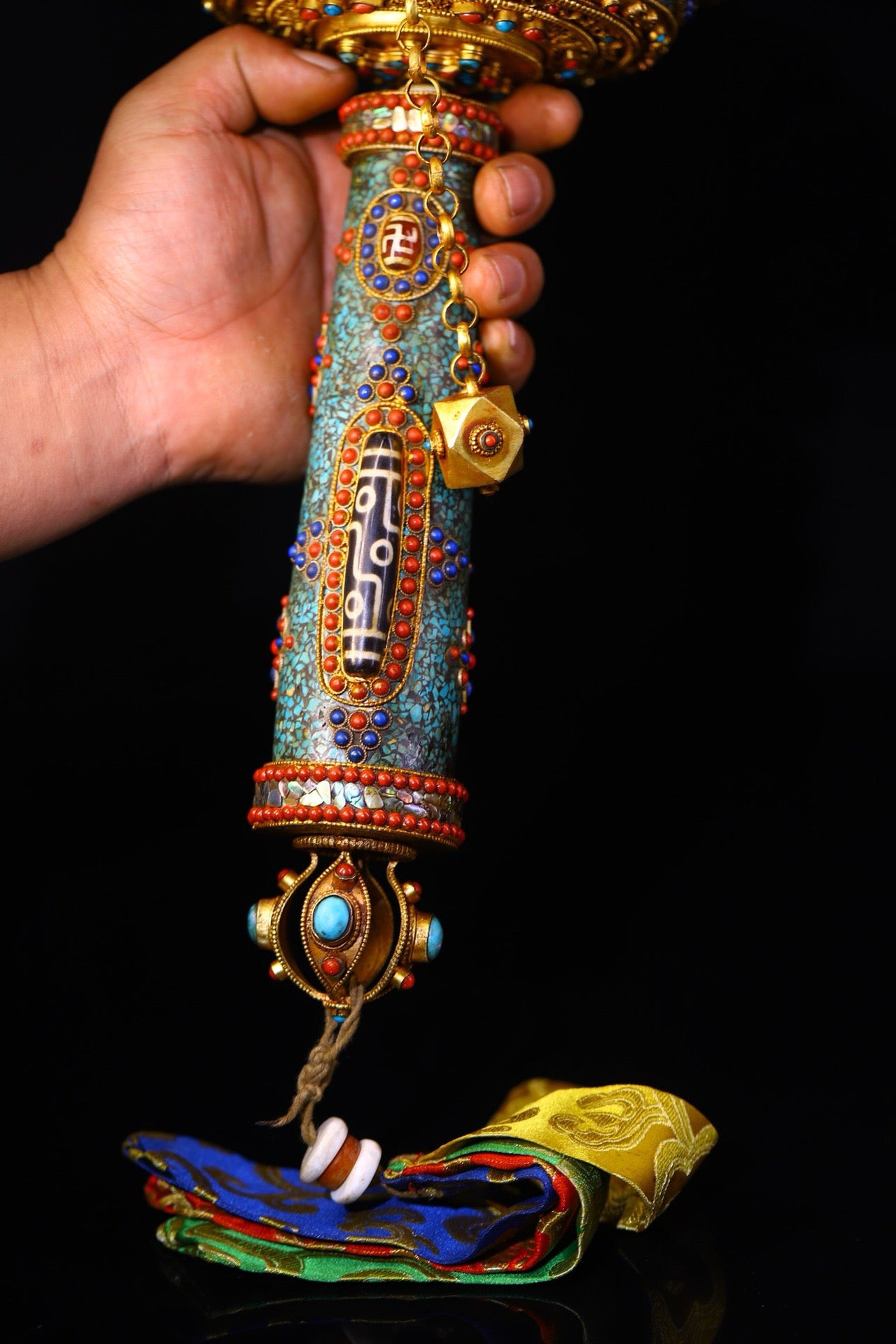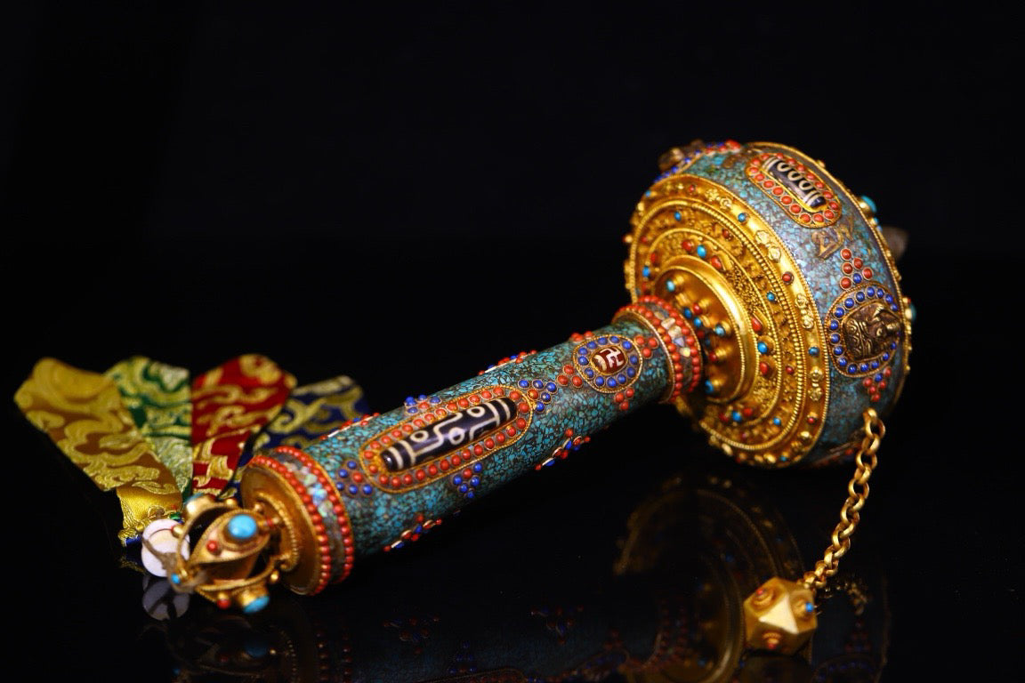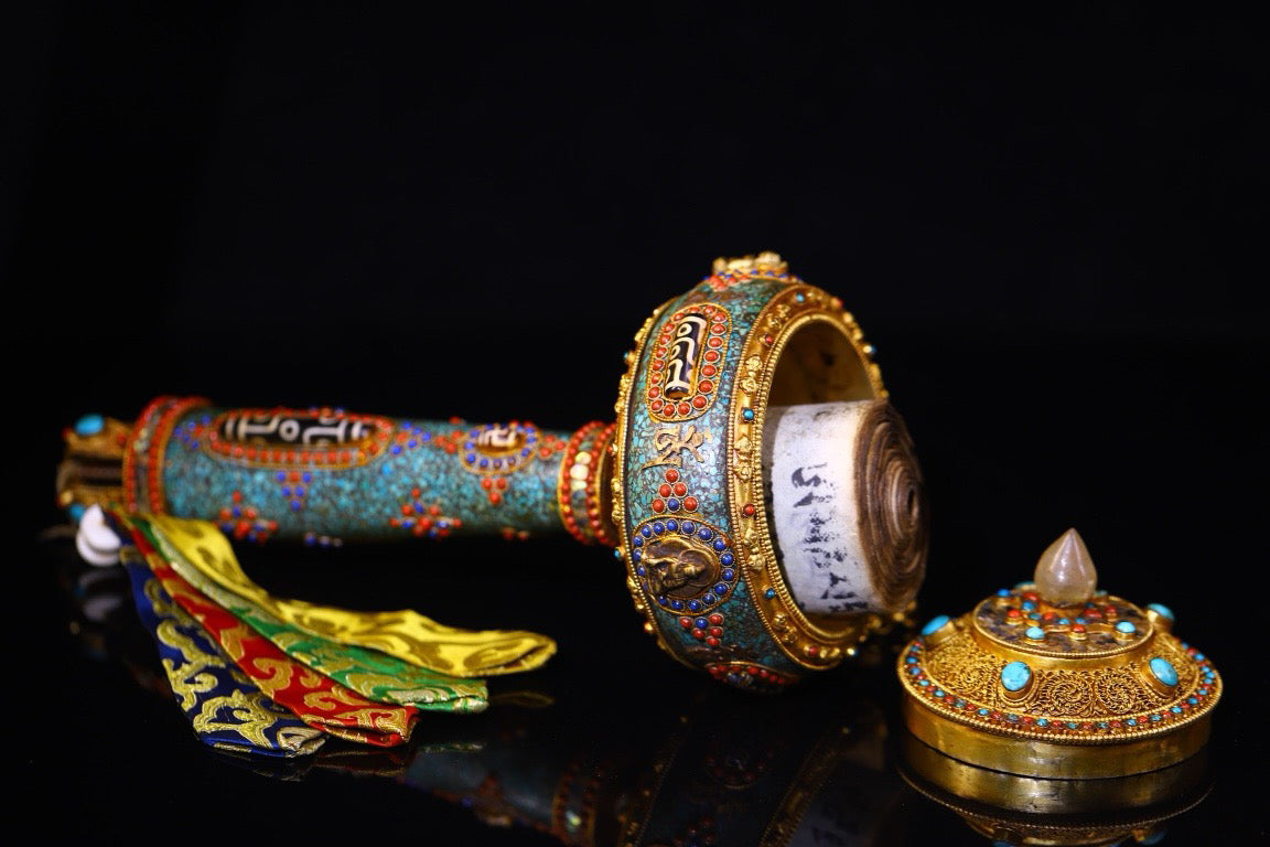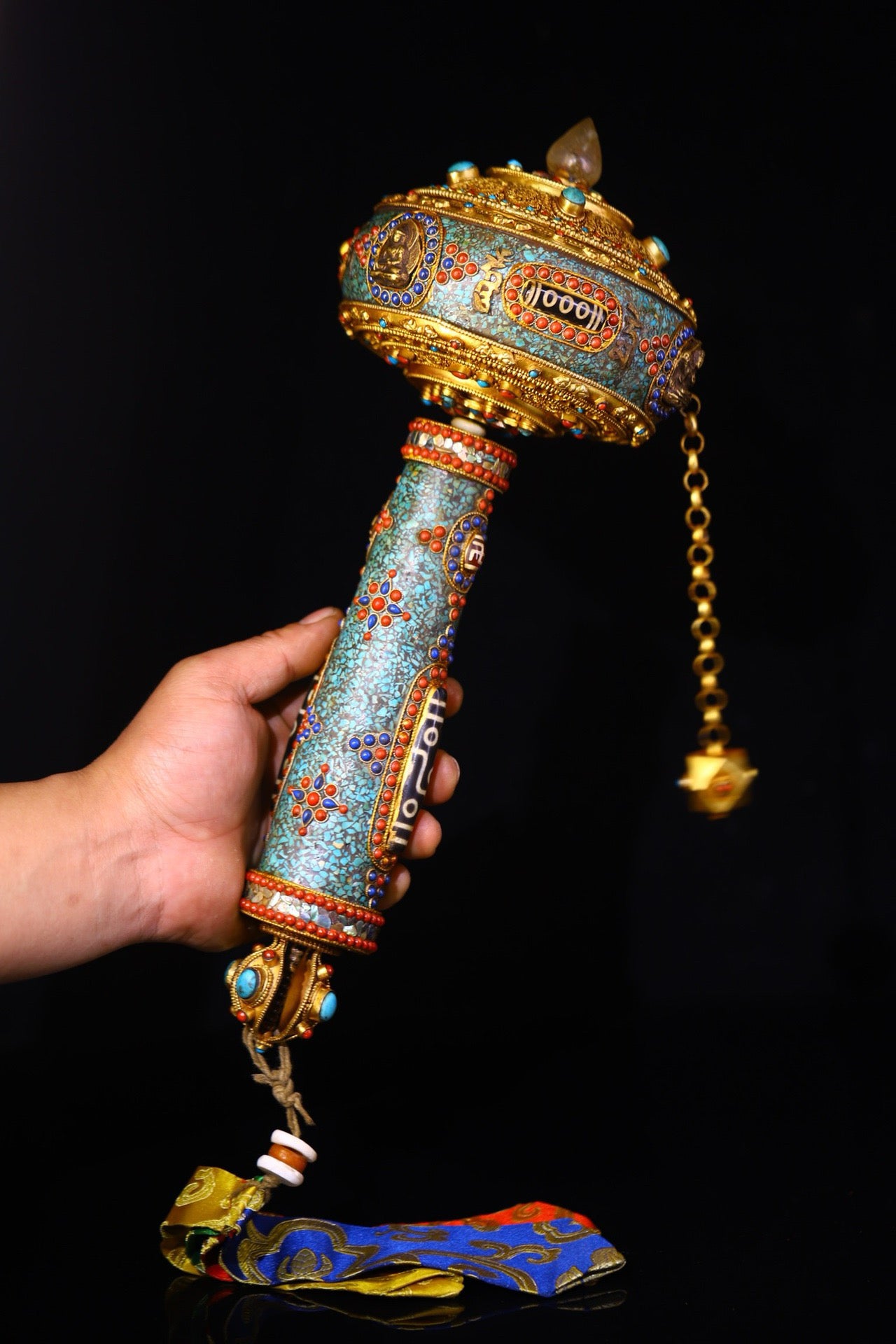 Silver handmade inlay, crystal, celestial beads handmade filigree, gold-plated spinning wheel
