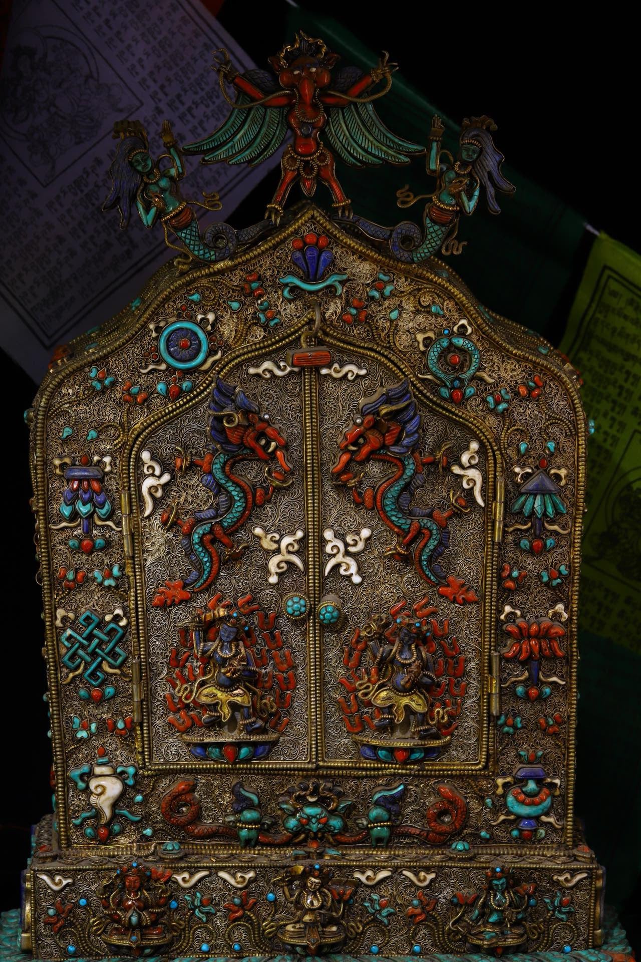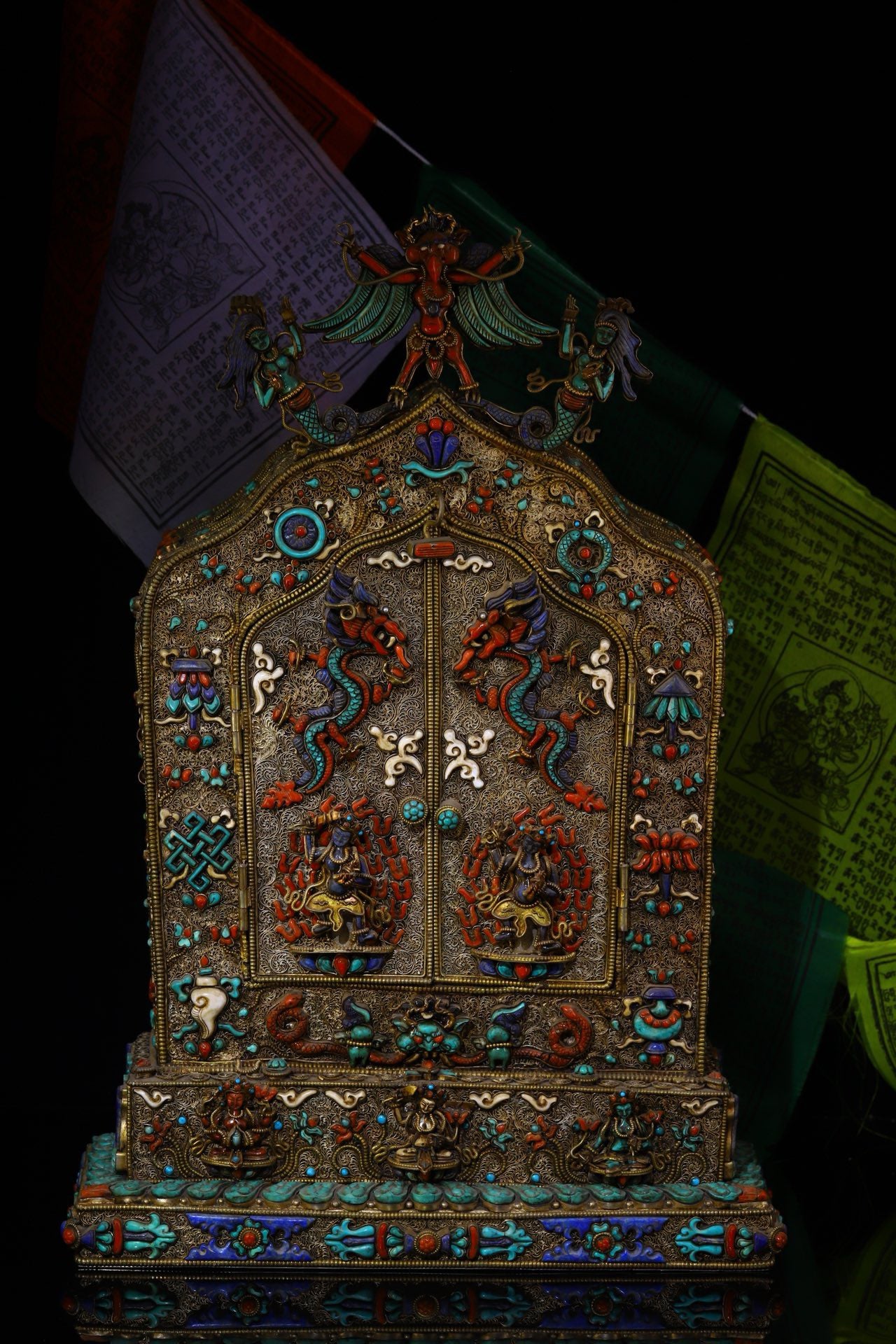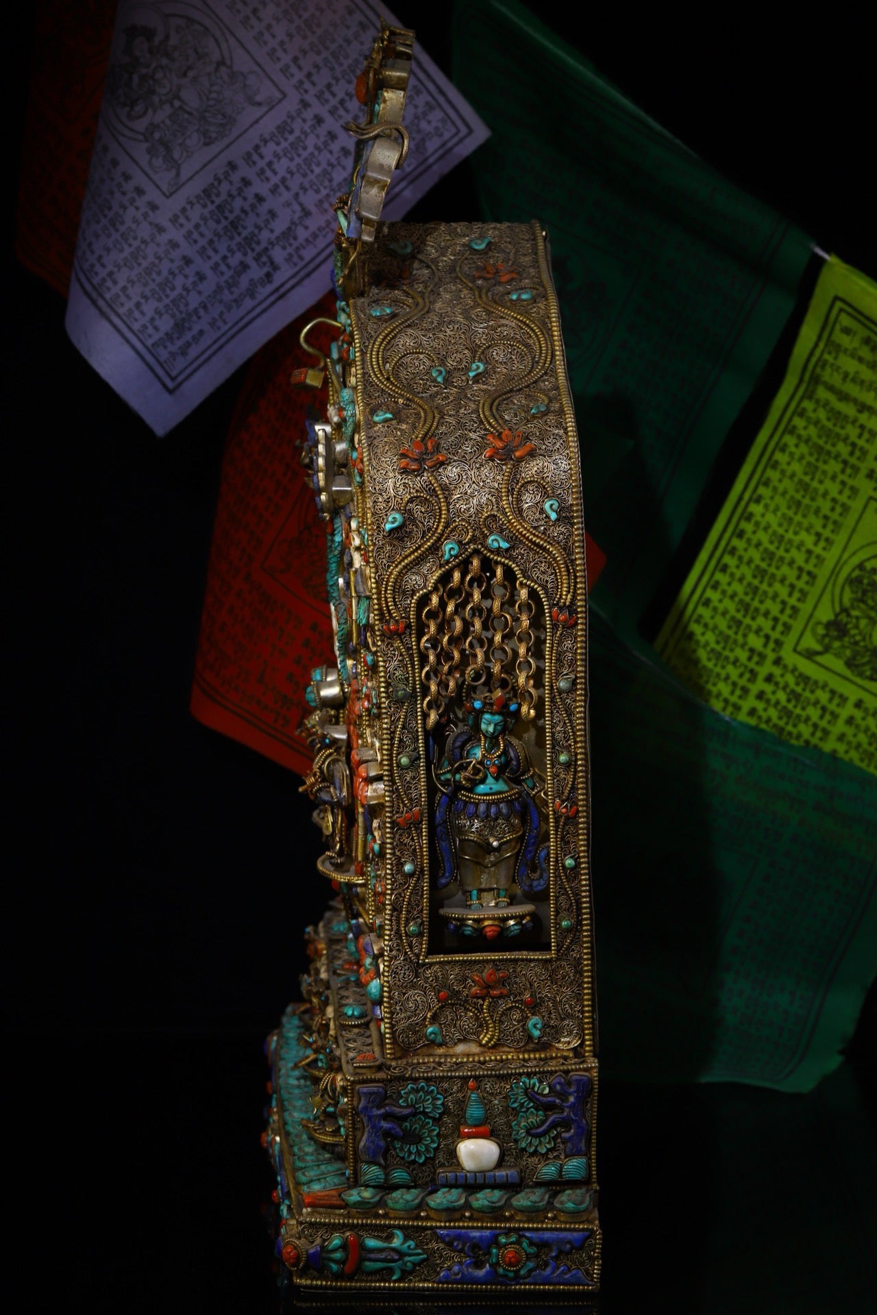 Silver handmade tapping, carving, inlaying gemstones, Buddha niches