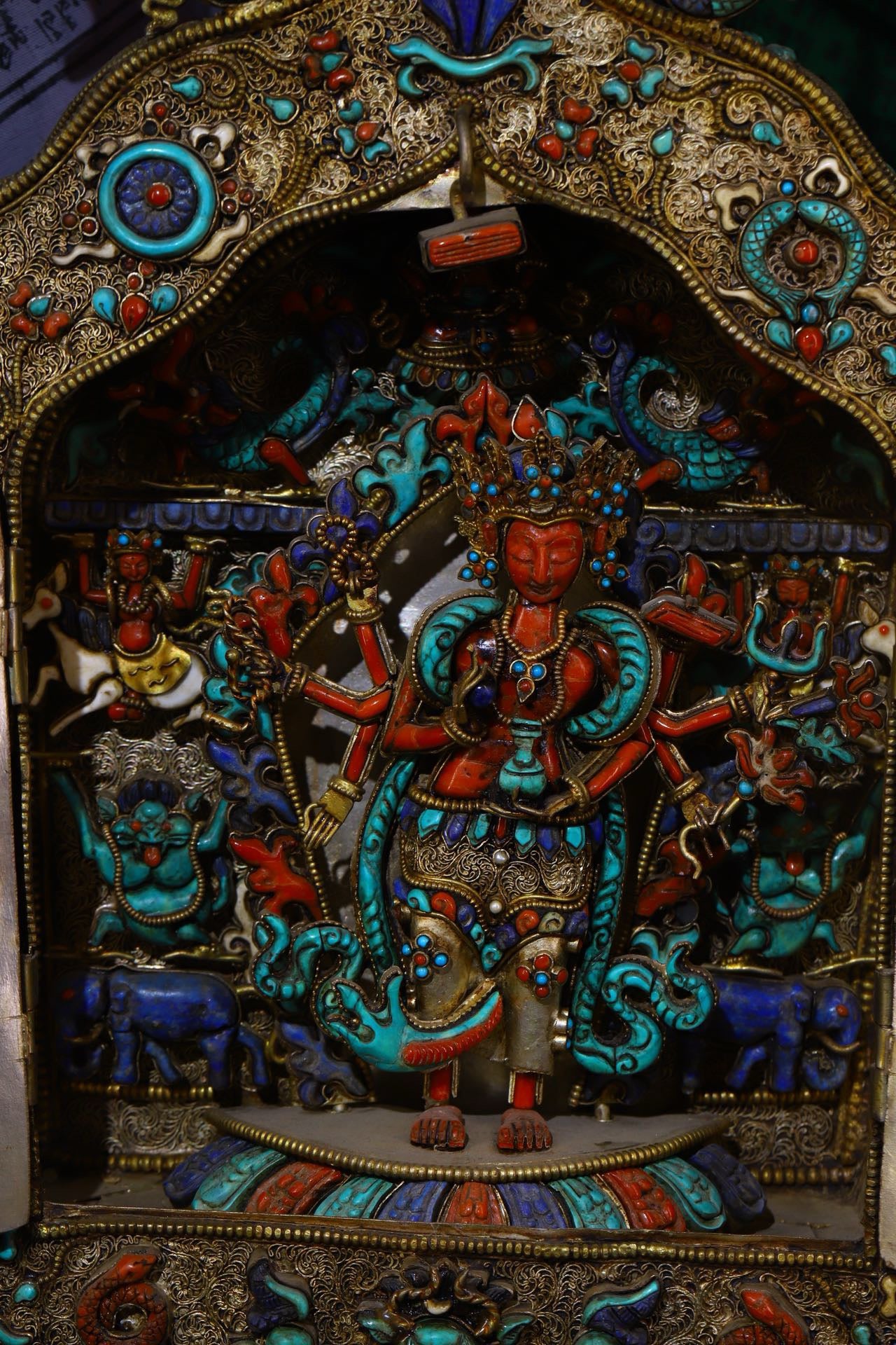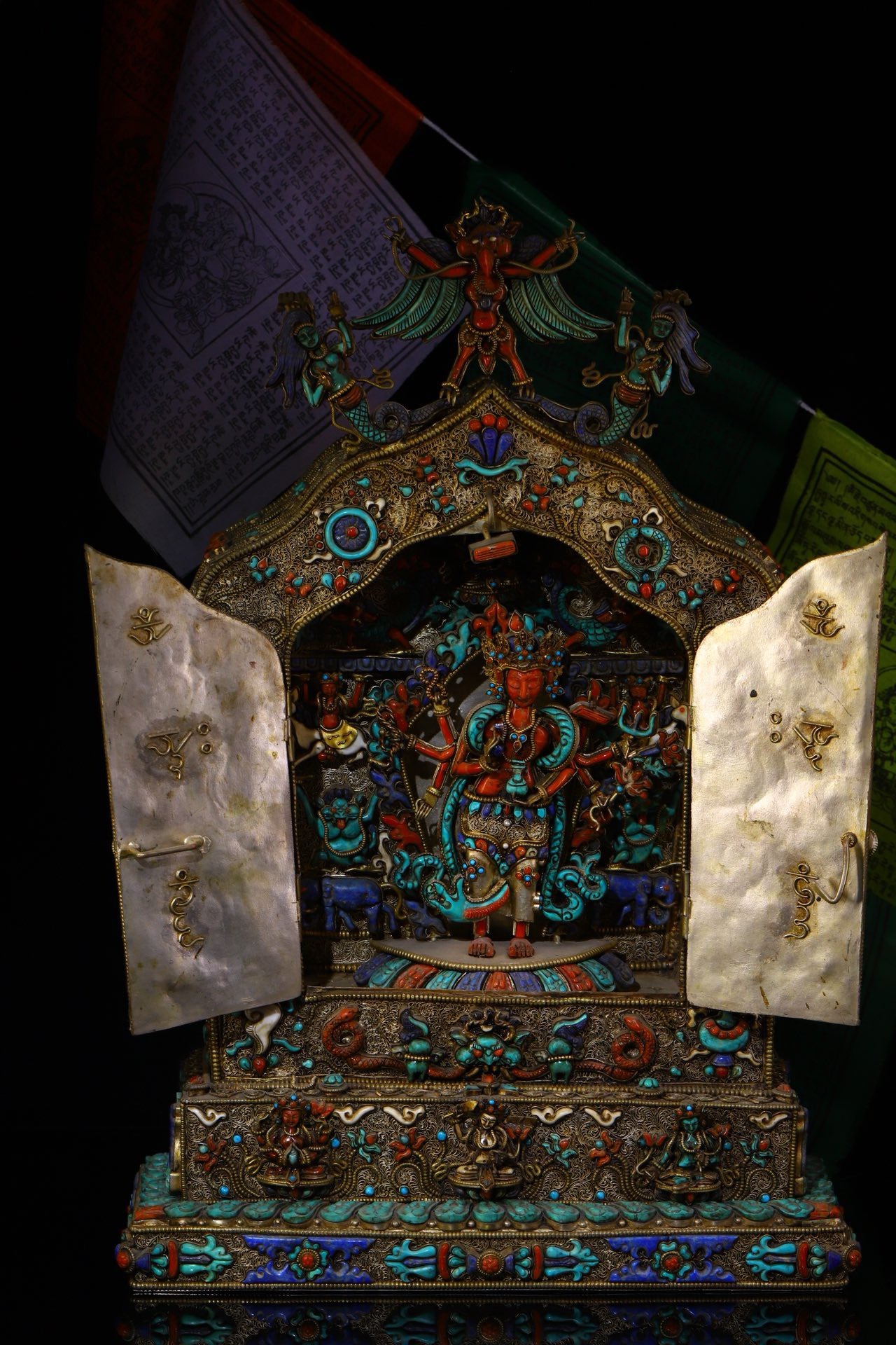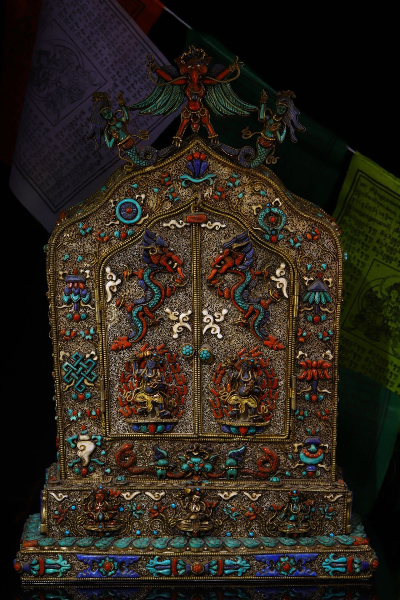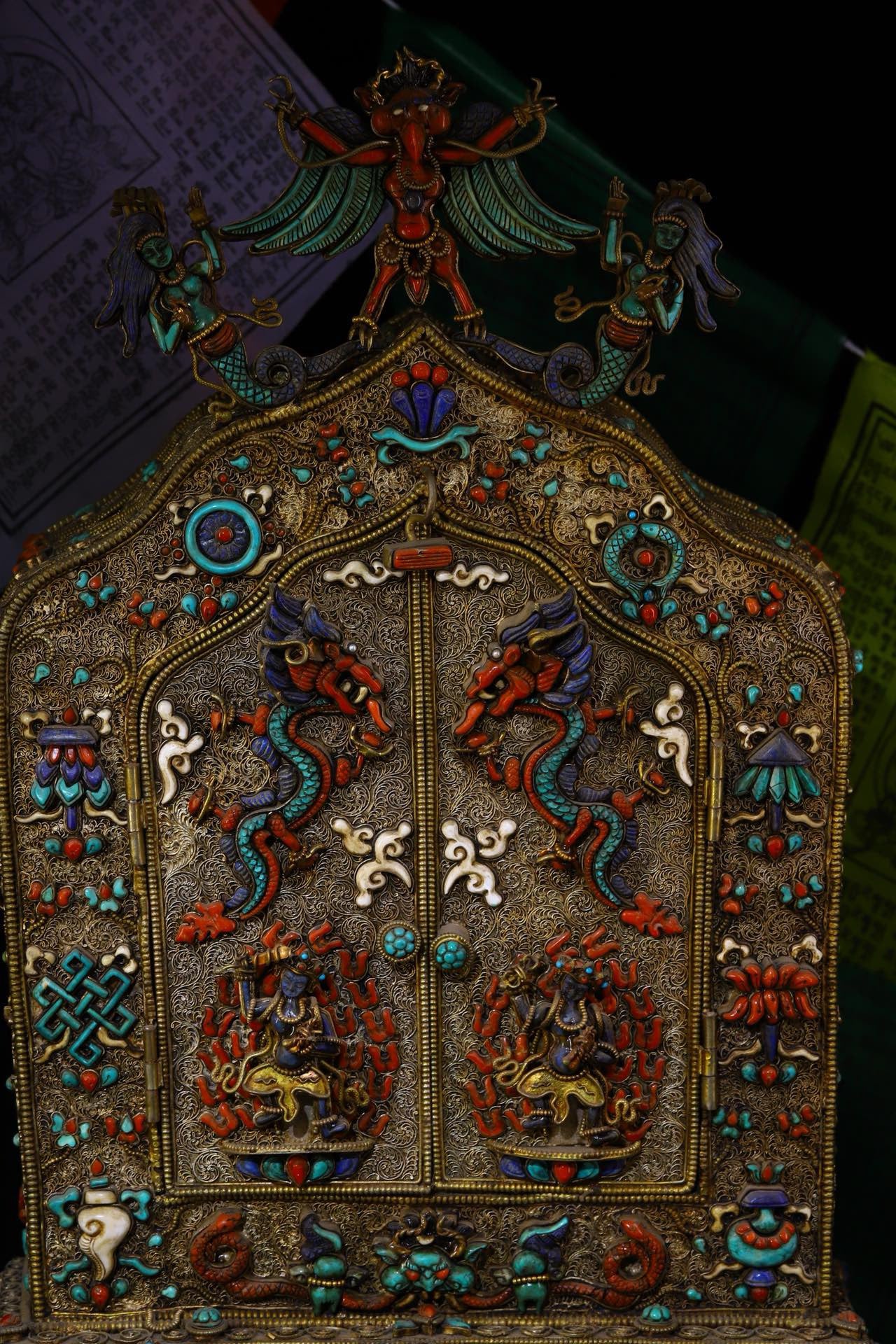 Silver handmade tapping, carving, inlaying gemstones, Buddha niches
