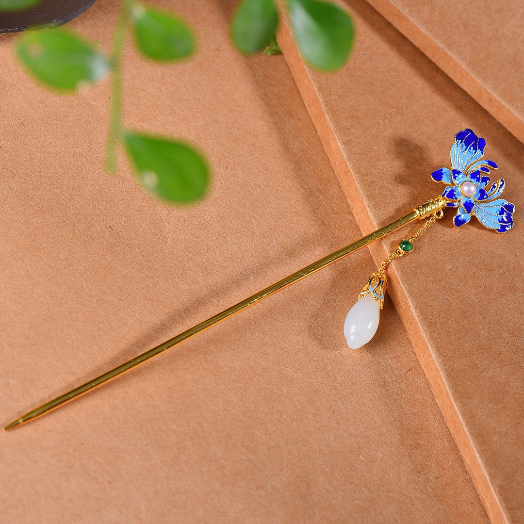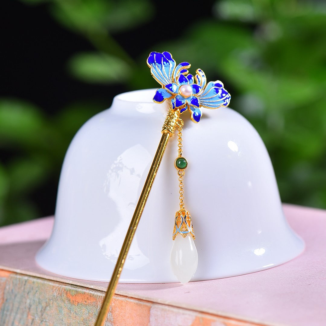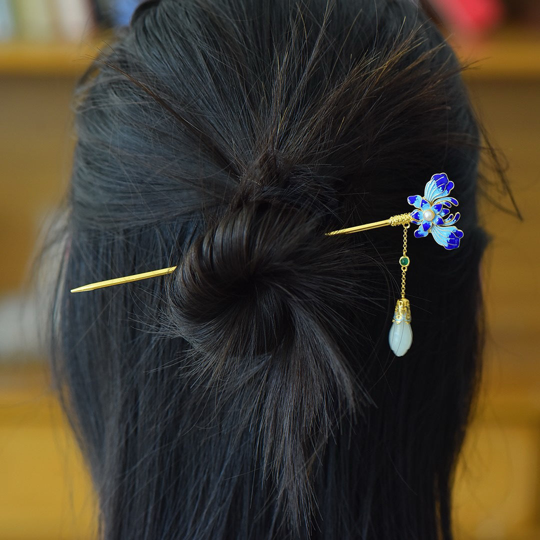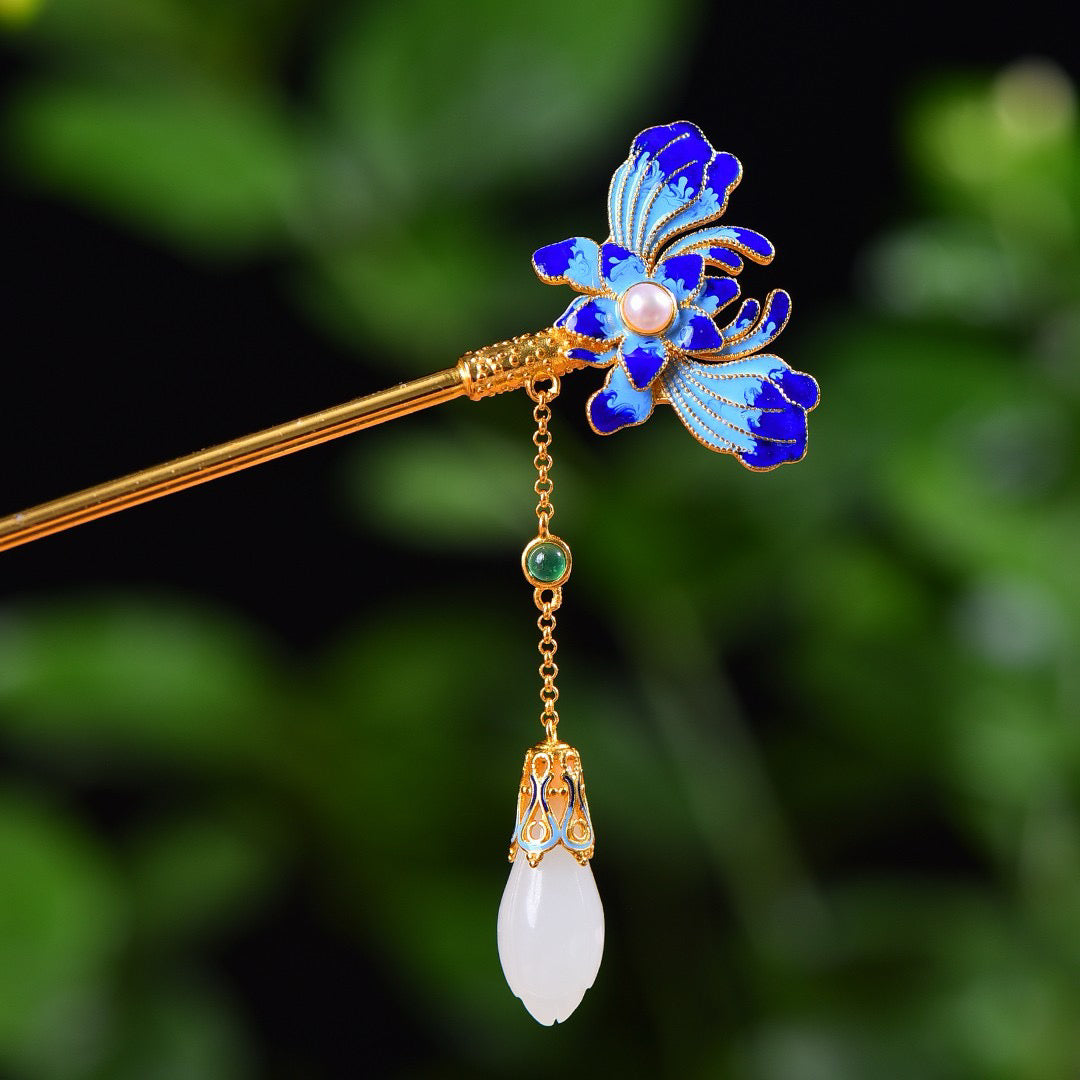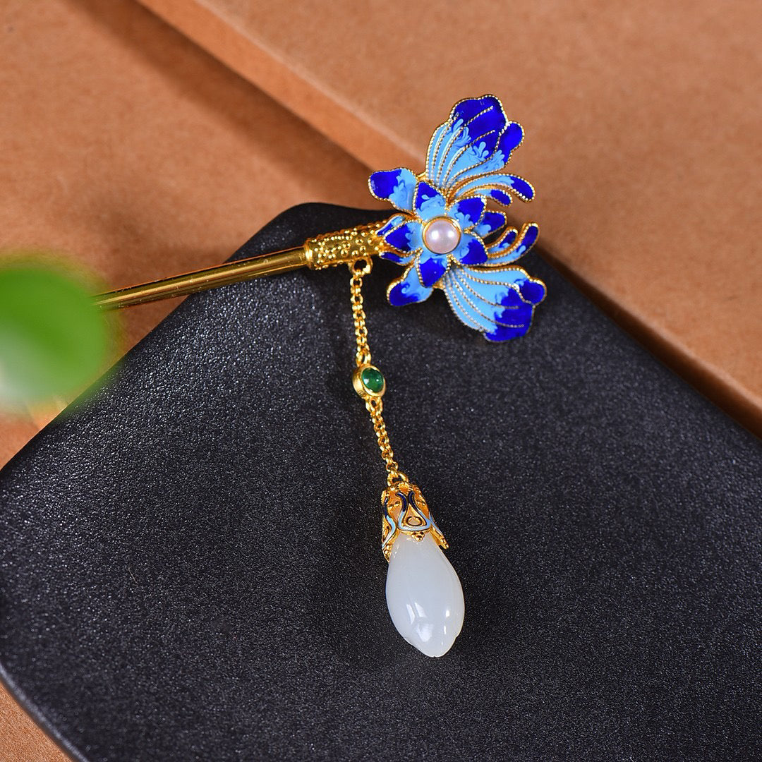 Silver inlay and Tianyuyulan enamel with Duobao hairpin