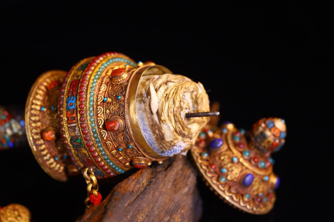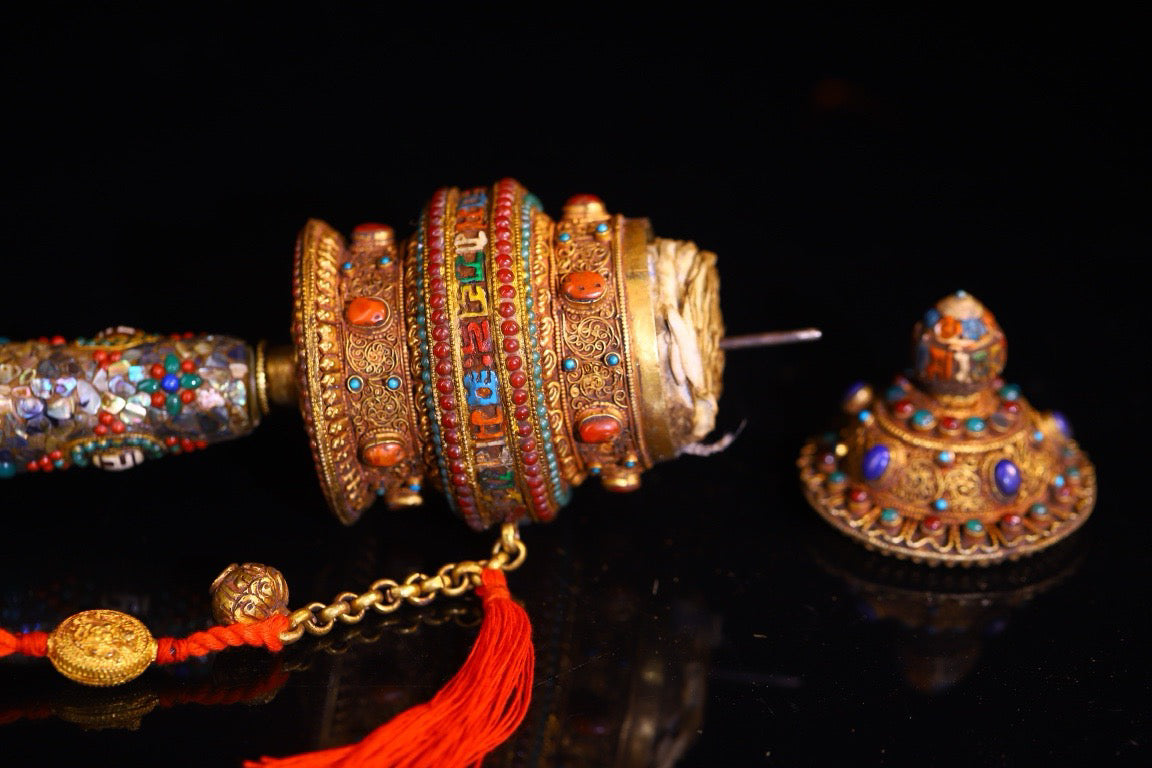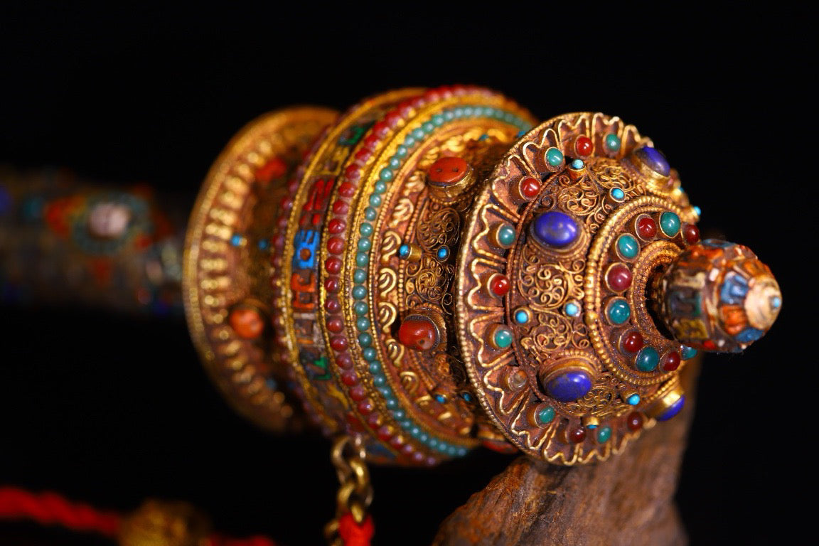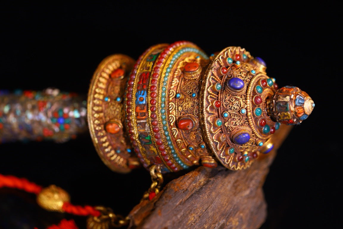 Silver pure hand gilded, filigree, inlaid with gemstones and spinning wheels