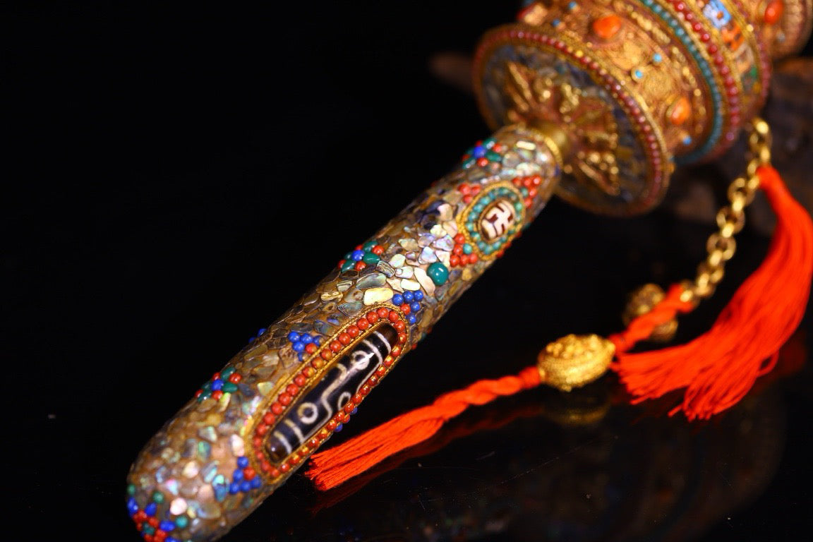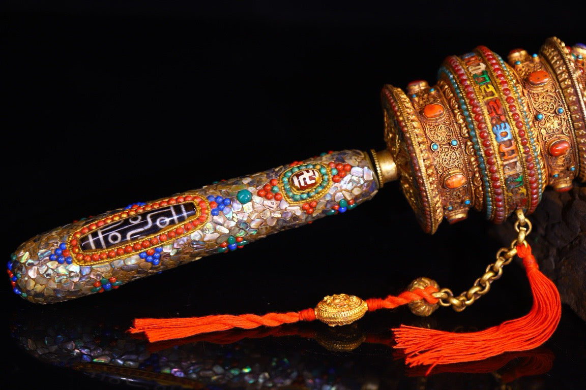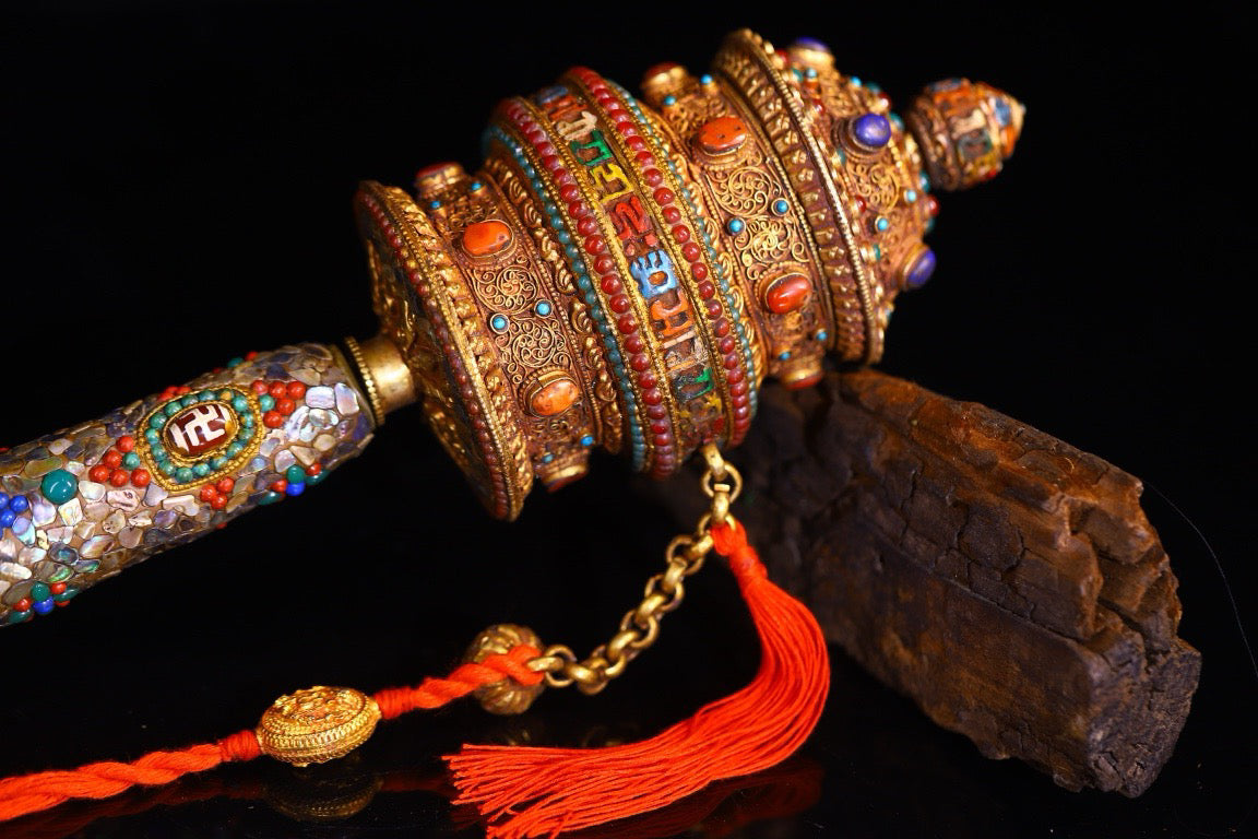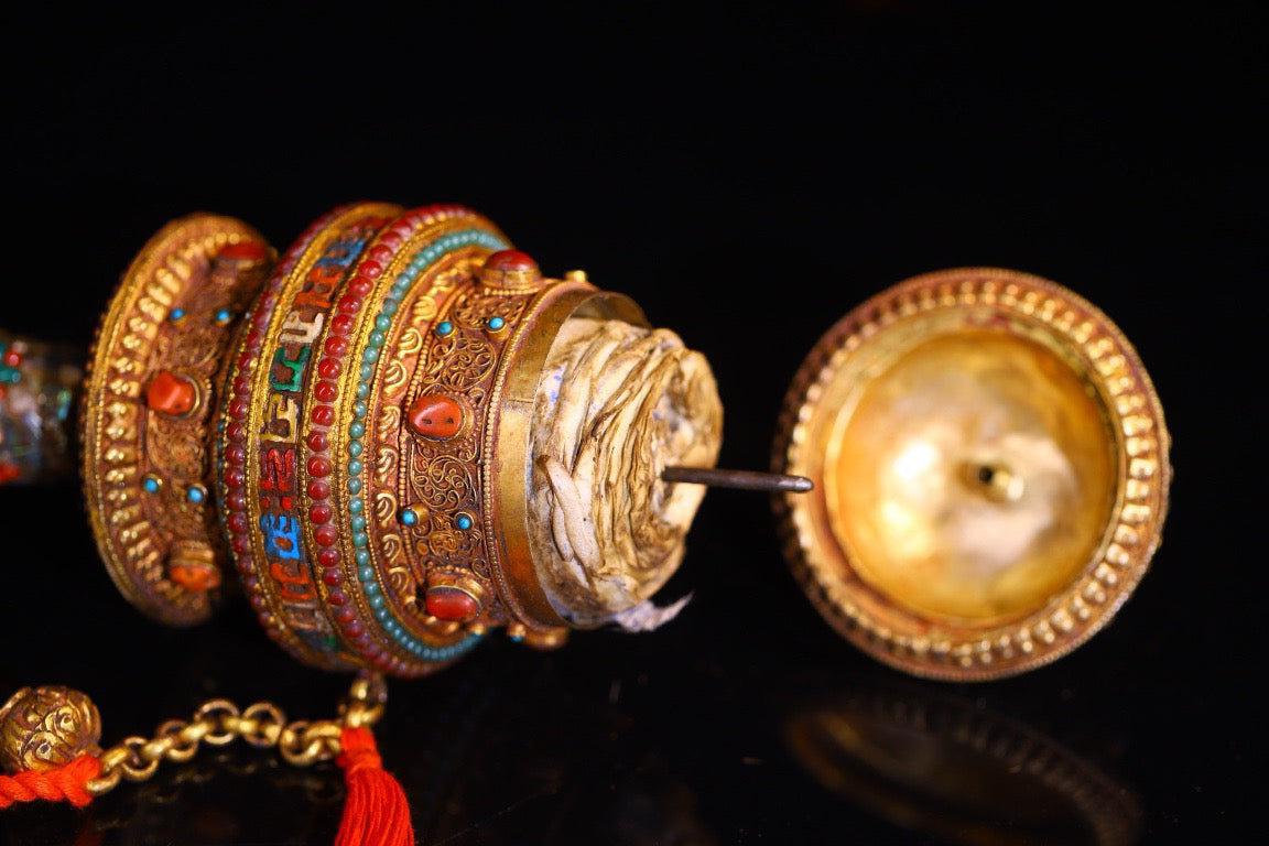 Silver pure hand gilded, filigree, inlaid with gemstones and spinning wheels