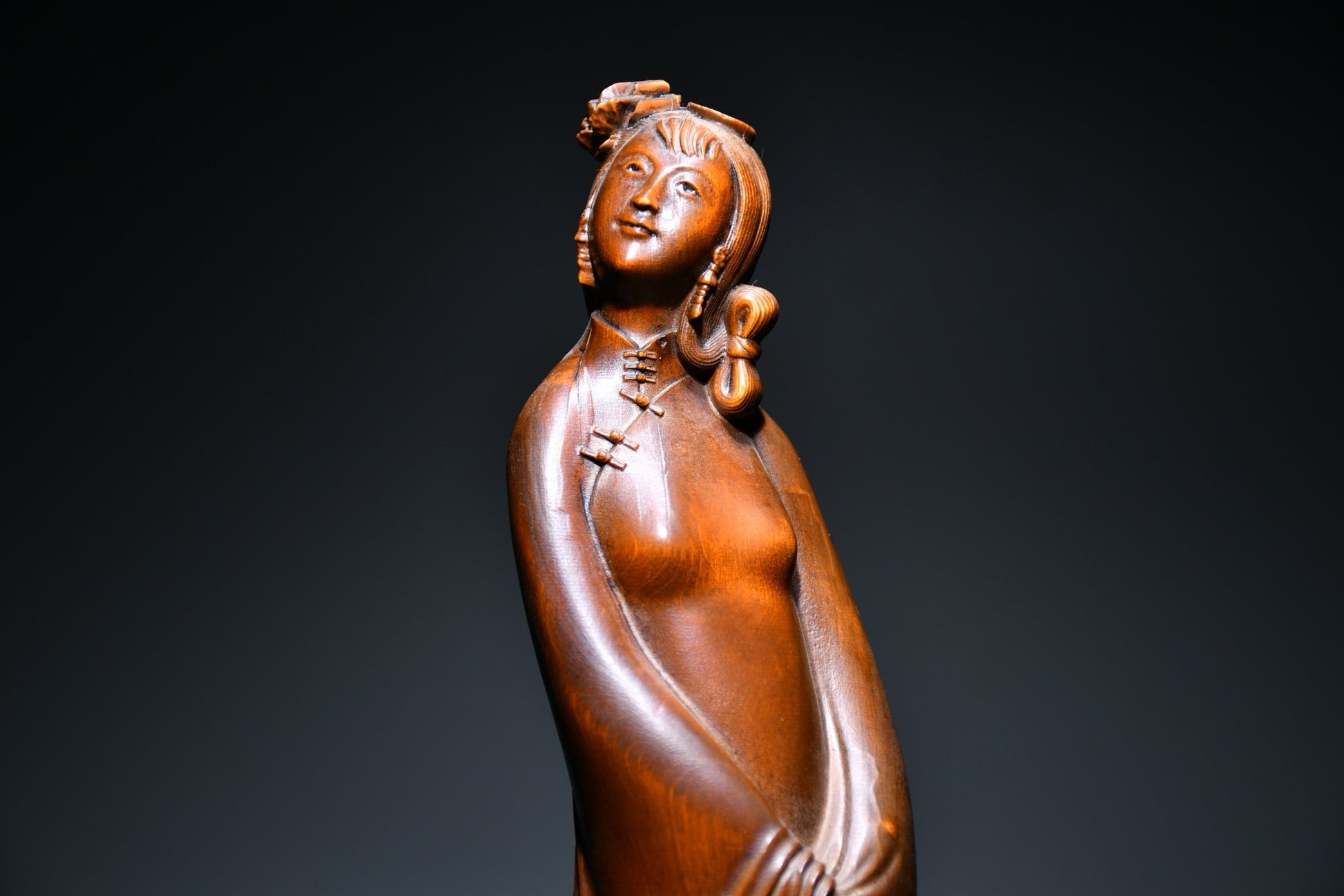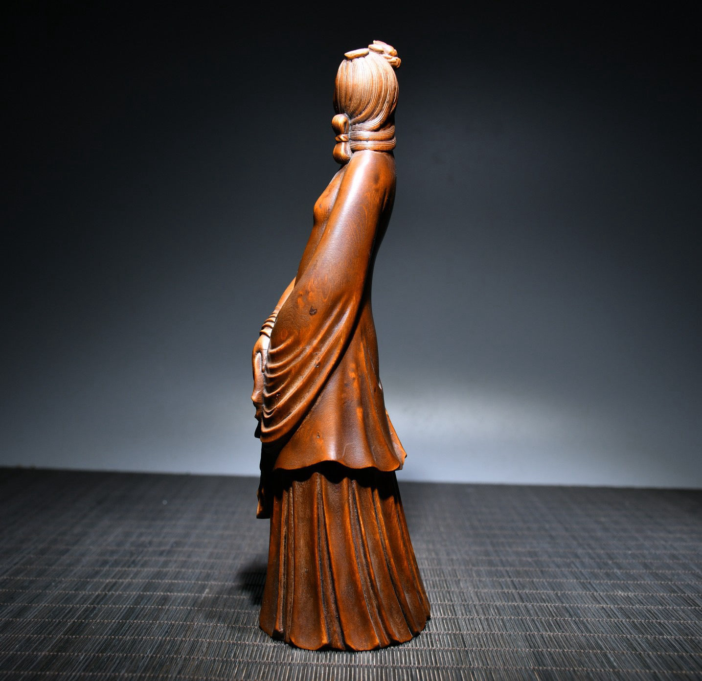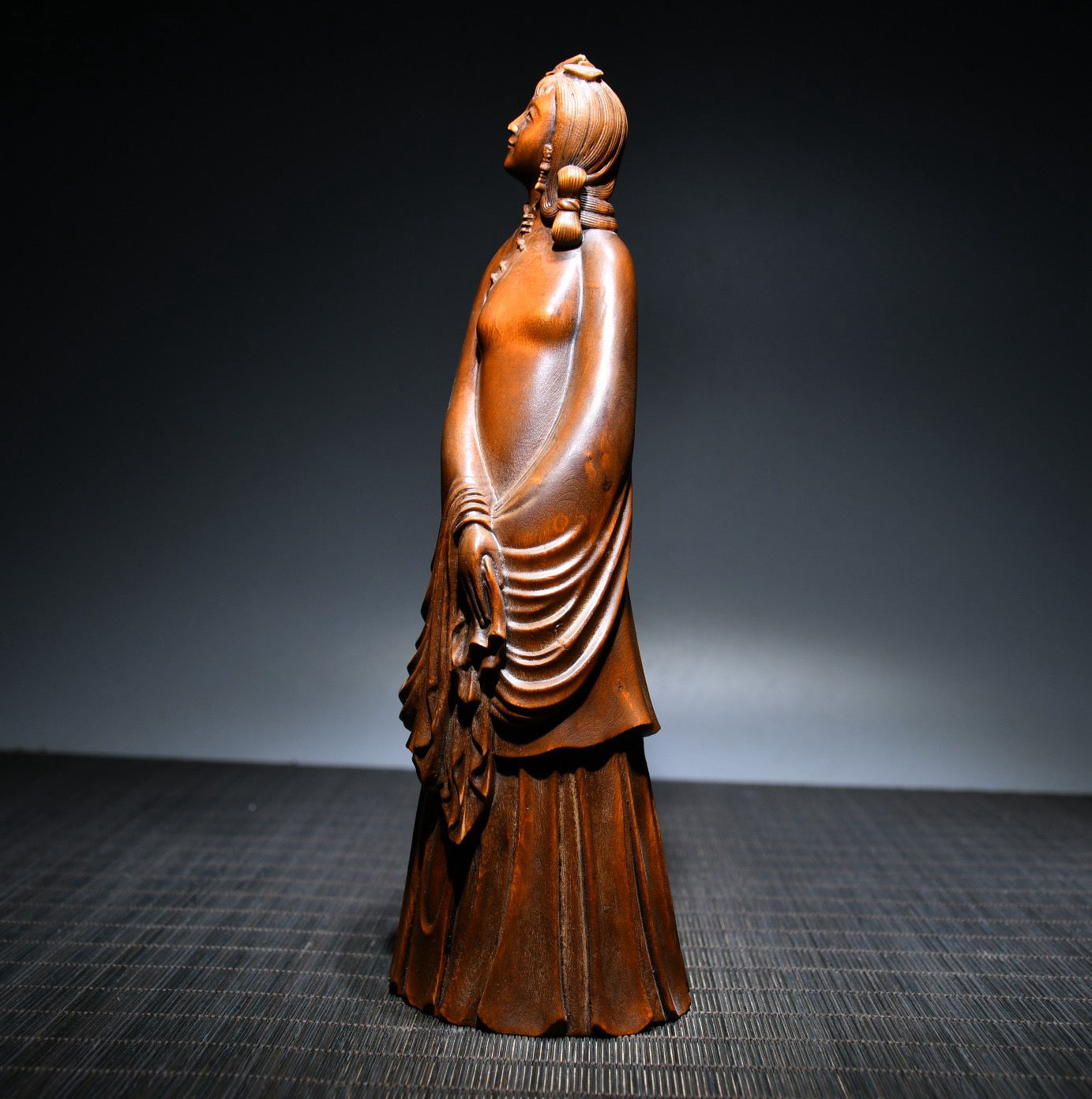 Small leaved boxwood carved female statue