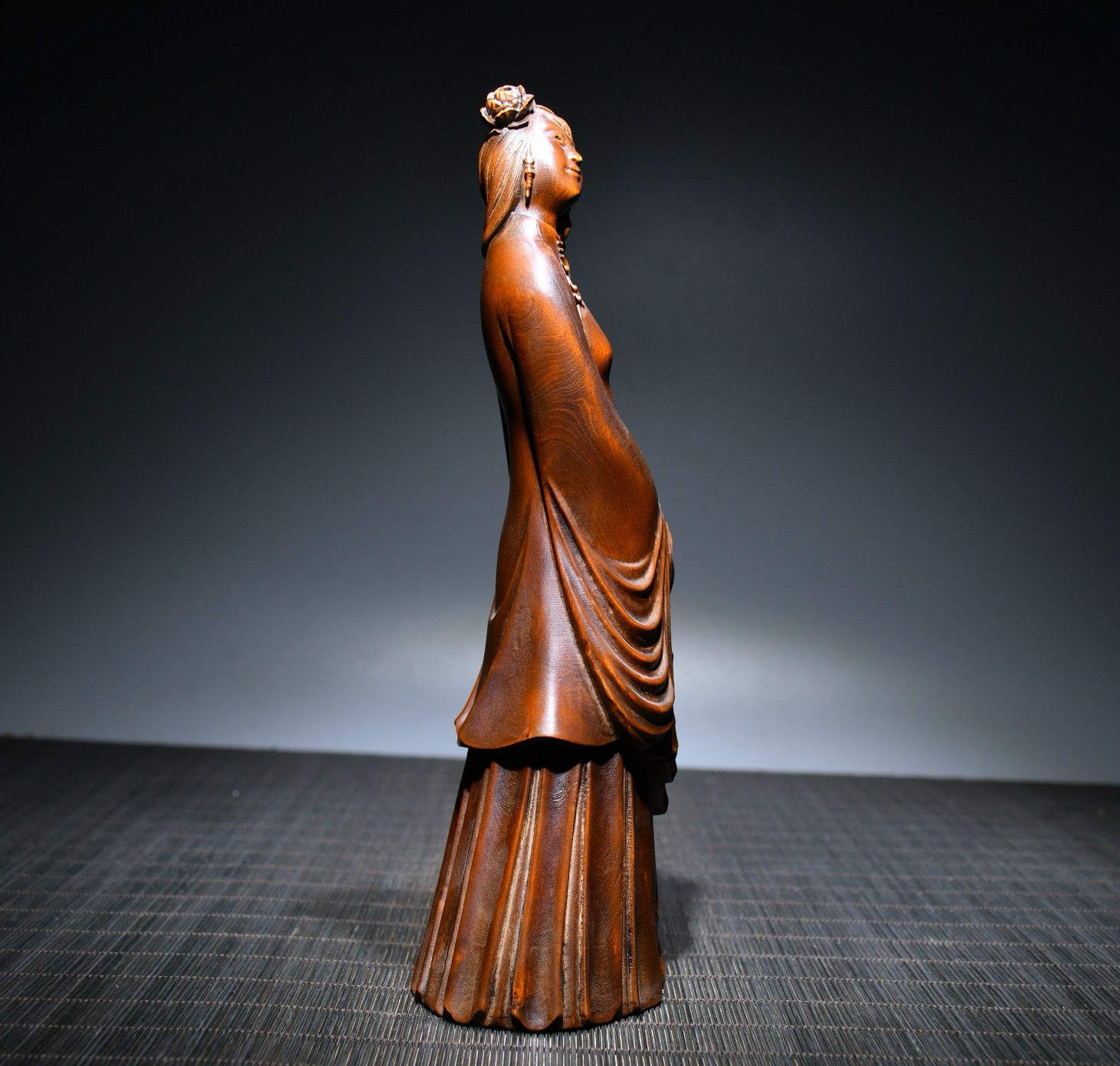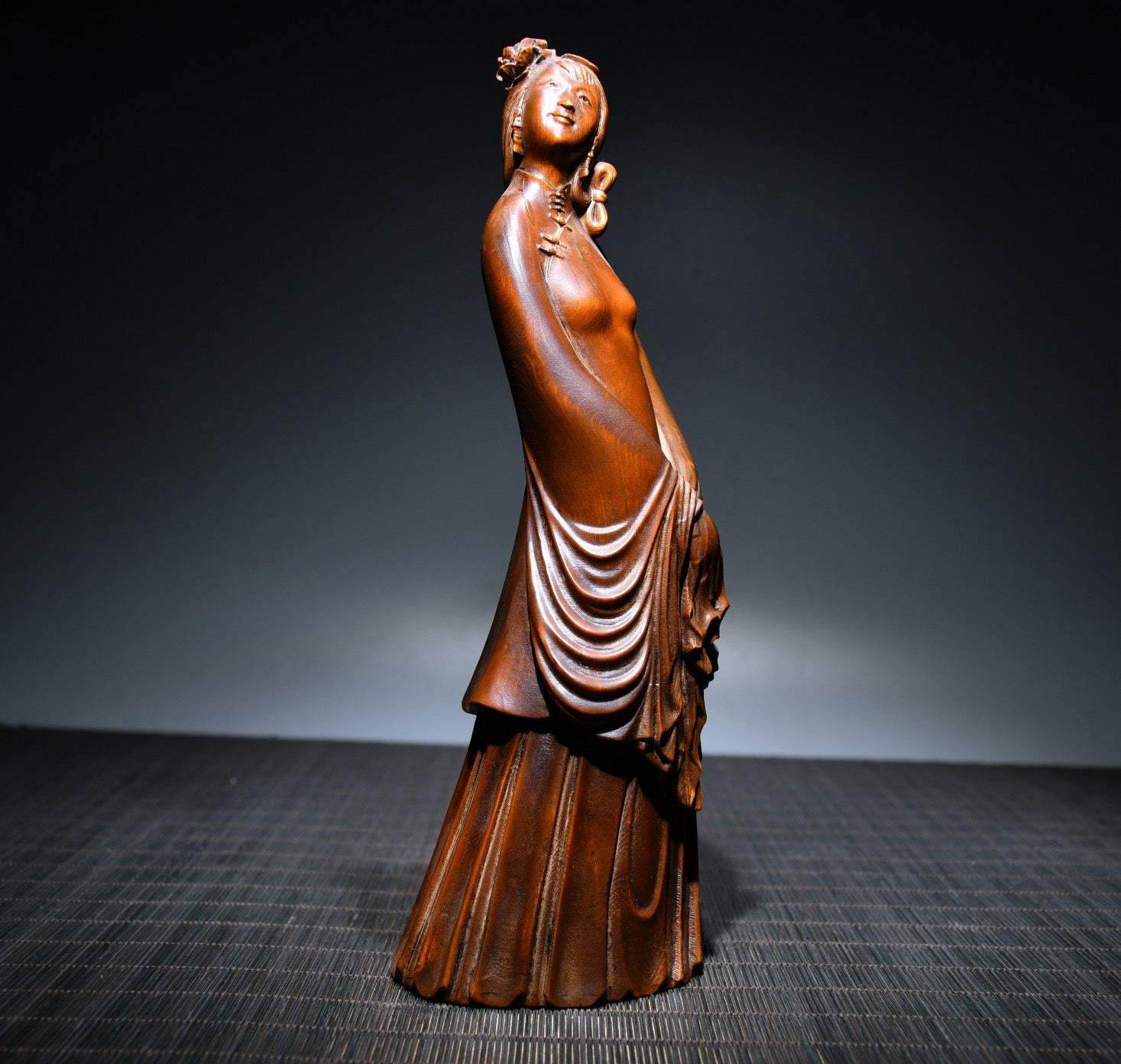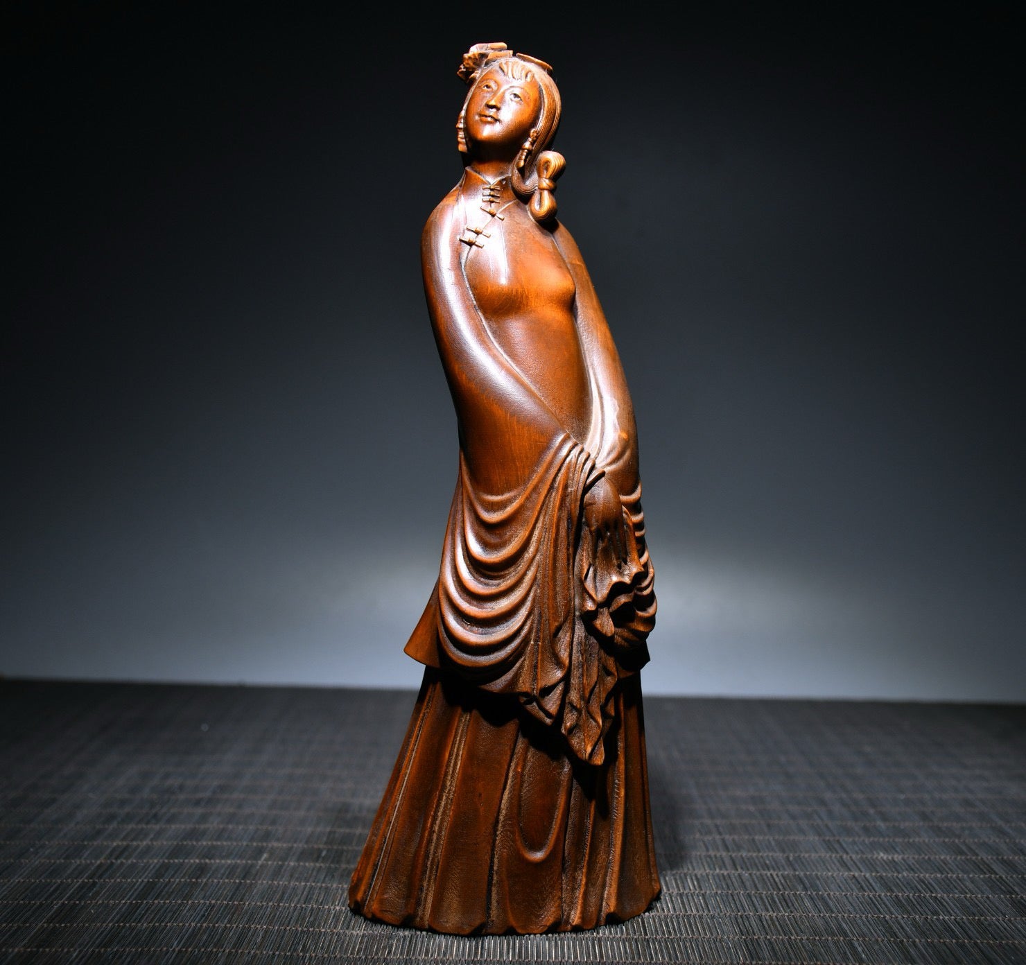 Small leaved boxwood carved female statue