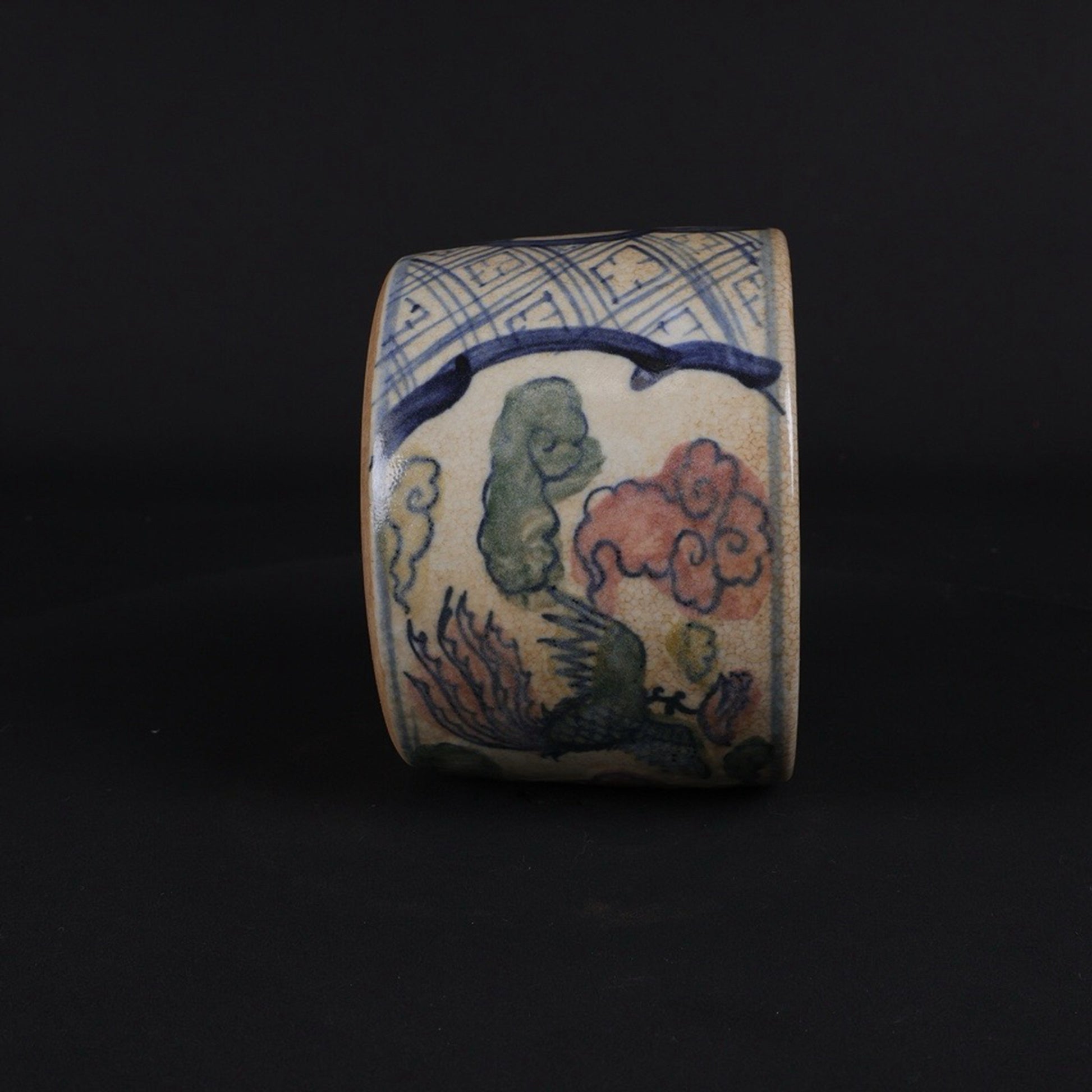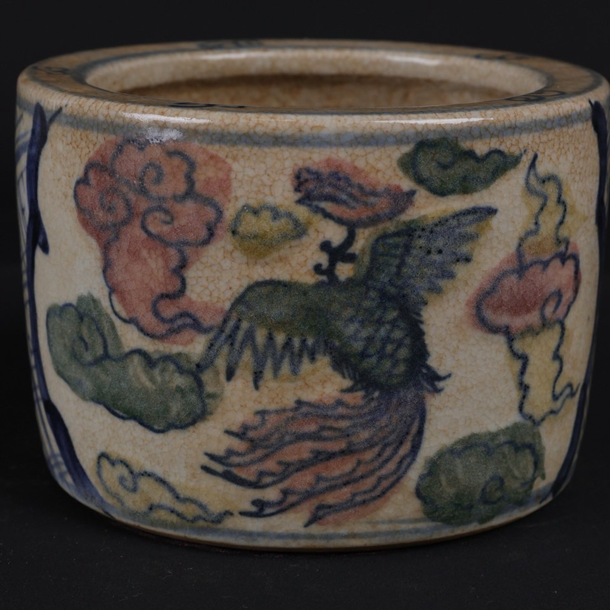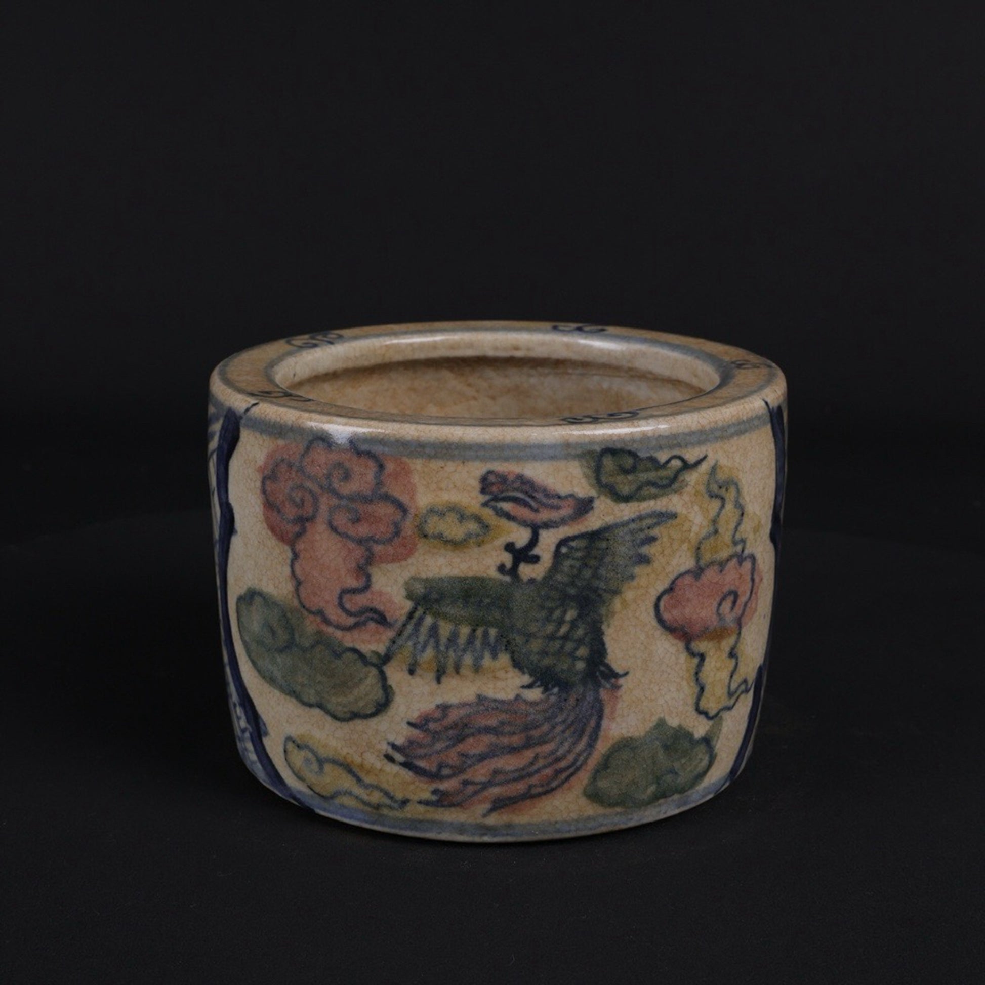 Small pen holder with a pattern of open color, open windows, double phoenixes presenting auspiciousness